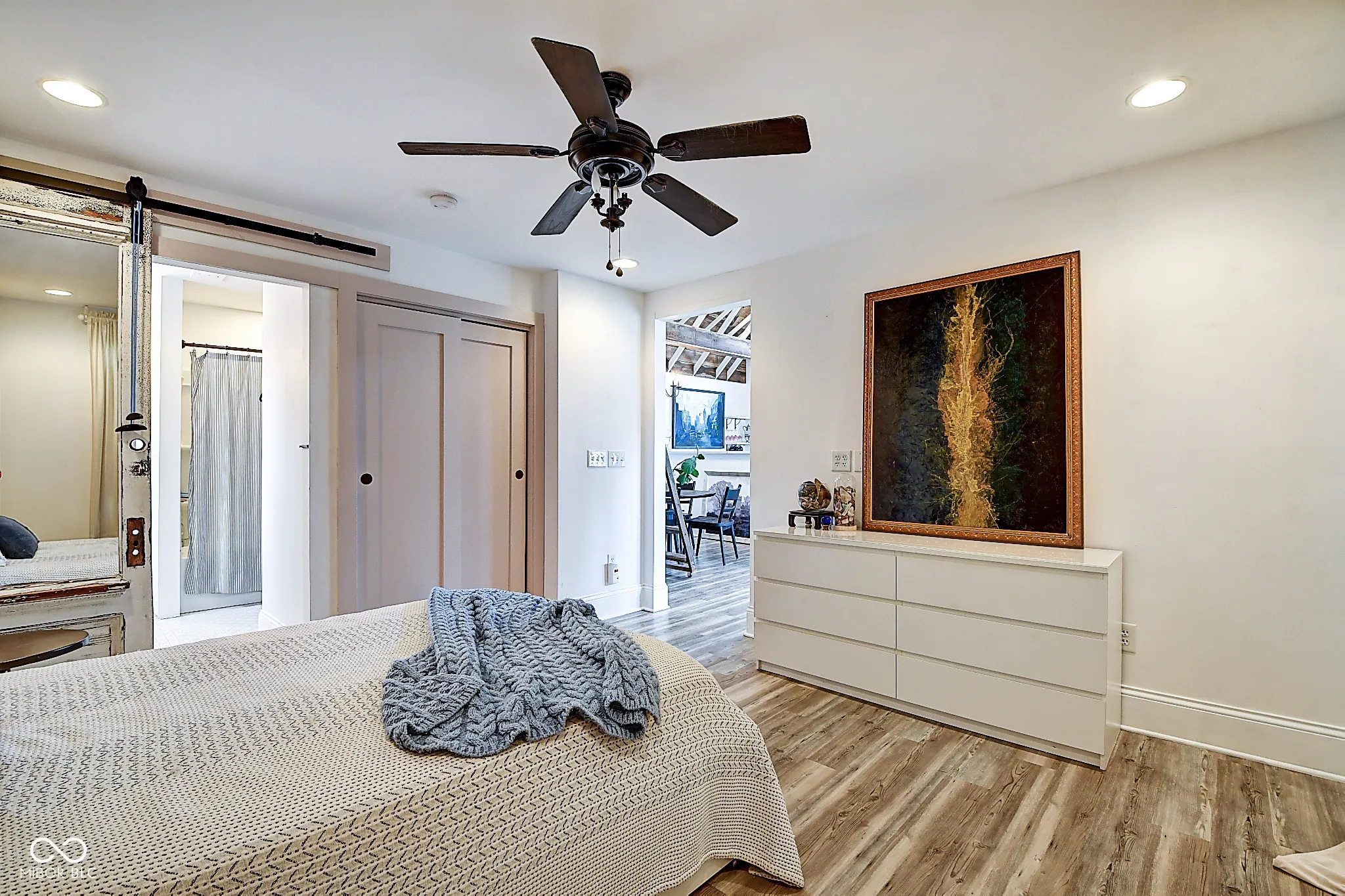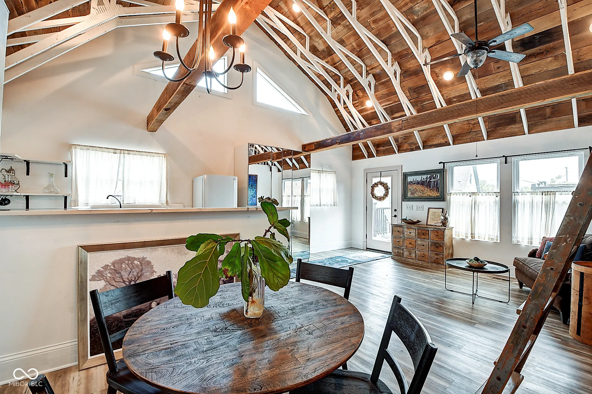 Looking to expand your investment portfolio? This one of a kind property could be just what you are looking for! The personal residence of Karen – the beloved star of HGTV’s Good Bones and Two Chicks and a Hammer – is now available for the first time in years. Nestled in the North Square neighborhood of Fountain Square, this incredible property blends urban farming, creative living, and historic charm into a true lifestyle experience. A towering Magnolia tree and lush vegetation create shade, privacy, and a warm welcome in the front yard. Step inside to a comfortable living room that feels instantly inviting. The spacious kitchen is the heart of the home – featuring a one-of-a-kind bar salvaged from the Indianapolis Repertory Theatre that offers incredible storage and becomes a natural gathering place when entertaining. At one end of the kitchen, the dining area opens through double doors to a large deck and backyard – perfect for al fresco meals. The highly sought-after main-floor primary suite is conveniently located on the main level, along with a second bedroom ideal for a home office or creative workspace. Upstairs, you’ll find an airy loft/family room, a full bath, and two generously sized bedrooms. Special touches abound: an attached greenhouse for plant lovers, a cozy speakeasy-style wine room in the basement for late-night gatherings, and a privacy-fenced backyard teeming with mature plants, garden space, and a chicken coop for the aspiring urban farmer. Car enthusiasts and hobbyists will love the oversized 3+ car garage, offering plenty of space to tinker and store tools. Above the garage, the carriage house apartment is a showstopper – soaring ceilings, an open living/dining area with a custom fully-applianced kitchen, a private bedroom and bath suite, and an amazing loft space perfect for a second bedroom, art studio, or lounge. Zoned both commercial and residential, the possibilities here are endless!