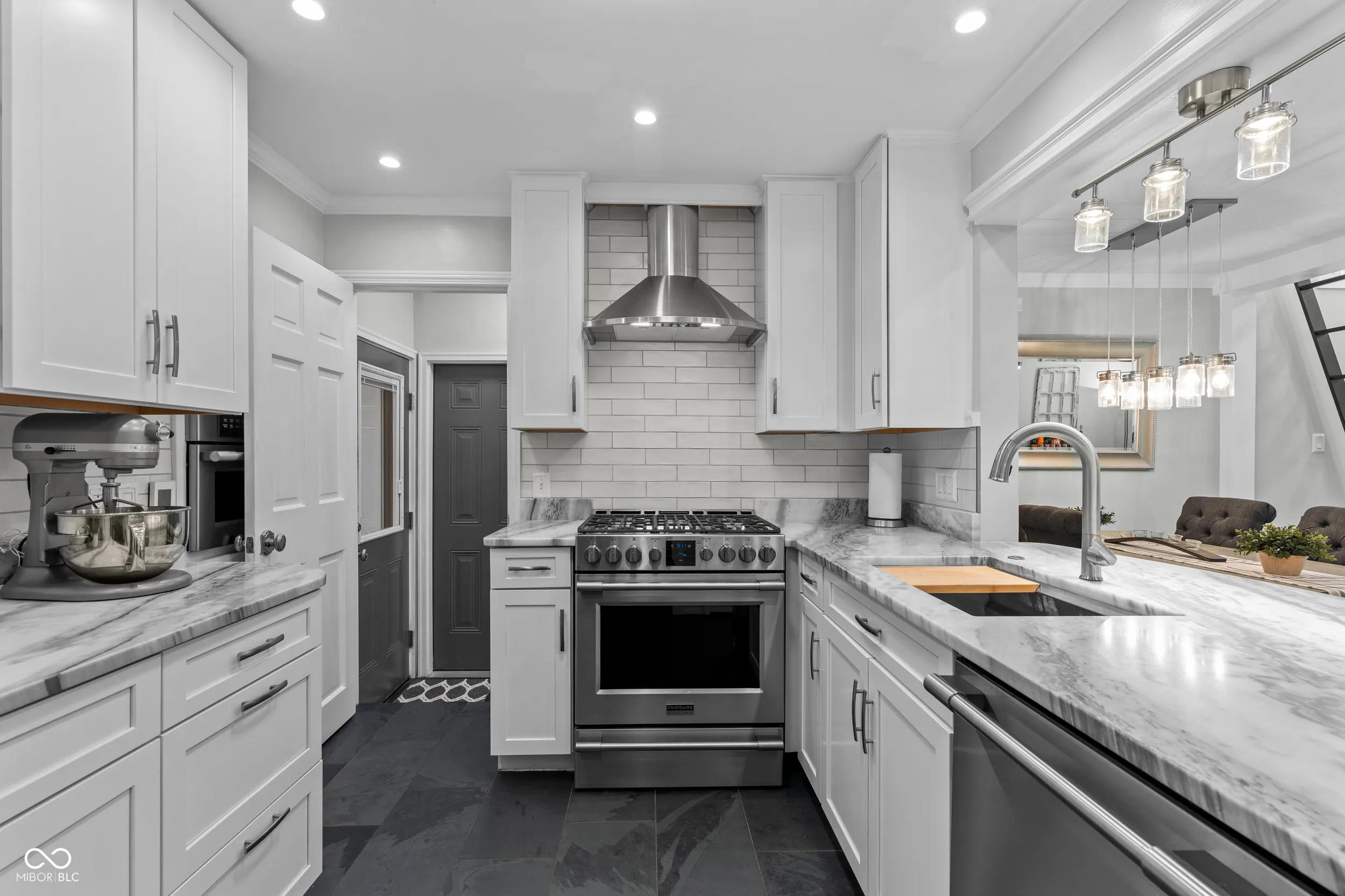 A Rare Broad Ripple Find! Opportunities like this don’t come along often. This fully remodeled Broad Ripple bungalow is a true showpiece-blending timeless charm with luxurious, modern upgrades. Inside, you’ll find gleaming hardwood floors, elegant crown molding, recessed lighting, and an attic transformed into a versatile loft retreat. The open dining/living room combo flows seamlessly into a chef’s dream kitchen featuring marble countertops, soft-close cabinetry, stainless steel appliances, a gas range, pantry, custom tile backsplash, second convection oven/microwave, and even a heated floor. The primary bedroom boasts a custom closet, while the finished basement is a showstopper in itself-complete with a third bedroom (egress window), full bath, spacious laundry with built-in dog wash, and a family room with office and bar area. Clever storage is tucked under the stairs, maximizing every inch. Car enthusiasts will appreciate the garage’s raised ceiling, designed to accommodate a car lift, while outdoor living rivals a private resort: hot tub, waterfall pond, fire feature, AstroTurf lawn, and multiple entertaining spaces. The heated/cooled outbuilding offers endless possibilities-home office, theater, studio, or even indoor dog runs. This is not just a home-it’s a lifestyle upgrade in one of Indy’s popular neighborhoods. Homes like this rarely hit the market-don’t miss your chance.