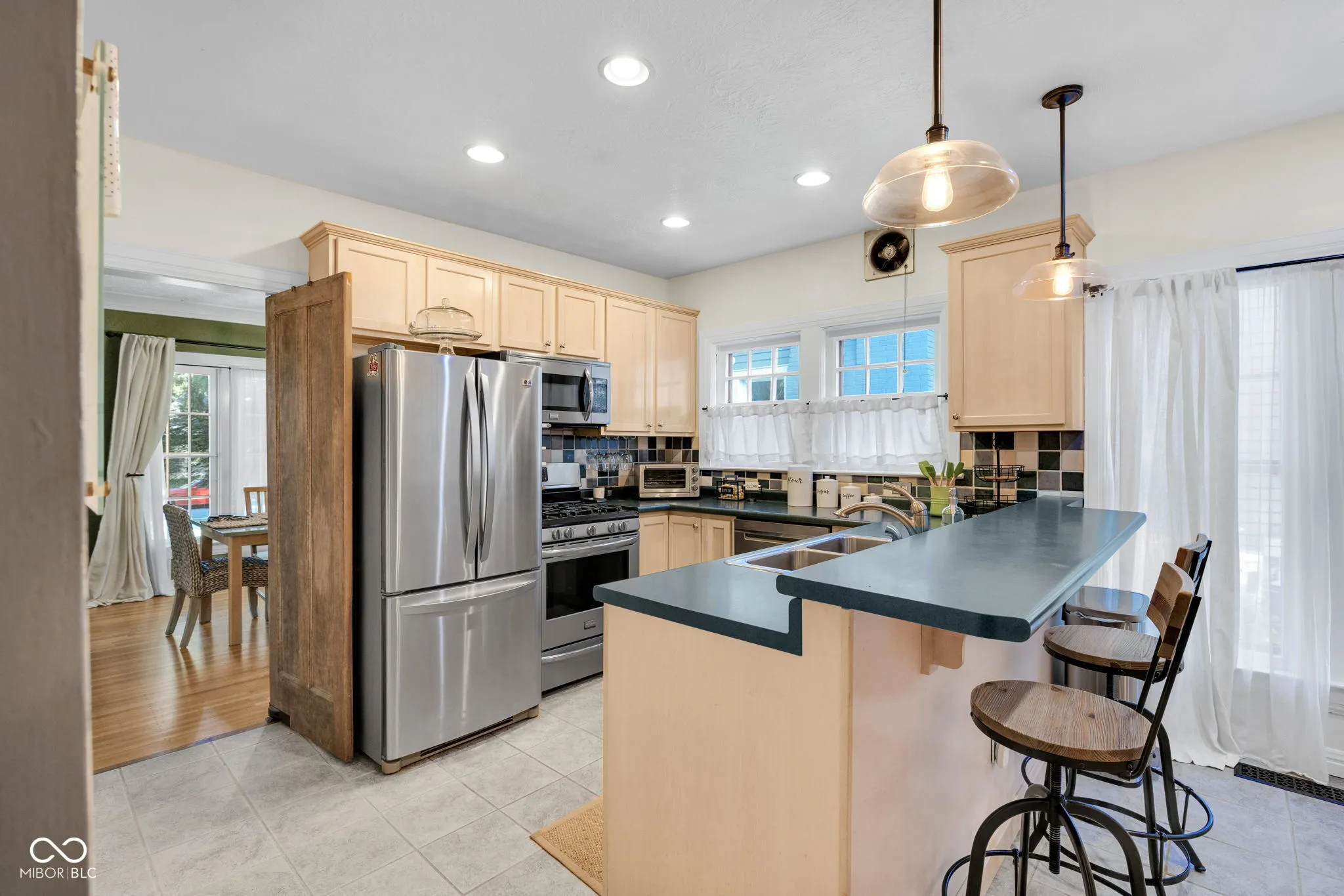 FOREST HILLS FAIRYTALE COTTAGE | Brimming with charm, this storybook home welcomes you with a quaint arched doorway and matching historic door. A cozy screened-in porch is the perfect spot for morning coffee. Step inside through the original levered windows onto top-nailed tiger-striped oak floors, accented by historic tile at the gas log fireplace. The light-filled dining room is wrapped in windows, and the central kitchen-accessed through a solid wood swinging door-features an eat-in peninsula, pantry cabinetry with slide-out drawers, a coffee bar, and stainless-steel appliances. The main level offers three generously sized bedrooms and a recently updated full bath. Upstairs, a versatile secondary living space serves as a family room and fourth bedroom, complete with mini-split system for year-round comfort. The unfinished basement provides ample storage and flexible space for a studio or office. Outside, immaculate landscaping frames the home, while a detached two-car garage sits at the end of a fully owned driveway. This incredible location offers convenience and walkability, with the option to purchase fully furnished-perfect as a turnkey Airbnb or an ideal move-in-ready home for a new owner.