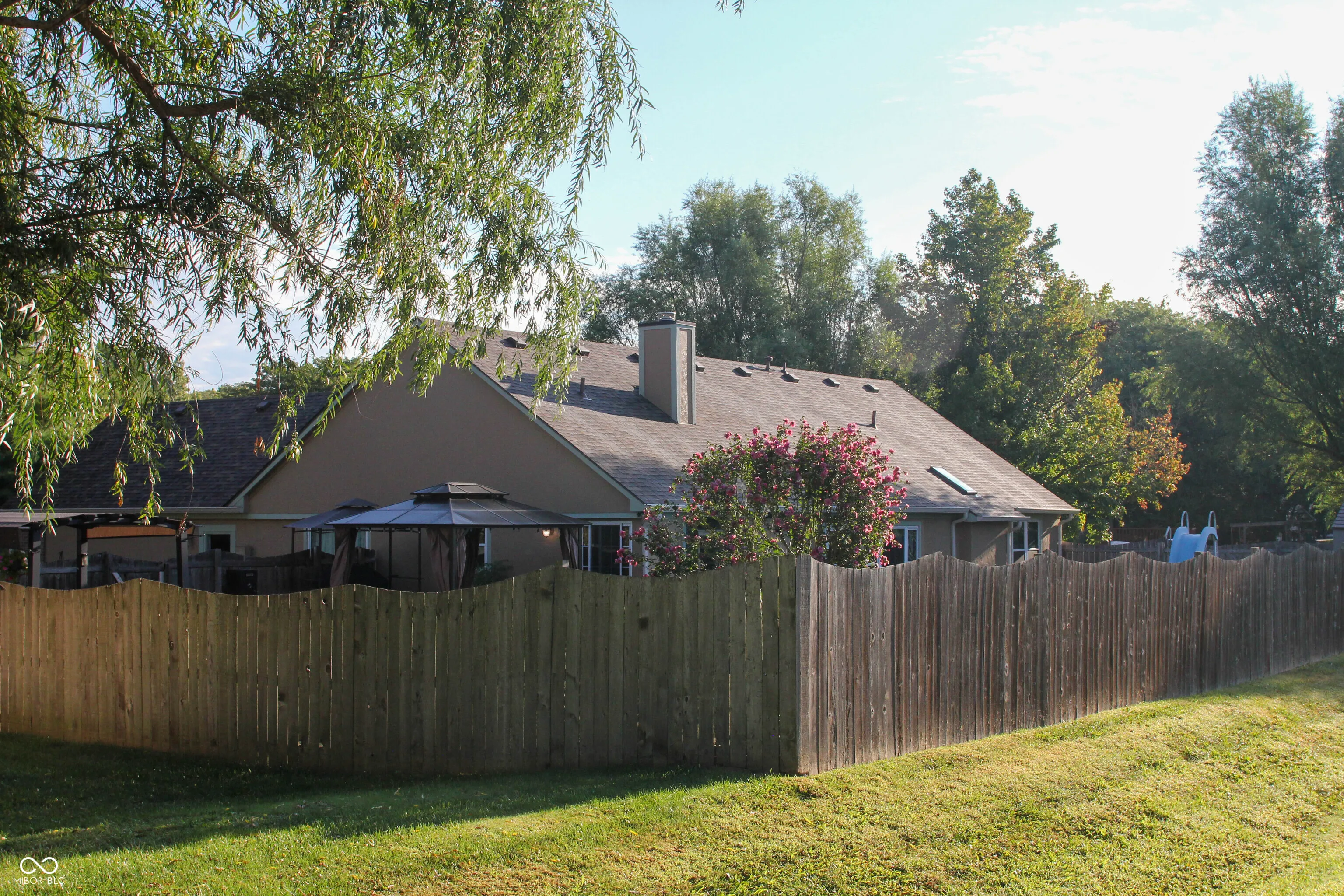 Beautiful custom Windsong Estates home on cul-de-sac with large yard, lovely landscaping, and mature trees. This 3 bedroom, 2 bath home located in the highly sought after Center Grove area is move-in ready. From the moment you step into the grand foyer with soaring ceilings and 3/4″ hardwood flooring, you feel at home. The large great room has an open layout that features a two sided fireplace that also faces into the kitchen. The large eat-in kitchen with custom slate flooring, ample cabinet space, and tile backsplash, has sliding glass doors that lead out to the gorgeous backyard oasis. The backyard has an easy-entry in-ground pool, a deck and patio, two pergolas, and a fire pit that are all ready for entertaining. A formal dining room located off the kitchen makes hosting effortless (owners use this space as an exercise room). The spacious primary suite offers a tray ceiling, walk-in closet, and a luxurious en suite bathroom featuring double sinks and a custom tiled walk-in shower. The following are new: 3/4″ hardwood Brazilian flooring in hallways & foyer – 2008. Water heater last replaced – 2012. New slate tiling in kitchen and laundry room, hi efficiency furnace & A/C- 2018; new separately controlled garage doors- 2022; landscaping, roof, gutters, & windows (with custom masonry stone wraps that match the stone porch)- 2023; complete ext. paint- 2024; updated master bathroom with walk-in, tiled and skylighted shower – 2025. CG Schools! Don’t miss this opportunity it won’t last long!
