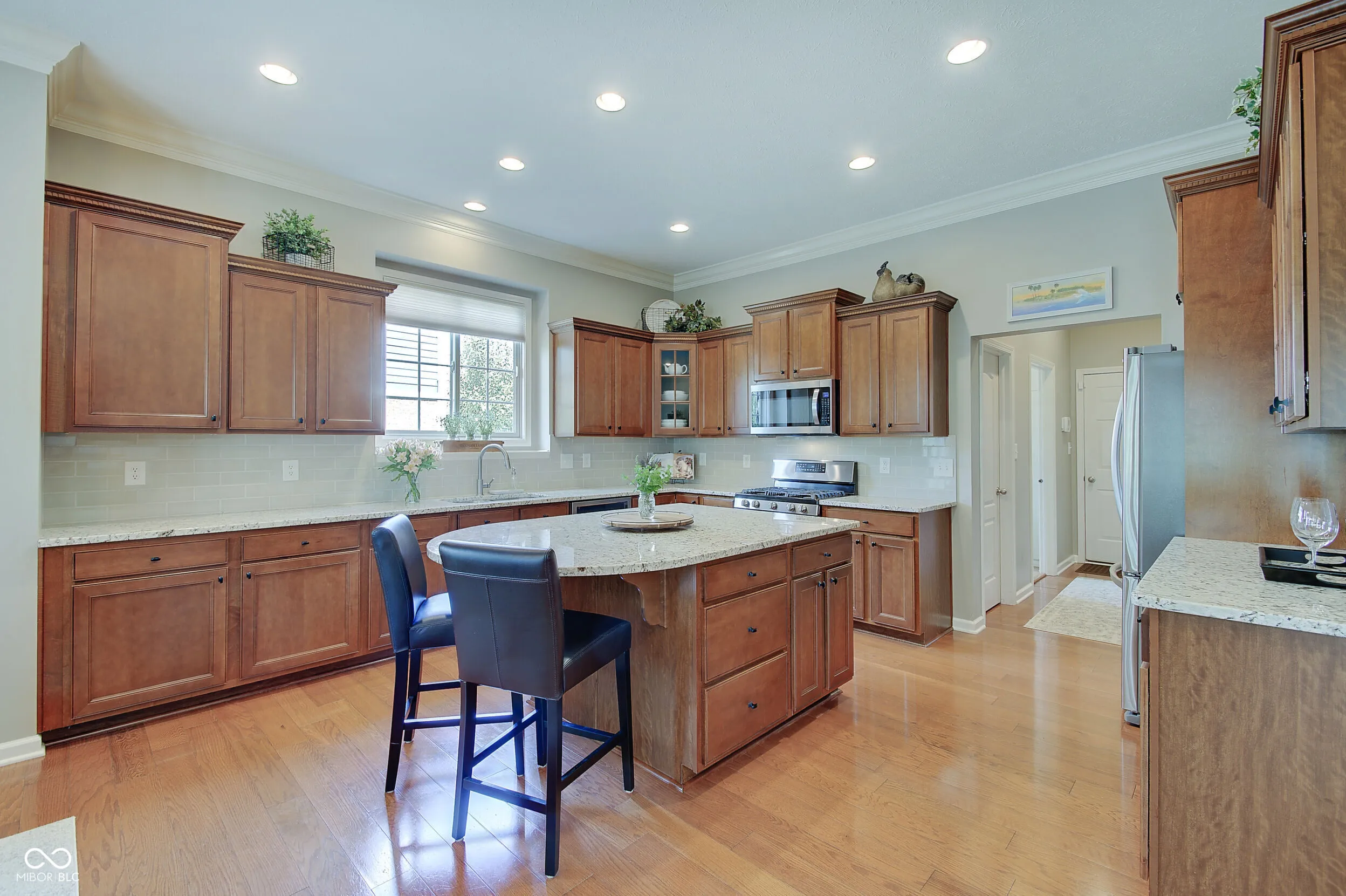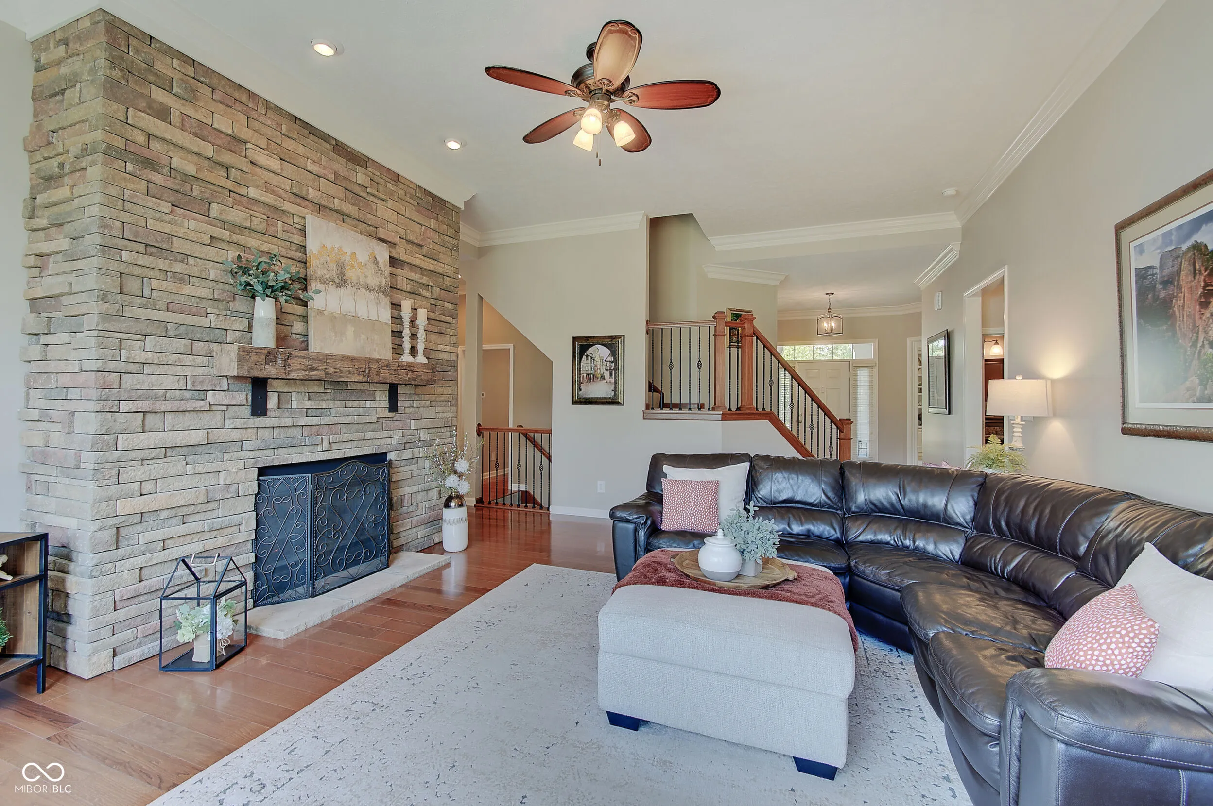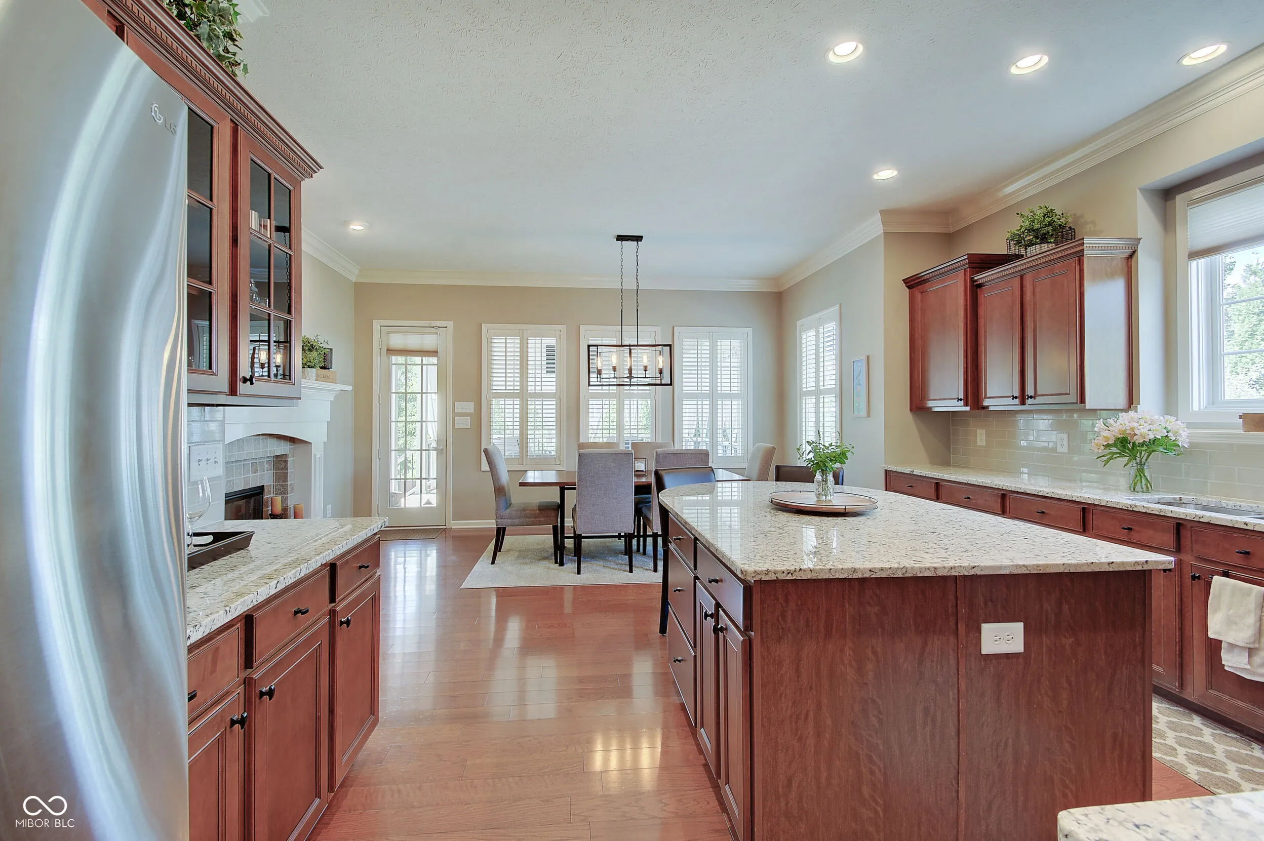 Welcome to this immaculately maintained 4-bedroom, 4.5-bath home in the highly sought-after Lincolnshire community, part of the award-winning Carmel Clay School District. Offering over 5,500 square feet of beautifully designed living space, this home combines elegance, functionality, and comfort at every turn. Step inside to find gleaming hardwood floors, soaring ceilings, and an inviting open layout. The great room impresses with a double-sided fireplace that flows seamlessly into the gourmet kitchen- a chef’s dream featuring an oversized island, granite countertops and backsplash, abundant cabinetry, a walk-in pantry, newer stainless steel appliances, and a formal dining room. Enjoy the sunlit breakfast room, also with its own cozy fireplace. Step outside to the show-stopping covered patio- a private oasis complete with an outdoor TV, privacy drapes, and a ceiling fan, perfect for relaxing or entertaining. The main-level primary suite is a true retreat, featuring a spacious ensuite bath with dual vanities, a soaking tub, a large shower, and generous walk-in closets. Need a home office? This main floor office showcases a built-in desk and bookshelves. A side-load 3-car garage complete with epoxy floors adds to the stately curb appeal and offers ample storage. The finished basement provides versatile living space, a full bath, and extensive storage-ideal for a home theater, gym, or guest suite. The Sellers have outdone themselves with this landscaped yard, a true highlight, offering lush, manicured beauty that nicely complements this home. To top it all off, Lincolnshire offers outstanding community amenities, including a neighborhood pool and playground.