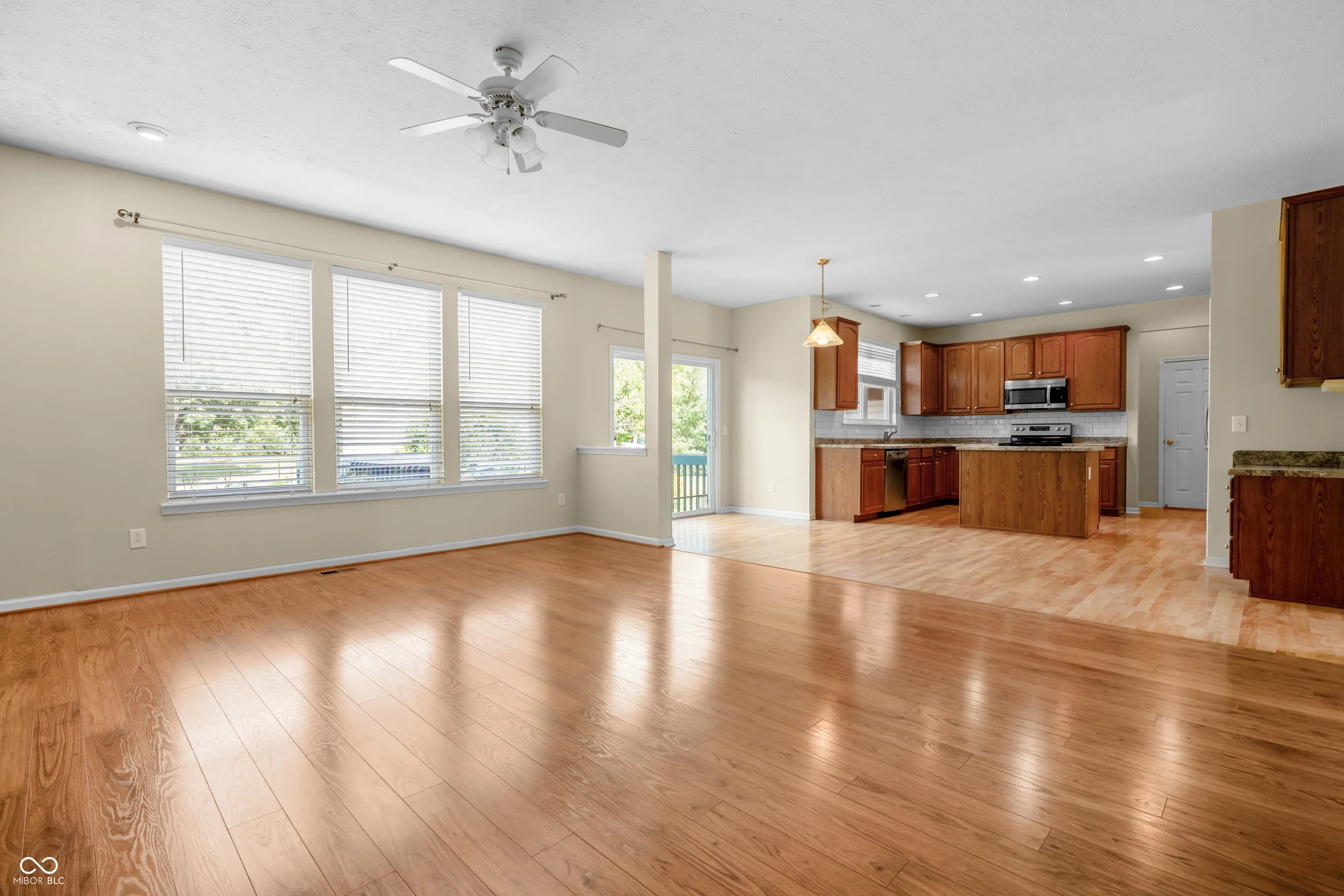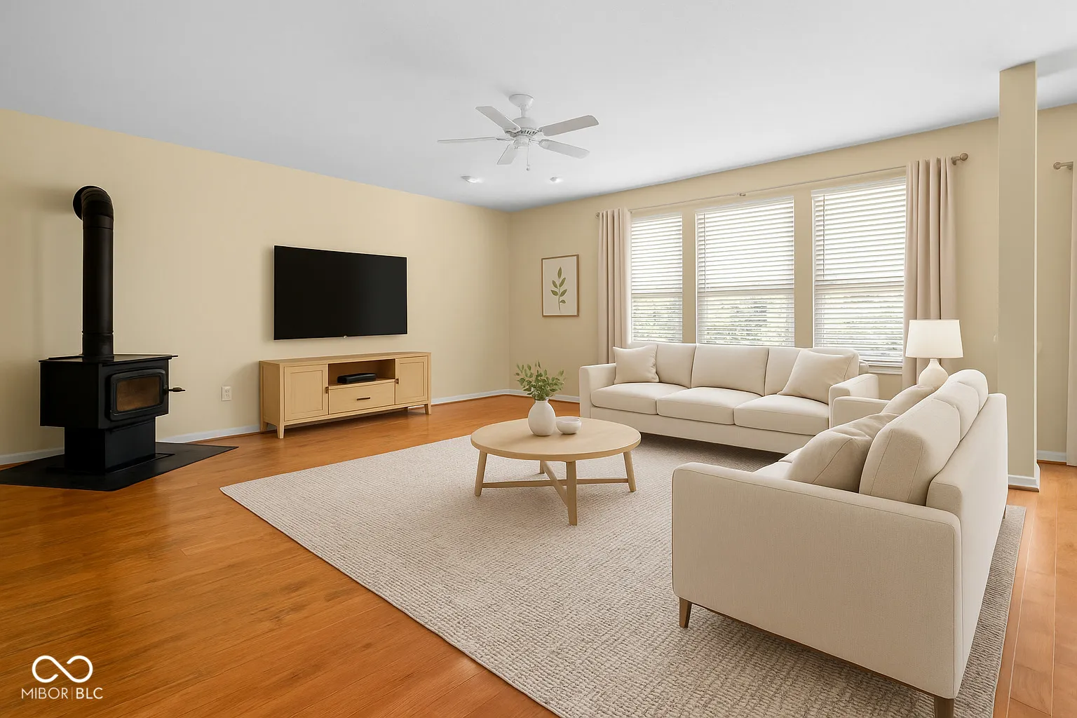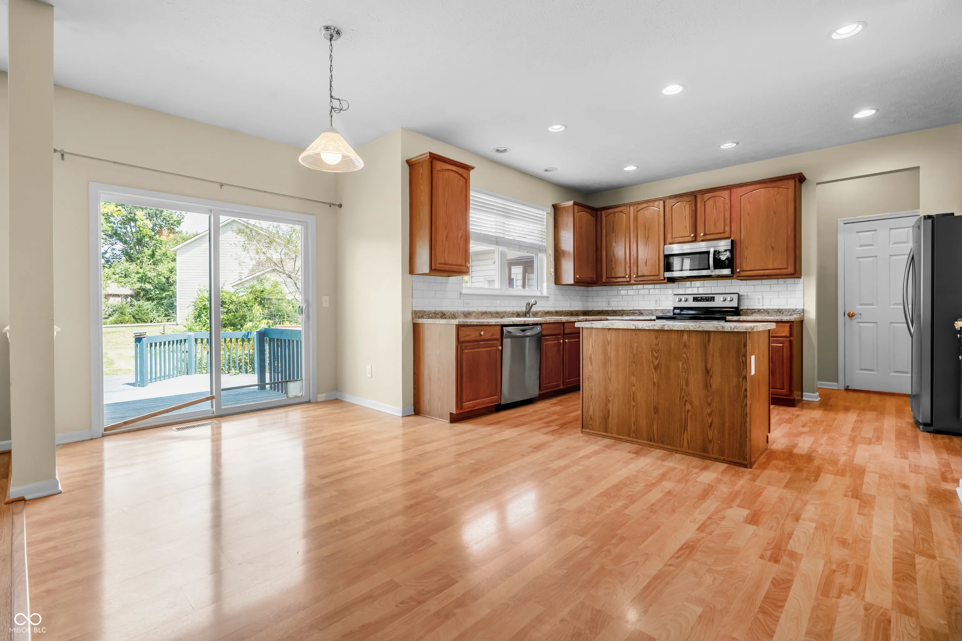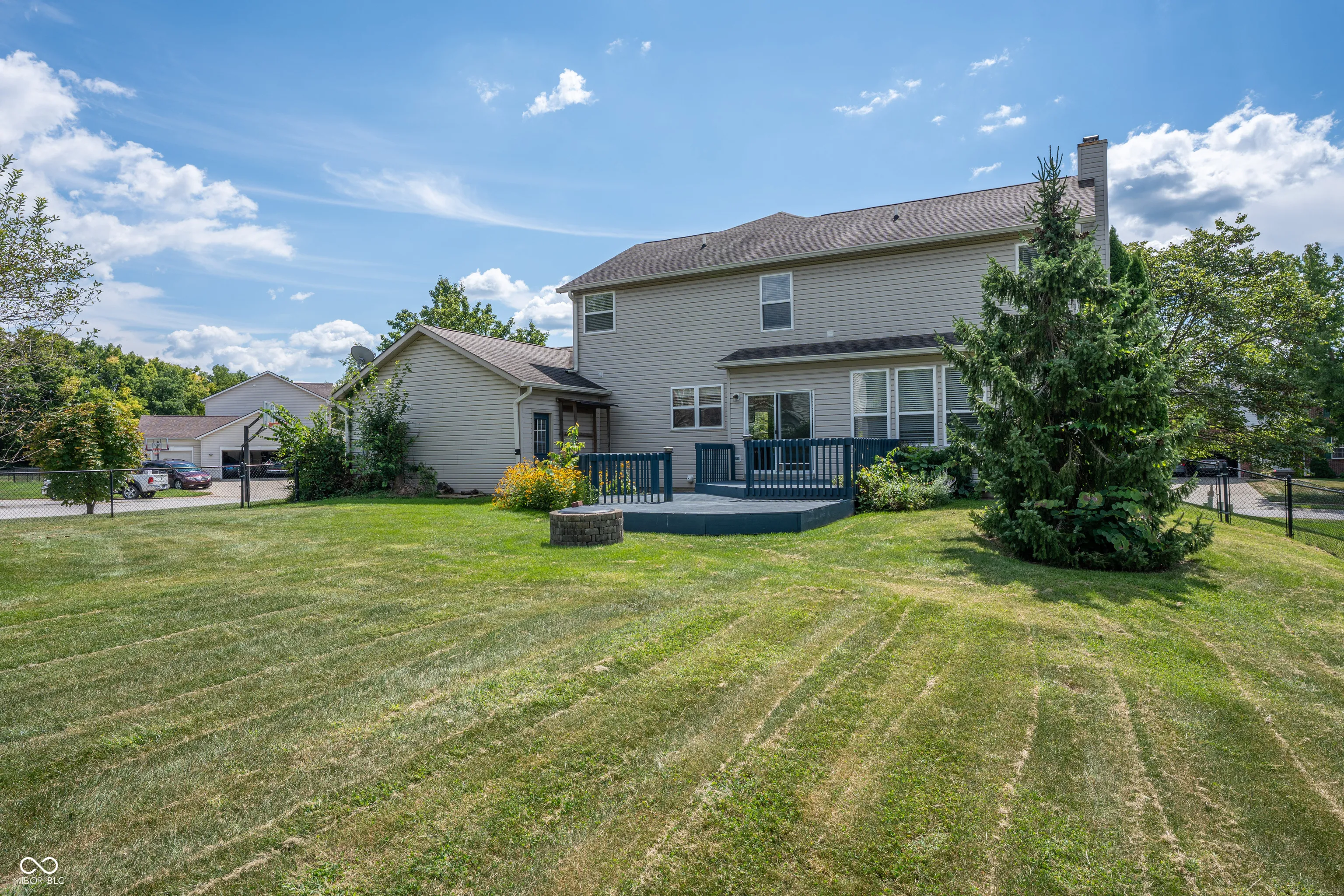 Welcome to this stunning 5-bedroom, 3.5-bath home in the highly sought-after Center Grove School District. The open-concept design is filled with natural light and features a spacious living area with a cozy wood-burning stove and a large kitchen with an island, perfect for cooking and entertaining. A main-level bonus room offers flexibility for an office or playroom, while the fully finished basement provides additional living or recreational space. The primary suite includes a private bath and walk-in closet, with four more generously sized bedrooms – one of which can also serve as a convenient laundry room. Situated on a desirable corner lot in a quiet cul-de-sac, the home also offers a back deck overlooking a fenced yard, ideal for gatherings and play. With a three-car garage and prime location near top-rated schools, this property combines comfort, functionality, and style.