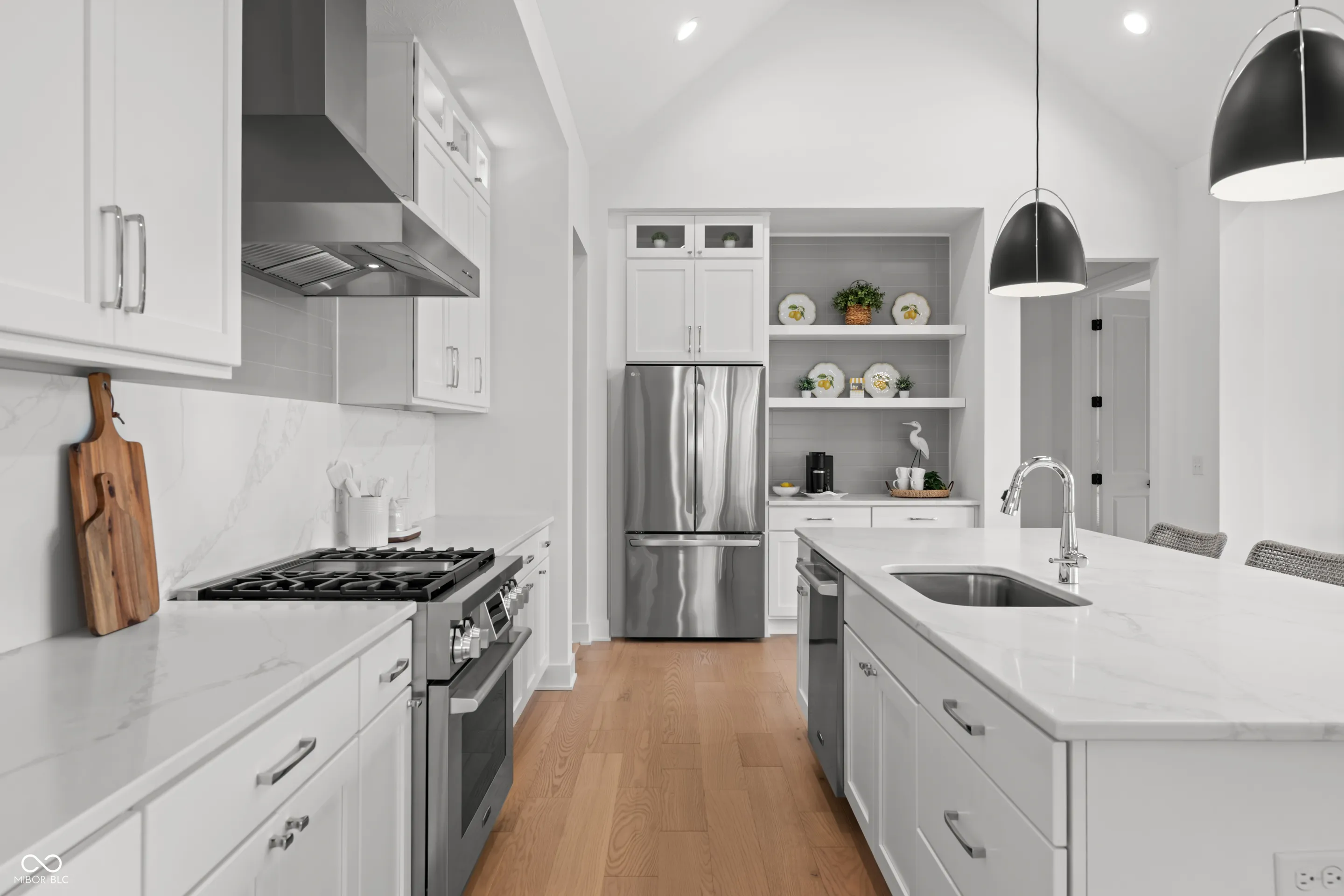 Welcome to this stunning ranch home in the sought-after Serenade community, where every detail has been thoughtfully designed with luxury in mind. A charming front porch invites you inside, where a private office and split-bedroom layout provide both function and privacy. The guest bedrooms are connected by a stylish Jack and Jill bathroom, perfect for family or visitors. Vaulted ceilings create a dramatic backdrop as you enter the dining room and gourmet kitchen, complete with an oversized island, abundant counter space, and custom built-ins in the pantry that seamlessly extend the kitchen’s functionality. The family room is a warm and inviting space, featuring a fireplace and walls of windows that fill the home with natural light. Retreat to the owner’s suite, offering a spa-like bathroom with dual sinks, a garden tub, tile shower, and a spacious walk-in closet. Step through the sliding glass doors onto the covered lanai, where you’ll enjoy peaceful views of the tree-lined backyard and unmatched privacy. An unfinished basement with a bathroom rough-in provides endless possibilities, including the option for a fourth bedroom or additional living space. Completing the home is a three-car garage, offering plenty of storage and convenience.