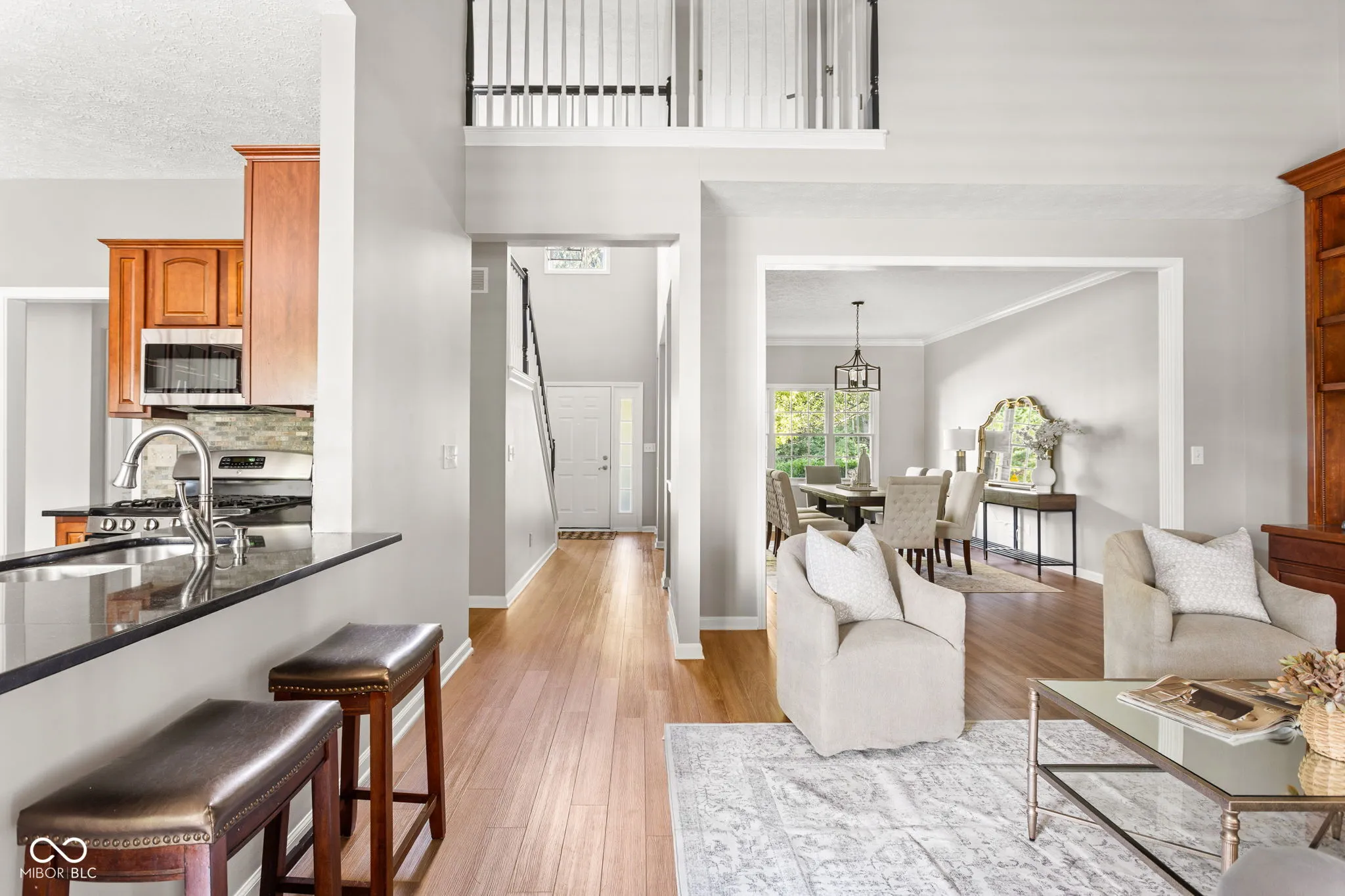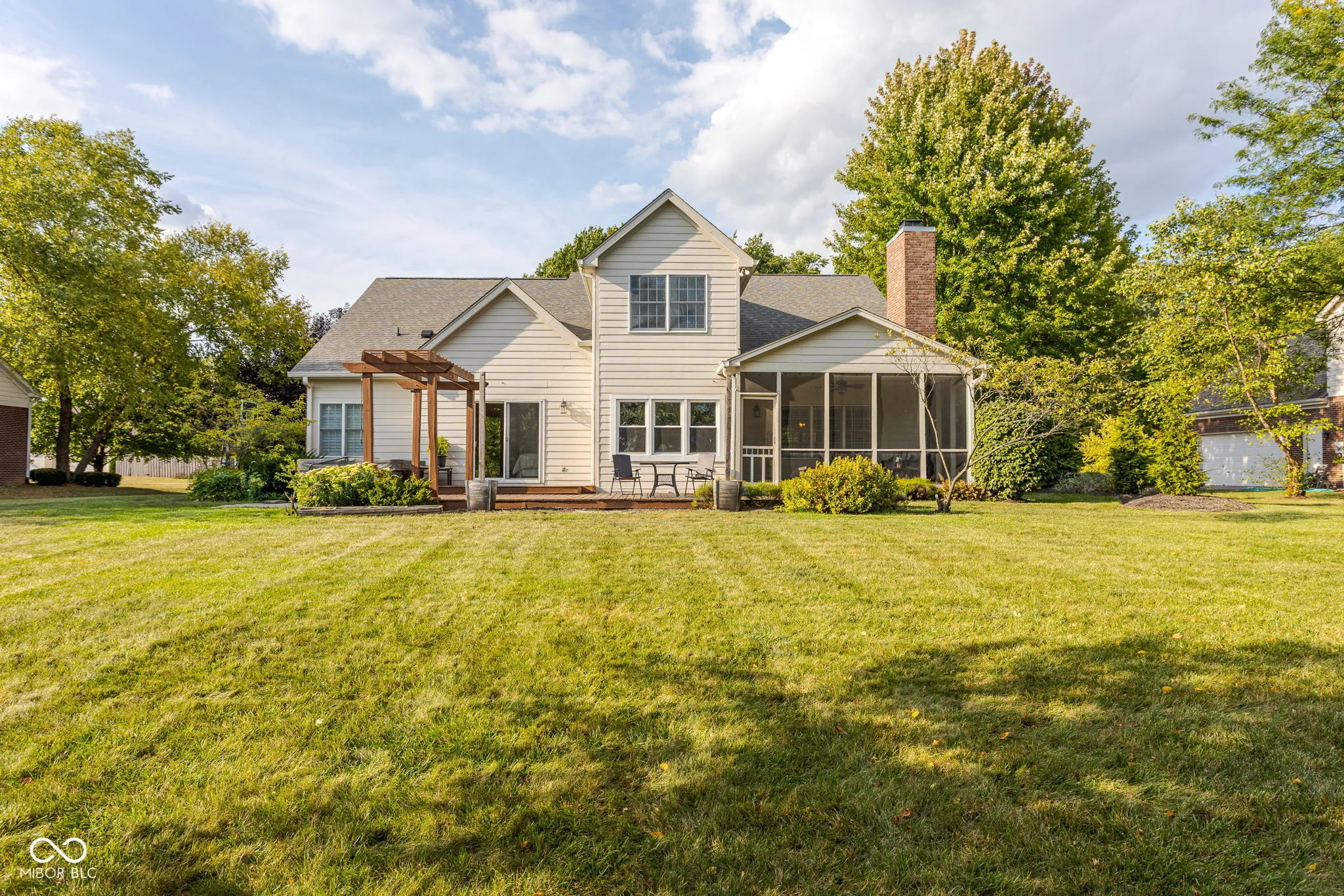 Nestled in the highly sought-after Spring Knoll community, this four-bedroom, three-and-a-half-bath home offers a peaceful backdrop with mature trees, a pond, and a charming fountain view. The backyard is truly a retreat-perfect for relaxing evenings or entertaining with friends and family. Inside, you’ll find beautiful vinyl-plank flooring throughout the main level. The great room makes a statement with soaring vaulted ceilings, a striking brick fireplace surrounded by built-ins, and plenty of natural light. The main-floor primary suite features a walkout patio and an en-suite bath with a garden tub, standing shower, and dual vanity. The spacious eat-in kitchen opens to a sunroom and breakfast room, with two separate pantries right off the kitchen, while the separate dining room and additional living room add flexibility for entertaining. Upstairs, three bedrooms each feature walk-in closets and share a full bath with double vanity and linen storage. From the second floor, you can also overlook the great room below. The fully finished basement expands your living space with vinyl-plank flooring, a wet bar complete with fridge and sink, bar seating, and a full bath-ideal for a game room, home theater, or rec space. Situated in Zionsville Community Schools near Pleasant View Elementary, with quick access to downtown Zionsville, I-65, and Whitestown, this home perfectly blends comfort, convenience, and a serene setting you will love to call yours!