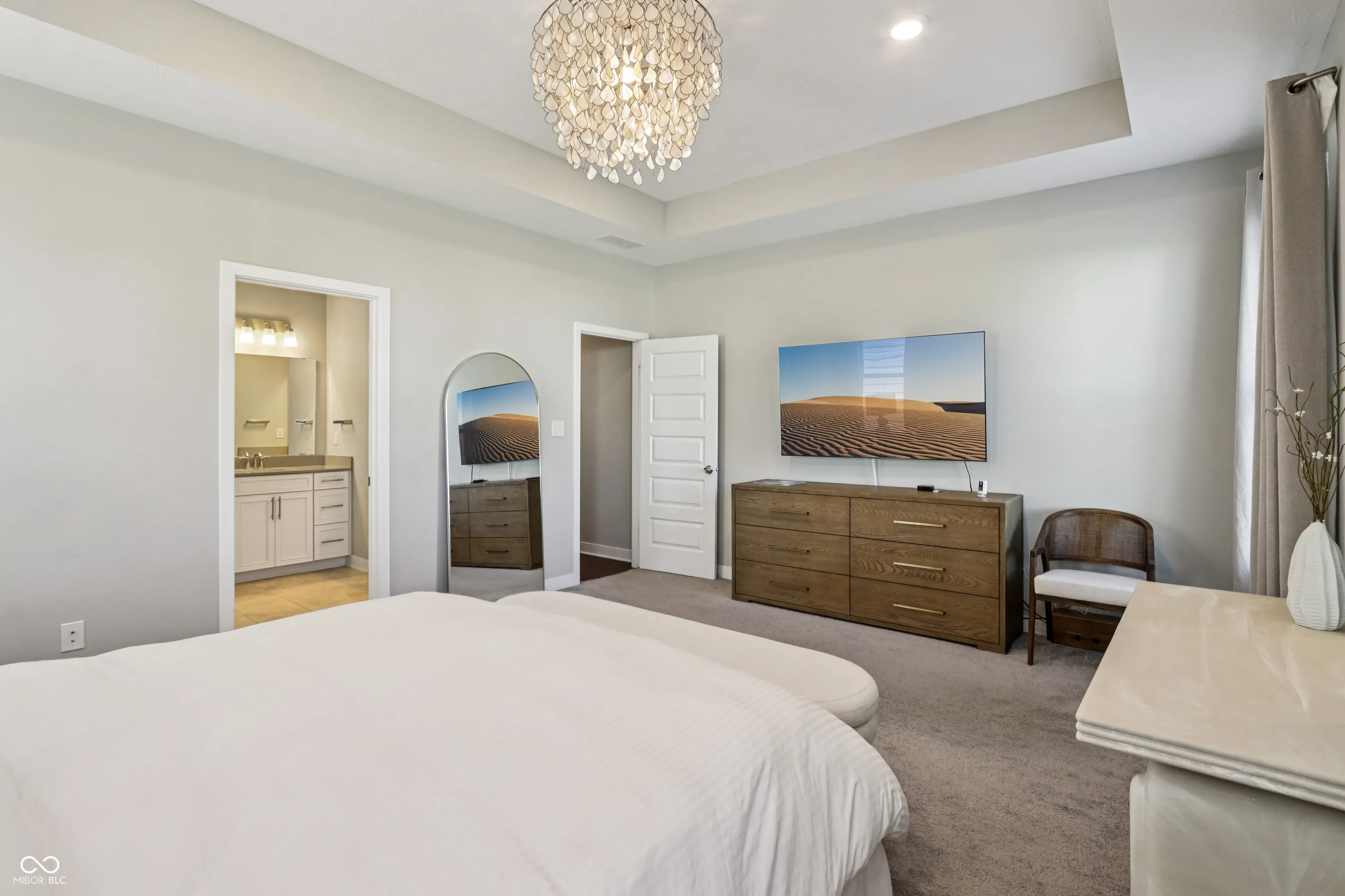 Welcome to your dream home in Westfield’s sought-after Coventry subdivision! This stunning 1.5-story residence offers 2,684 square feet of exquisite living space. With just over 2000 Sq Ft on the main it is an ideal floor plan for so many that want a Ranch home but really need one extra bdrm or flex living space……4th bdrm and private bath is the entire upstairs. The modern kitchen flows into the great room separated by an oversized island. If you like to cook you will enjoy the 5 burner gas range w/ the hood venting to the exterior. Cozy up by the electric fireplace in the great room or step outside to the custom automatic screened in porch complete w/ teak flooring. Plantation shutters, sconce lighting and crown molding are just some of the perks this one has to offer. The master suite is a luxurious retreat with tray ceilings. The adjoining bath has dual sinks, 6ft walk-in tiled shower, towel warmer and a custom organized closet. Corner lot on an almost quarter acre and it is low maintenance. Community offers park, pool and walking trails!