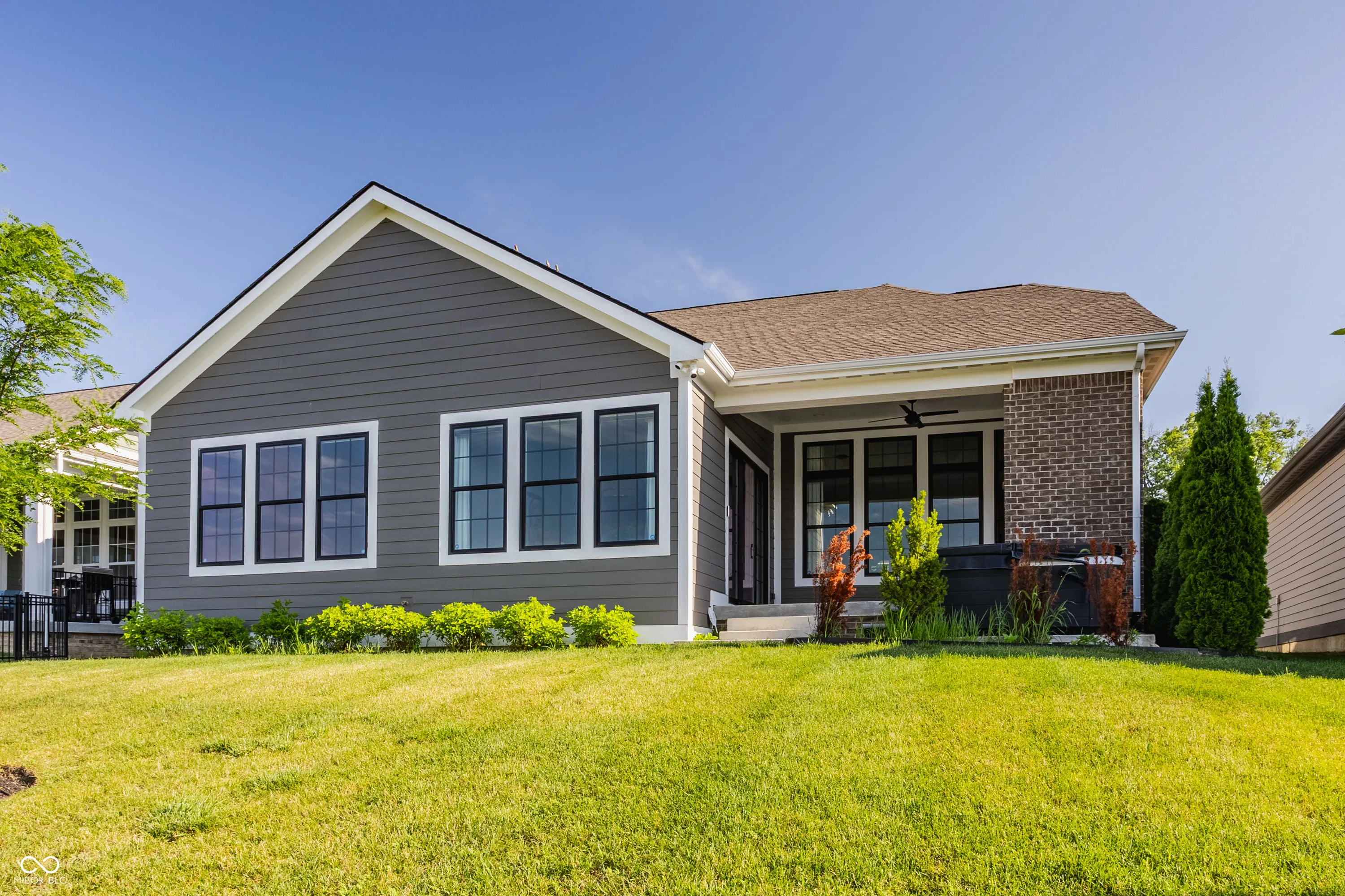 A Rare Find in Harmony – Luxury, Serenity & Comfort Combined. Discover this exquisite Estridge-built ranch overlooking a tranquil water view in the highly sought-after Harmony community. Only three years old yet thoughtfully upgraded in the last year with over $70,000 in luxury improvements, this 4-bedroom, 3-bath home feels cozy and intimate without ever sacrificing the finer things in life. Enjoy an open, sunlit floor plan with soaring cathedral ceilings, Restoration Hardware lighting, Lutron blinds, integrated audio, and upgraded black Pella windows with solid-core doors – all details that distinguish this home from the ordinary. Recent owner enhancements include fresh whole-house paint, all-new flooring in the basement and bedrooms, a new washer/dryer, reverse osmosis systems in the kitchen and baths, upgraded HVAC with HEPA filtration and dual heating zones, a new, higher, quieter garage door system, two garage heaters with remotes, and more – all thoughtfully chosen to enrich everyday living with modern ease and quiet luxury. Unwind by the covered patio’s gas fireplace as you soak in the peaceful water view, or slip into your luxurious hot tub for relaxing evenings under the stars. Gather with family and friends in the stylish finished basement featuring a wet bar and dedicated theater space – perfect for cozy movie nights or watching the big game together. This is your chance to own a charming yet sophisticated ranch retreat in one of the area’s most desirable neighborhoods, with resort-style amenities just steps away.