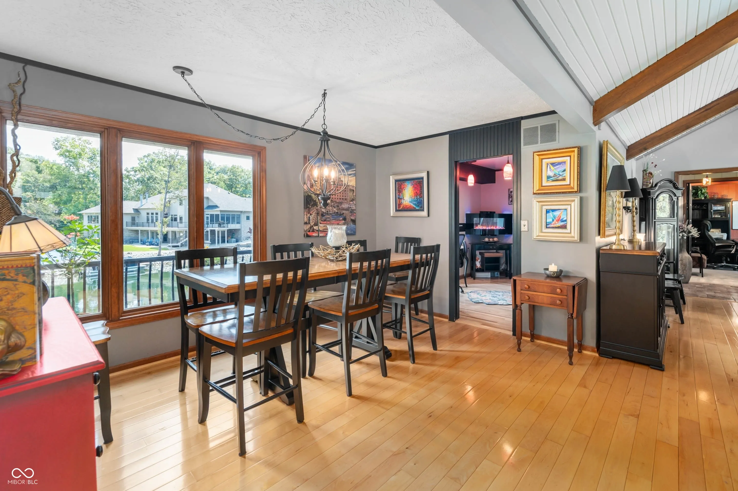Wake up to stunning waterfront views in Foxcliff North Estates! This lake front home combines peaceful surroundings with spacious living areas, making it ideal for everyday comfort and weekend entertaining. Enjoy life on the water with this 3 bedroom, 2.5 bath, lakefront home featuring its own private dock and lake views from both the front and back. Step outside to a multi-level deck that leads directly to your dock; perfect for fishing, boating or taking a sunset cruise. Inside, the spacious kitchen offers an island with seating for four and opens to the covered porch overlooking the lake making it the heart of the home for daily living and entertaining. The primary ensuite captures stunning lake views creating a tranquil retreat. A beautiful cathedral ceiling great room with wood floors featuring a gas fire place is surrounded by windows offering views of the lake. A den/office on the main level could be converted into a 4th bedroom providing additional flexibility. Enjoy extended living in the walkout basement featuring wood-burning insert fireplace, living area, pool table, half-bath and bedroom. The hot tub is included and just steps away from the walkout basement. Located in the desirable Foxcliff North Estates, residents enjoy access to the clubhouse, swimming pool, tennis courts and an 18 hole golf course making this home the perfect blend of comfort, recreation and lakefront living. Whether enjoying a peaceful evening on the deck or by the fireplace or treating friends to a boat ride on the lake, every day feels like a getaway.