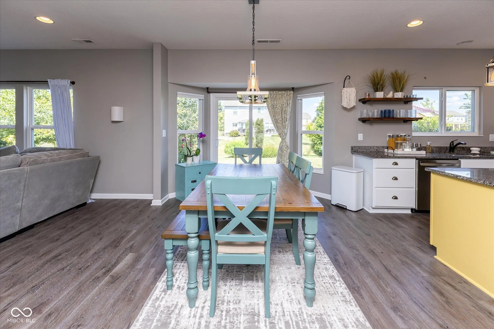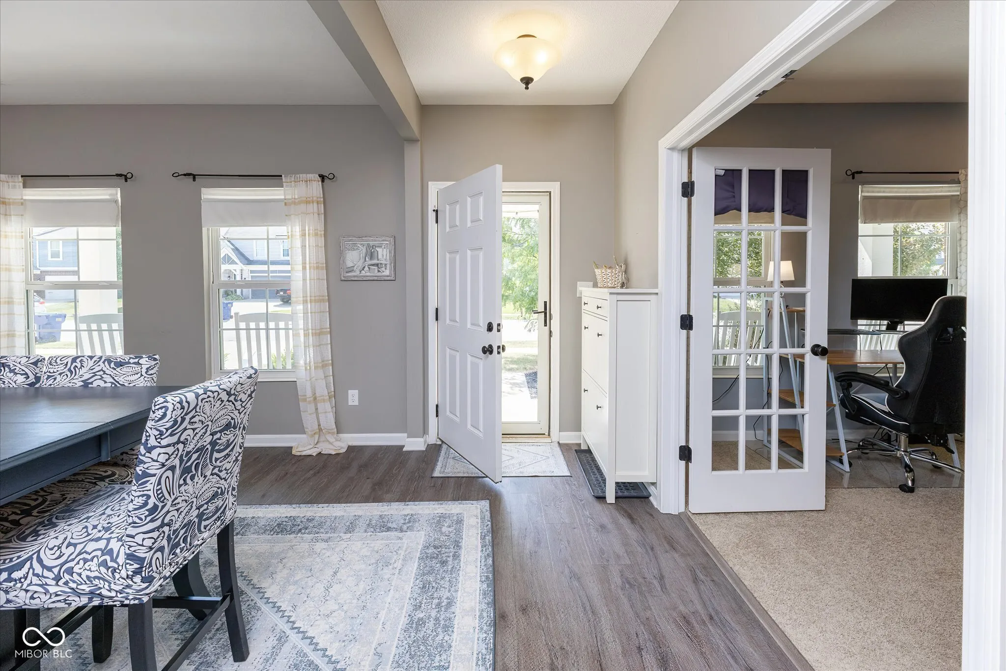 Stunning Fischer Homes build with over 3,000 sq ft of living space! This 4-bedroom, 2.5-bath home features a welcoming covered porch, private office with French doors, dining room with shiplap, and luxury vinyl plank flooring throughout the main level. The gourmet kitchen offers stainless steel appliances, granite counters, island with breakfast bar, 42″ cabinets, pantry, and a bright, window-wrapped breakfast room. Relax in the family room with fireplace or retreat to the owner’s suite with spa-like bath and walk-in closet. Upstairs includes 3 bedrooms and a huge loft. Landscaped backyard with fire pit, plus community pool, clubhouse, playground, and top-rated schools nearby!