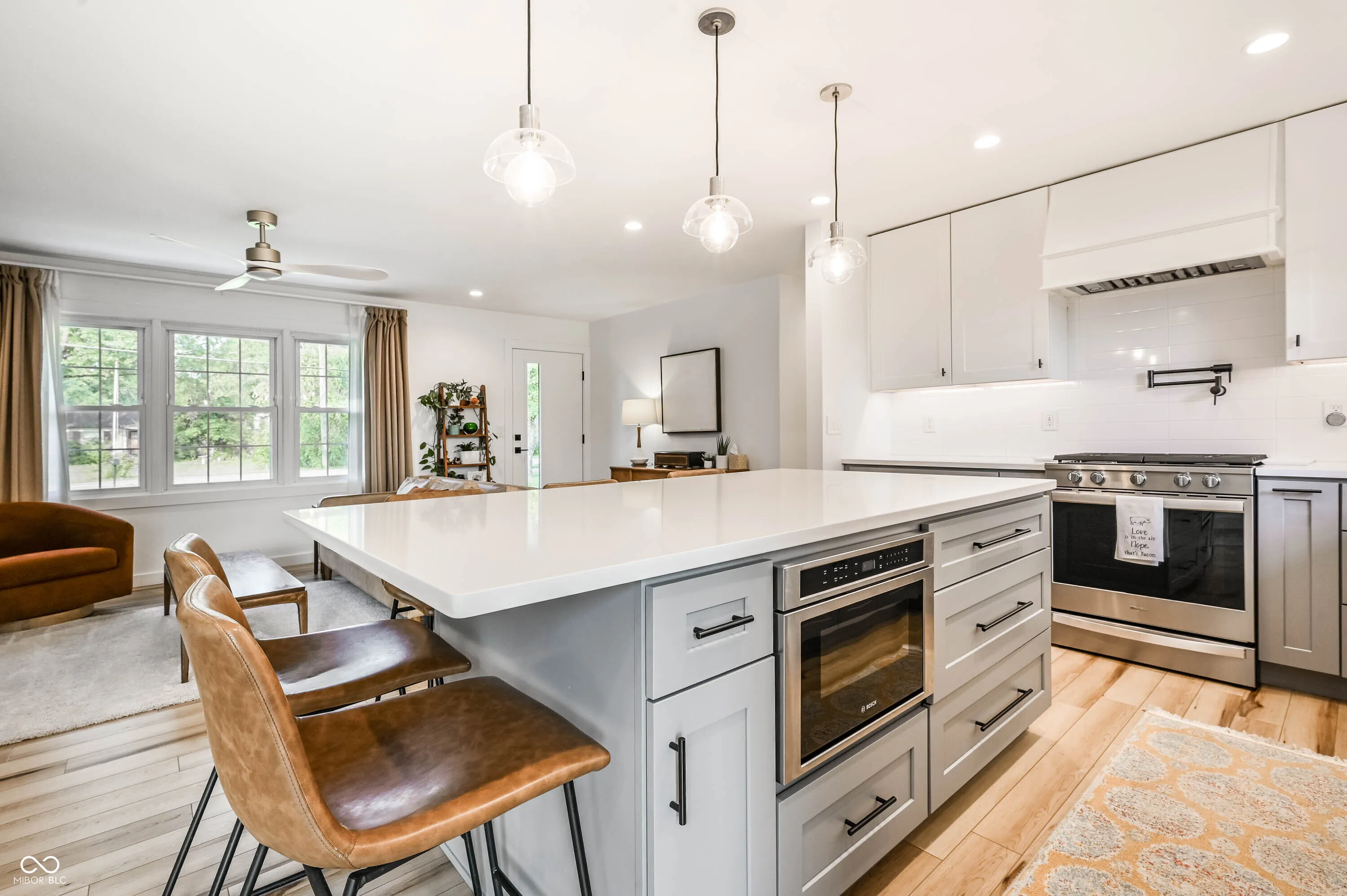There is love and intentionality everywhere you look in this stunning 1960’s ranch renovation. While the bones of this home are rooted in the 1960s, almost every inch has been reimagined and renovated to accommodate 2025 living at its finest. From the crisp white brick exterior with a warm wood-accent garage to the thoughtful landscaping, this home makes a statement before you even walk in. Inside, light-filled rooms and designer details set the tone for seamlessly usable space. This isn’t your average ranch. The living room invites you in with a cozy fireplace framed by a custom green accent wall, perfect for curling up or entertaining friends. The kitchen is the showstopper – an oversized quartz island, sleek cabinetry, stainless steel appliances, and a wall of sliding glass doors leading to the backyard patio. It’s equal parts functional and beautiful. The primary suite is a true retreat with a walk-in closet and a spa-like bath featuring heated floors – the perfect touch of comfort year-round. The additional 2 bedrooms are comfortable and bright, with updates that feel fresh and modern. High end LVP floors flow throughout, tying the home together with warmth, character, and durability that is ready for anything life throws your way. Located in a prime Carmel spot, you’ll be close to schools, shopping, dining, and trails – yet tucked into a quiet, tree-lined street that feels private. Every detail has been carefully considered so you can move right in and call 9841 Haverstick Rd. your new home.