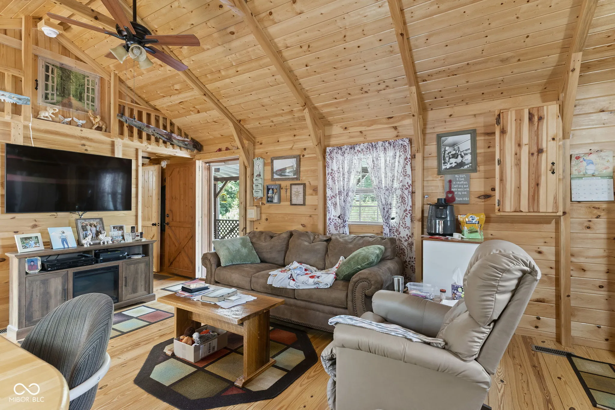 Welcome to your log cabin GETAWAY! This one-of-a-kind log cabin mini-home is the answer! Inside, you’ll find a beautifully crafted space with a single bedroom and bath, all adorned in gorgeous wood finishes from floor to ceiling. This efficient home features a heat pump system, tankless hot water heater, and 200 amp electrical service, so you can enjoy simple living without sacrificing comfort. A covered front porch offers a peaceful spot to relax, while the small lot means less time spent on yard work. Additional perks include a two-car carport, a detached garage, and a outbuilding for extra storage. There’s very little to have to mow at this property; giving you more time to relax and enjoy your new property.