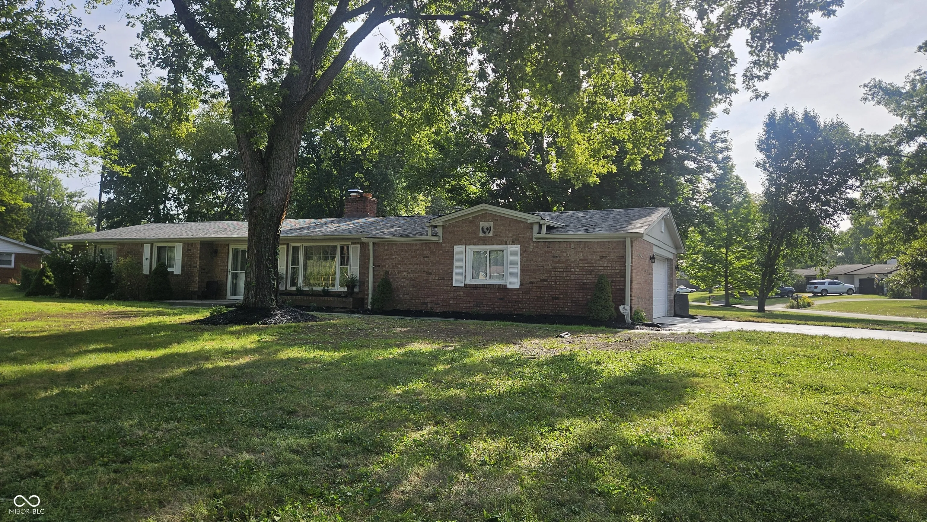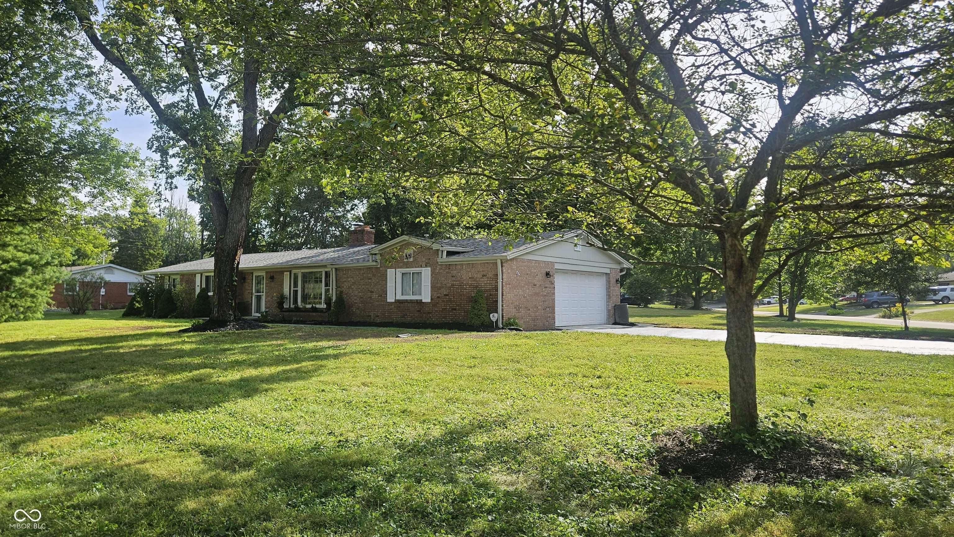 Pride of ownership shows in this Beautifully landscaped park like corner lot in a well desired neighborhood within walking distance to Connor Prairie. Seller has occupied the home for over 20 years. 3 Bedroom with additional finished room off the garage can be a bedroom, den or office. 2 Full Baths, Living room with wood burning fireplace and large windows. Large eat in kitchen. New concrete front porch, walkway, back patio 2025, Driveway has recent seal coat. Updated kitchen and baths. New furnace 2022, Roof 2025, Hot water heater 2025, Carpet 2025, Hardwood flooring 2025, Interior paint throughout 2025. Pest inspection and clear report September 2025 with a 1 year service contract to be transferred to buyer. Septic to be converted to City Sewer by the city of Fishers.