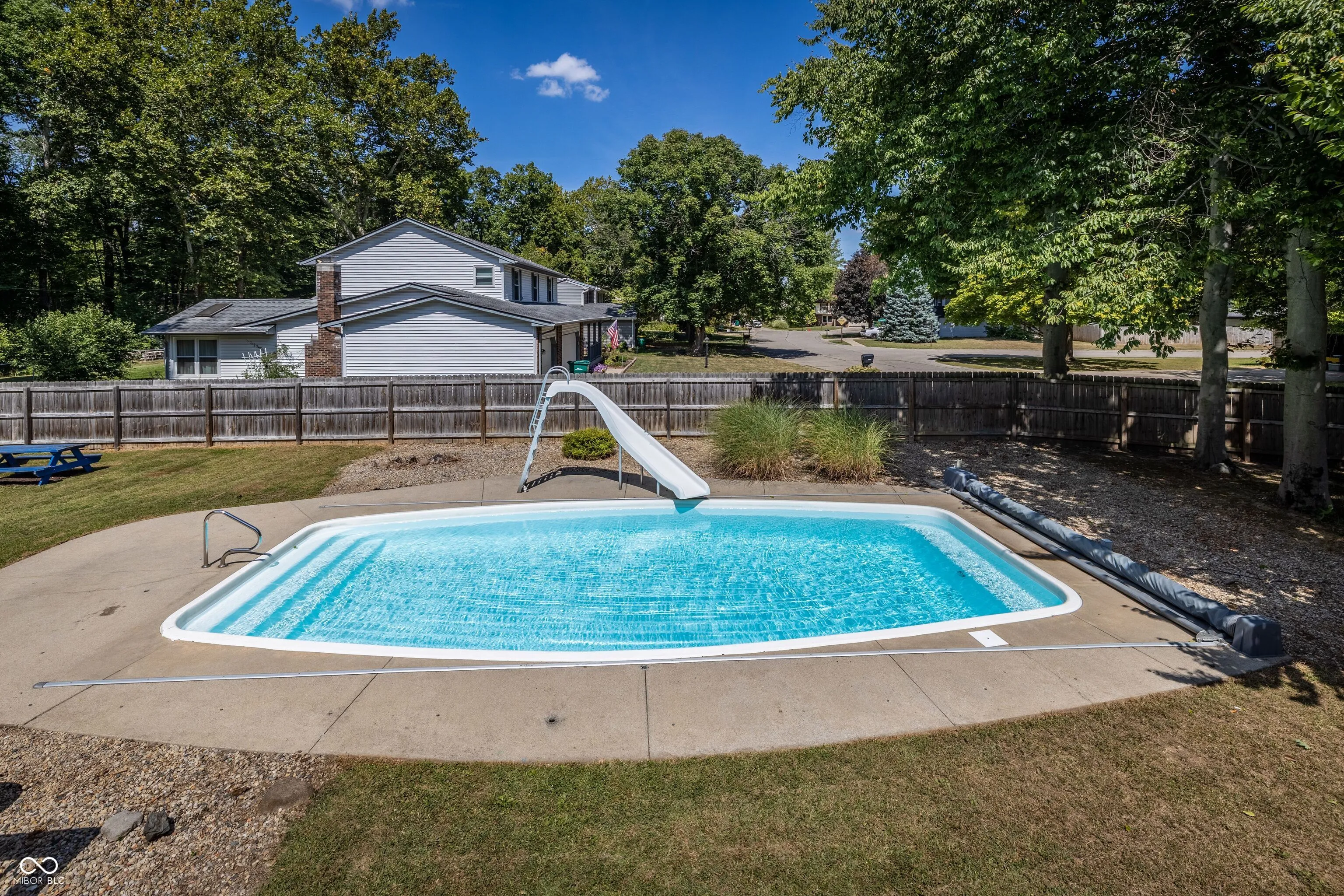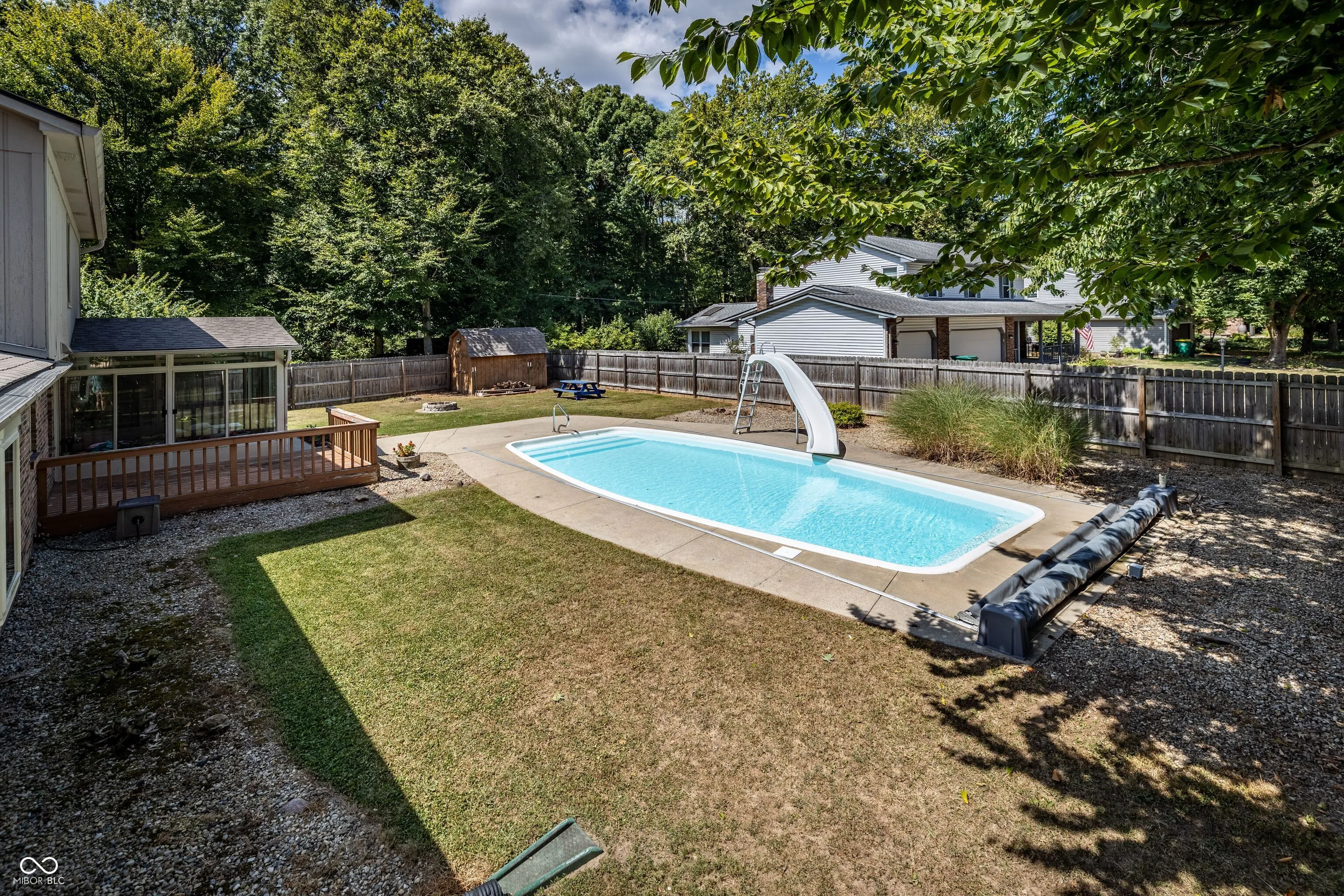 Plenty of time to enjoy the last weeks of summer here! TERRIFIC 3BD/2BA home nestled among MATURE trees on QUIET cul de sac with AWESOME backyard & INCREDIBLE exterior amenities is the perfect blend of spaciousness & serenity! The outdoor OASIS is a true highlight featuring the HEATED inground sport pool with slide & automatic cover in privacy FENCED backyard with glass enclosed Sun Room, storage shed & picnic table. FLEXIBLE floor plan with over 1,800 square feet boasts many desirable updates — ATTRACTIVE vinyl plank flooring for Main Level (& Upper level baths), PLUSH carpet for stairs & Upper Level plus some FRESH paint make this one to consider! VERSATILE Living Room has STRIKING wood burning fireplace with cedar mantel & handsome brick hearth offers easy access outdoors. UPDATED eat-in Kitchen features REFRESHED cabinets, new counters, sink, faucet, garbage disposal & dishwasher plus stainless appliances, pantry & laundry closet. COMFORTABLE Family Room with bay window & built-in bookshelf. OVERSIZED Primary Bedroom showcases RENOVATED private bath with fresh paint, shower & double closets (one is walk-in). GENEROUS secondary Bedrooms have good closet space (all Bedrooms & Sunporch have new ceiling fans/lights with remotes) along with nice sized Guest Bath. Recent Improvements: Roof & Pool Sand Filter (25), Pool Cover (24), Garage Door (22), Pool Heater (19). No HOA! Don’t miss this Great Value!