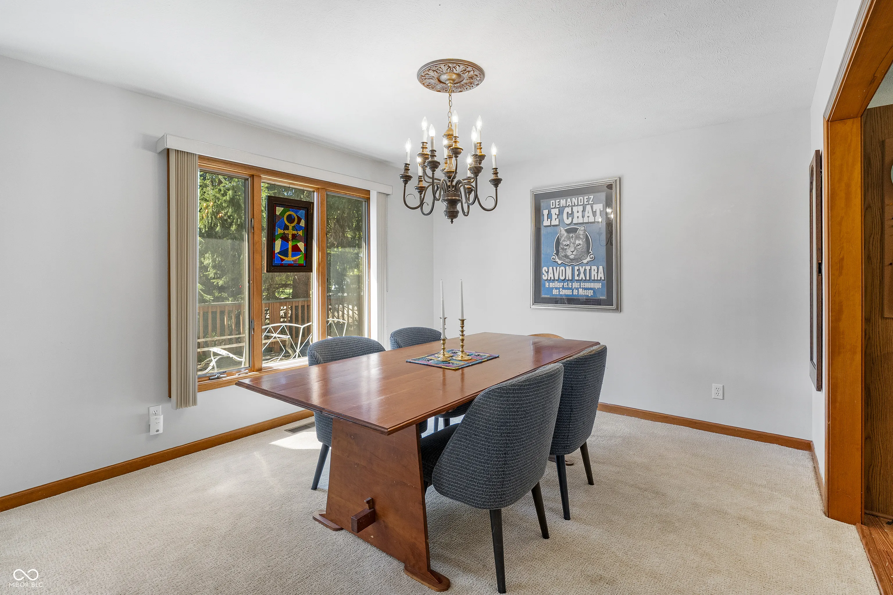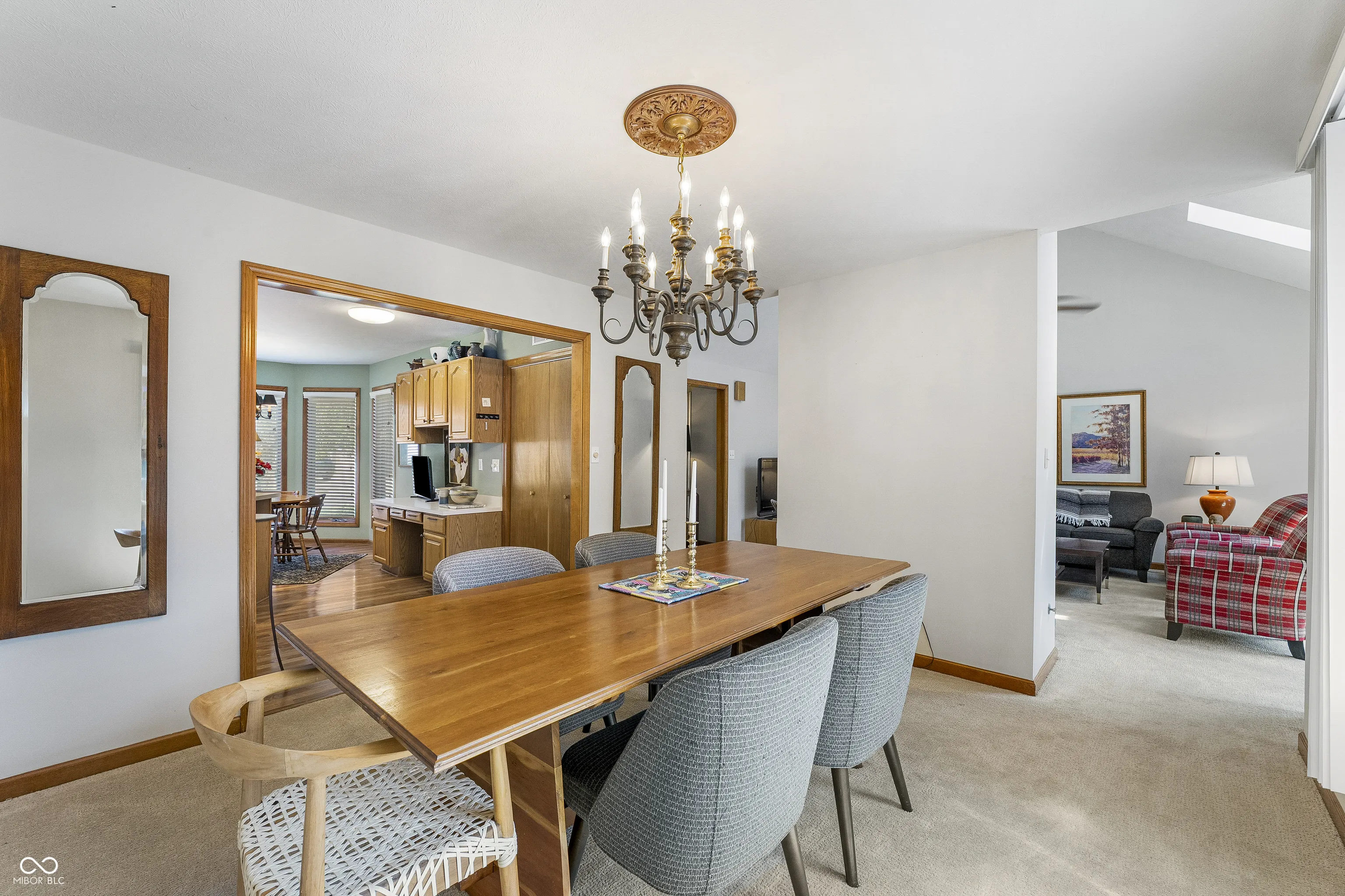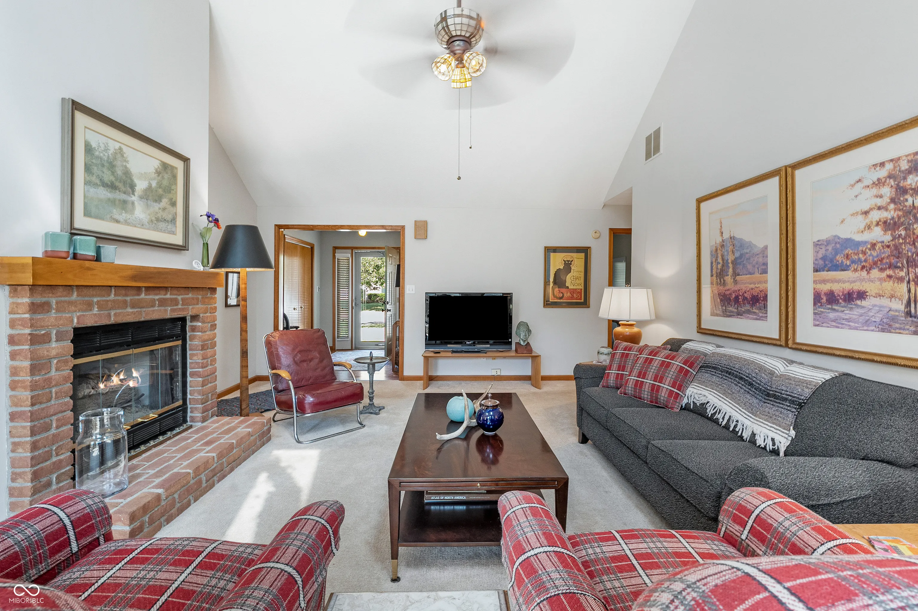 Welcome to this inviting 3-bedroom, 2-bath ranch situated on a desirable corner lot. Step inside to a welcoming entry that opens into a spacious living room with a cathedral ceiling, skylights, and a cozy brick gas-log fireplace. Large windows and a glass door fill the space with natural light and provide easy access to the back deck-perfect for relaxing or entertaining. The dining area sits on the other side of the fireplace and flows seamlessly into the kitchen, which features abundant cabinet space, a pantry, a built-in desk, and a bright breakfast nook. The generous primary suite includes room for a sitting area, along with a private bath complete with a garden tub and separate shower. Additional highlights include a two-car garage and a prime location close to shopping, dining, and scenic walking trails.