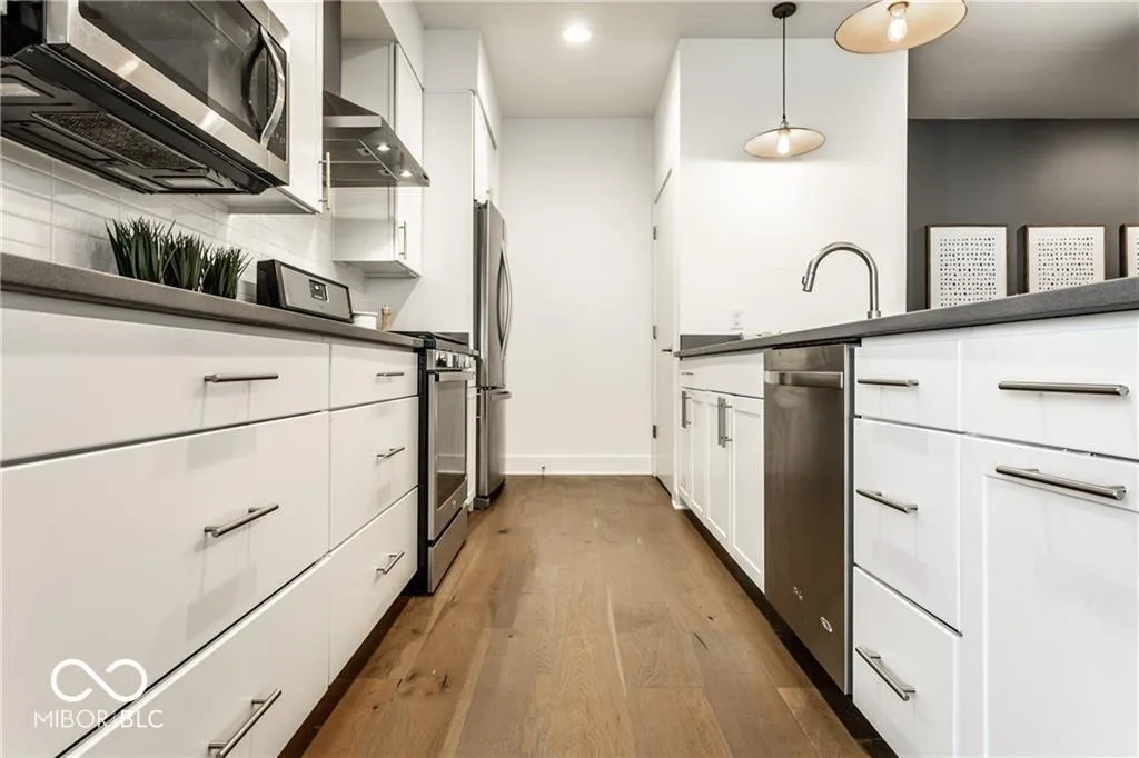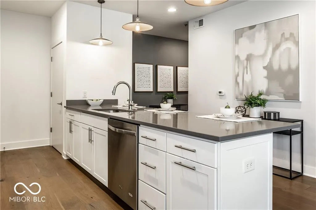 Condo is also for sale (MLS #22036171). 6 or 18 month lease duration preferred. CHATHAM ARCH – Central to hospitals and all things in downtown Indy! This end unit, maintenance free condo is just one block from the renowned Bottleworks District and Mass Ave! Enjoy a peaceful stroll around your neighborhood, bike or jog on the Monon a block away, or head out on the town to endless entertainment options nearby. This open concept is perfect for today’s lifestyle; hosting guests is a total breeze from the gourmet kitchen. Tons of natural daylight throughout along with a private balcony for your morning coffee. This end unit feels like it has a private entrance being close to the side stairs allowing easy access to the garage. Don’t wait!