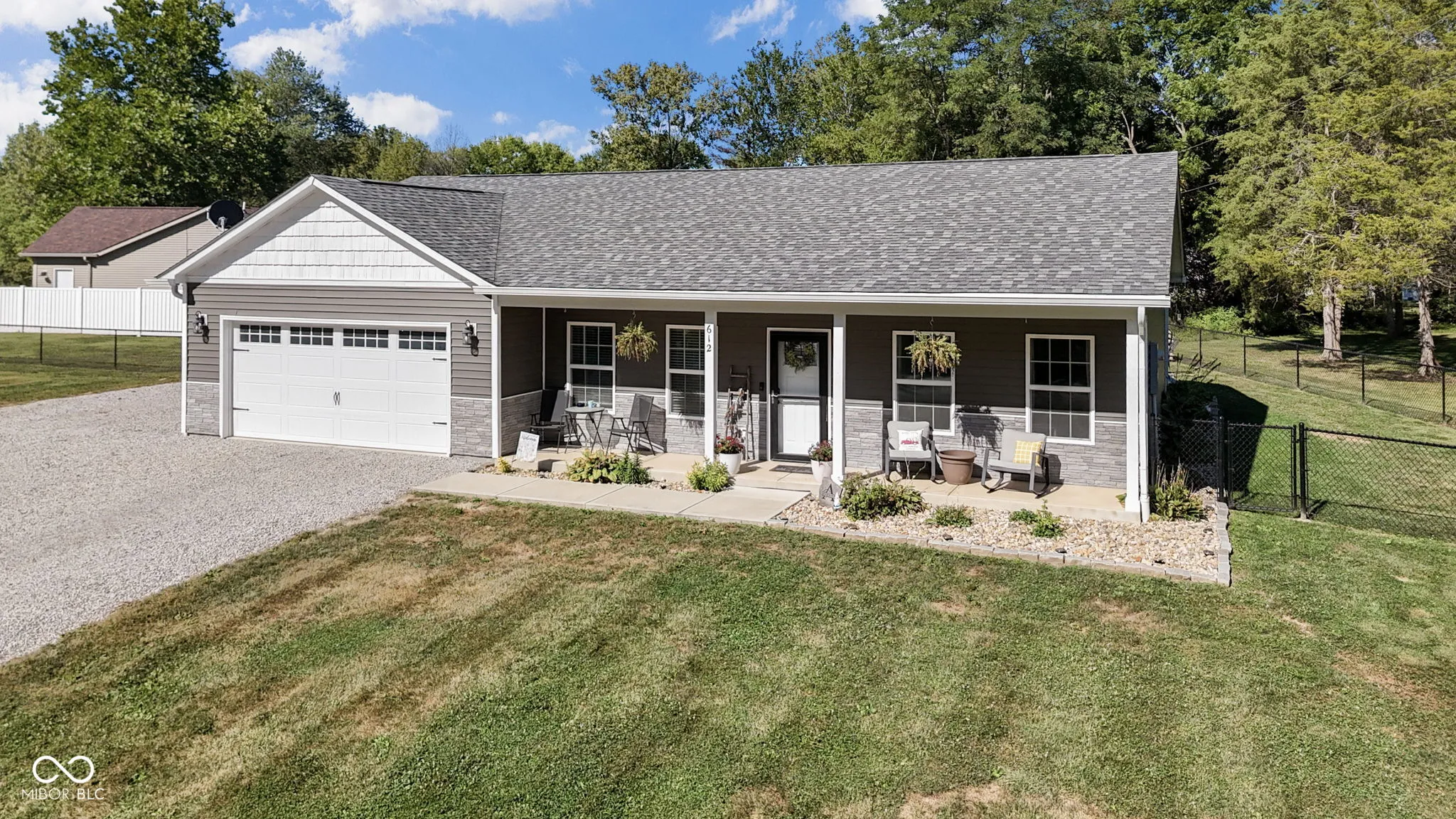 LIKE NEW, BUT BETTER!!! Built in 2020, this pristine 1,544 SF, 3 BR, 2 Full BA ranch home on a 1/2 corner lot is a total dream! Situated on an very large lot, the Sellers just upped the game by investing $10,000 to add on a fenced-in backyard w/all-weather privacy fencing. The fenced-in area encloses the 660 SF back concrete patio that is partially covered. (This makes the backyard the perfect place to entertain, or an ideal area for both kids and/or animals to play.) The covered front porch and the extra-wide driveway perfectly complete the exterior picture. Enjoy open concept living in the combined Great Room/Dining Room/Kitchen. Kitchen w/ center island/breakfast bar, coffee bar area, new farmhouse sink and all stainless steel appliances included. The Dining Room leads out to the back patio through double sliding glass doors. Split floor plan with the Master BR Suite on the opposite side of the house from BRs #2 & #3. The Master BR Suite is spacious w/ double sinks in the Master BA and walk-in closet. There are automatic keypad locks on both the front door and garage door. The Sellers also added $5,000 in rock landscaping. There is just SO MUCH HERE! Schedule your showing ASAP before it’s gone!