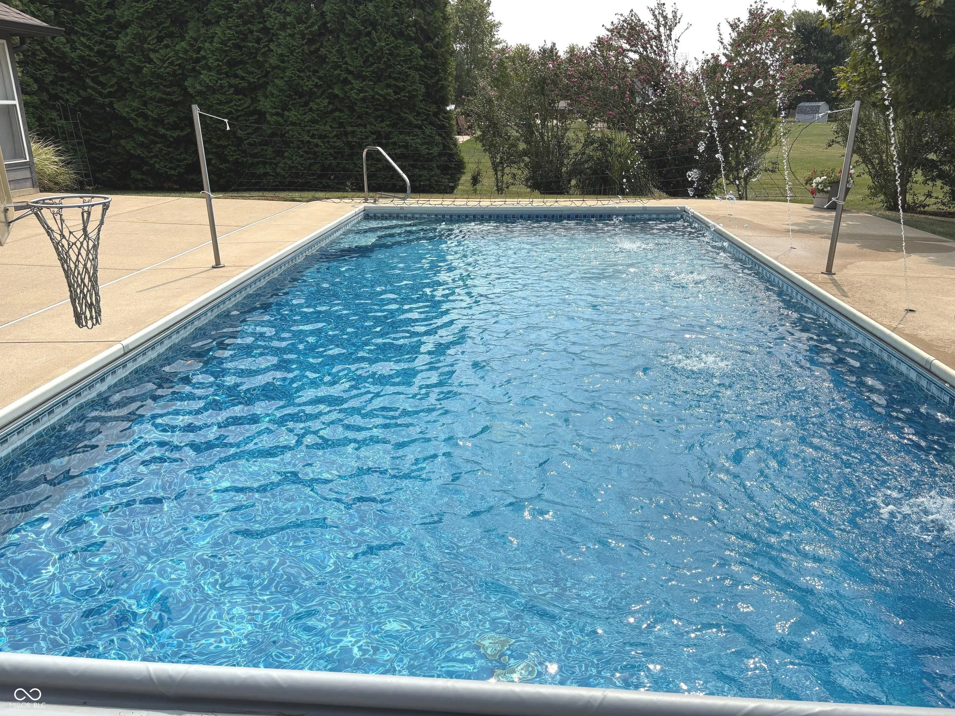 All Brick Ranch w/1884 SF on Main Level & an additional 393 SF Finished Areas which could be used as a 20×8 Loft (balcony railing overlooks Great Rm) Plus Walk-in 14×9 Storage Or Office? (no window/closet in this additional rm) which makes the house total of 2,277 SF in Countryside in New Palestine! GORGEOUS 16×32 HEATED Inground Pool installed in 2009 w/New Automatic Cover! Depth ranges from 3′ to 5′ and has Volleyball Net & Basketball Goal & Fountain Feature! Chlorine w/Frog System (keeps minerals out). PLUS 16’x24′ Covered Patio which is Great for Entertaining or Lounging in the Shade! .865/Acre Lot w/Mature Trees giving you Privacy while in the Pool Plus 12×8 Mini-Barn for Storage! CoreTex Luxury Plank Flooring Installed in 2023 along w/new main level carpet! Replaced Windows approx 14 yrs ago. Coil in Gas Furnace & Outside A/C unit replaced approx 5 yrs ago! Roof approx 12 yrs old! Garage door replaced approx 2 years ago along with Opener which you can operate w/phone! Ready for immediate Possession & Enjoy the Pool!!!