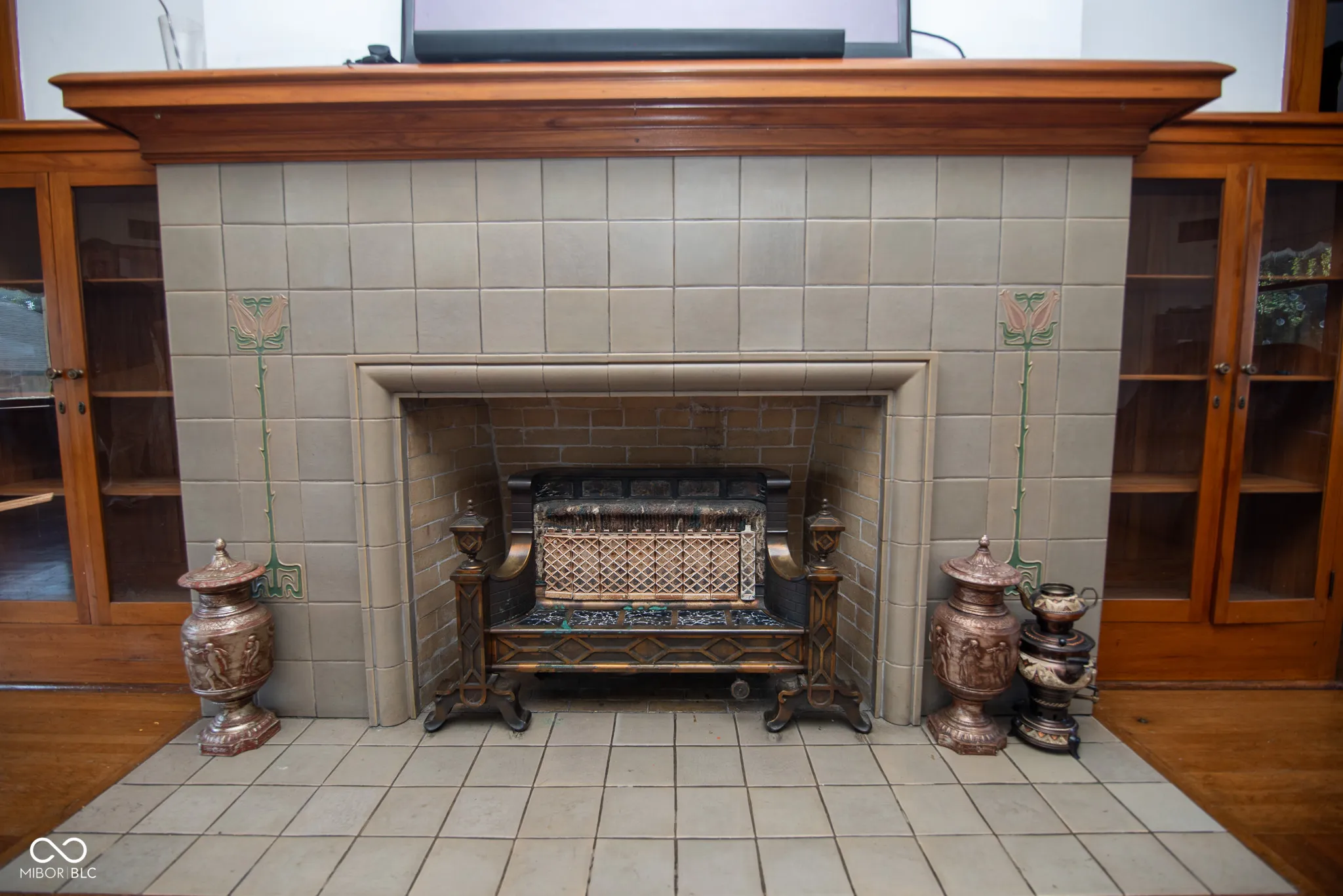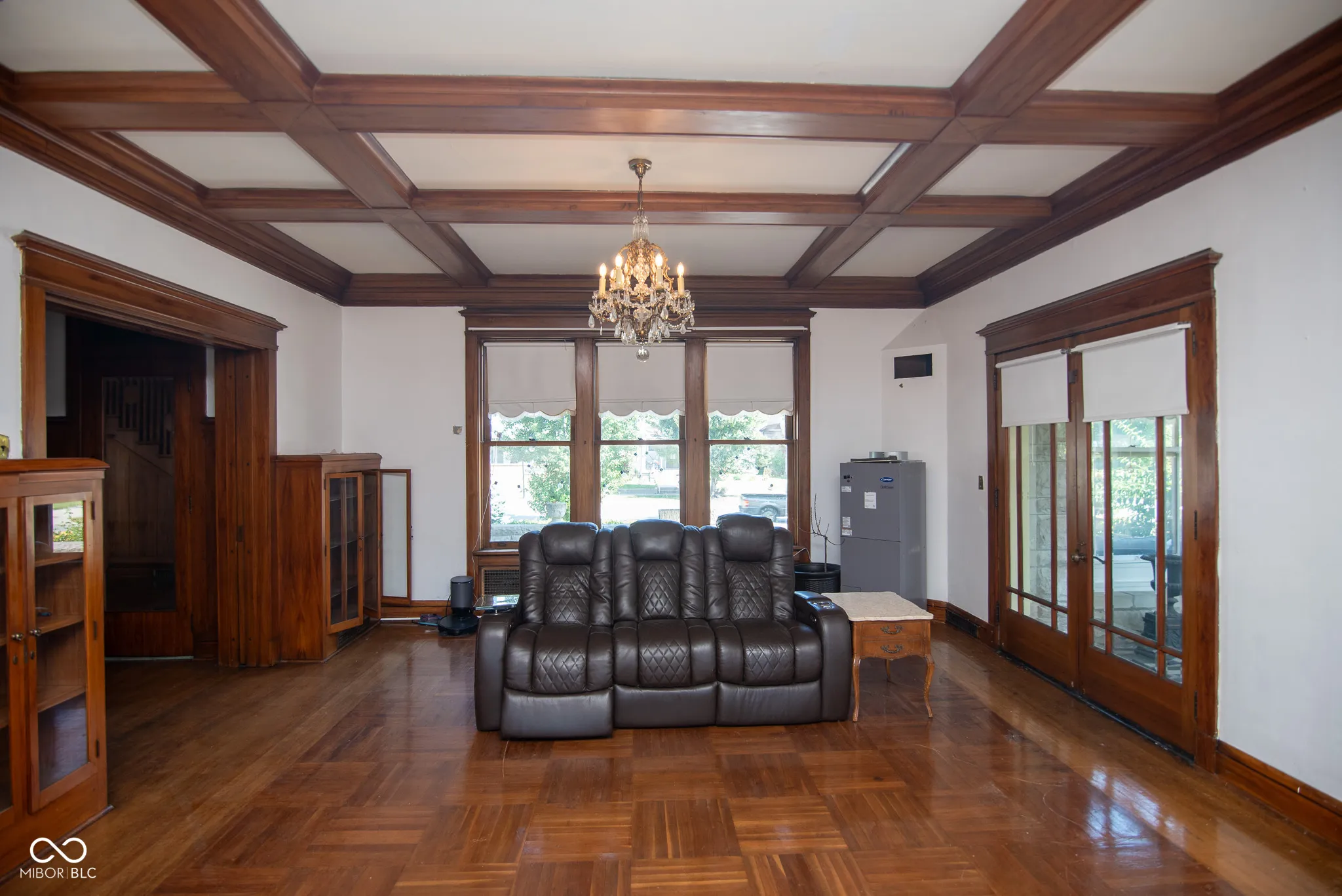 Palatial Bedford Stone Foursquare waiting for the right buyer with vision to restore and enhance its full potential! This remarkable home showcases original hardwood, Grueby & travertine tile, parquet, and carpeted floors. Featuring 8 bedrooms, 5+ bathrooms, and 6 Rookwood Pottery fireplaces, the property is filled with character. Highlights include a coffered living room ceiling, pocket doors, and natural woodwork throughout. Enjoy the spacious three-season room with original double doors and tiled flooring, perfect for entertaining or relaxing. The basement walls are adorned with beautiful Rookwood tiling, adding to the home’s unique detail. Outside, you’ll find a detached one-bedroom guest house/in-law quarters and a 4+ car detached garage with a covered breezeway connecting to the main house. With three full floors of living space plus a large unfinished basement, this home offers endless opportunities to create a truly stunning residence.