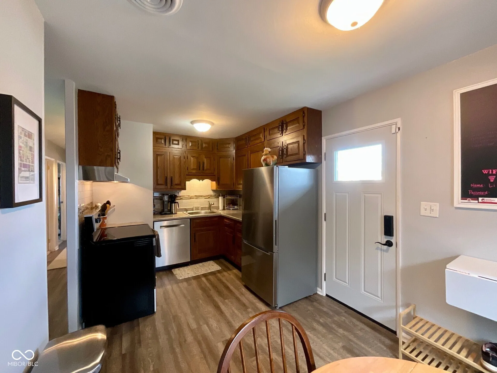 Known as the “Lil House on Grand,” this delightful 3-bedroom, 1-bath ranch is move-in ready and full of thoughtful updates. The home features an inviting living room with a wide span of windows that fill the space with natural light, a lovely eat-in kitchen with attractive countertops, beautiful wood cabinetry, a large pantry, plus a convenient laundry area. All bedrooms are nicely sized, and the bathroom has a fresh, modern feel. Since November 2023, updates include a new backyard concrete parking pad (fits 2-3 cars), refreshed landscaping, recessed lighting in the living room and small bedroom, electrical brought up to code, a new water line, and fiber internet installed with utility closet access. A Eufy security system with four cameras, doorbell/package camera, and smart keypad/fingerprint door locks adds peace of mind. Major updates within the last 5 years include a new HVAC system, carpet, roof, gutters, gutter guards, downspouts, windows, water heater, and plumbing upgrades. Appliances that have all been updated and remain with the sale include a washer and dryer, refrigerator, vent hood, electric stove/oven, and Bosch dishwasher. An 8×10 backyard shed with electricity, a small work bench and provides excellent storage. This well-maintained home combines comfort, convenience, modern updates, a sunny backyard and a shaded front yard -ready for its next owner to enjoy!