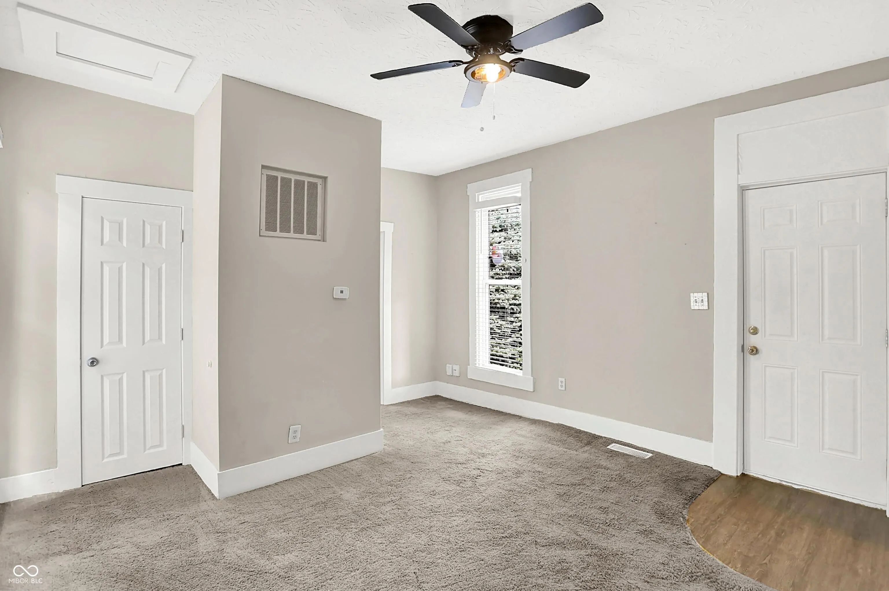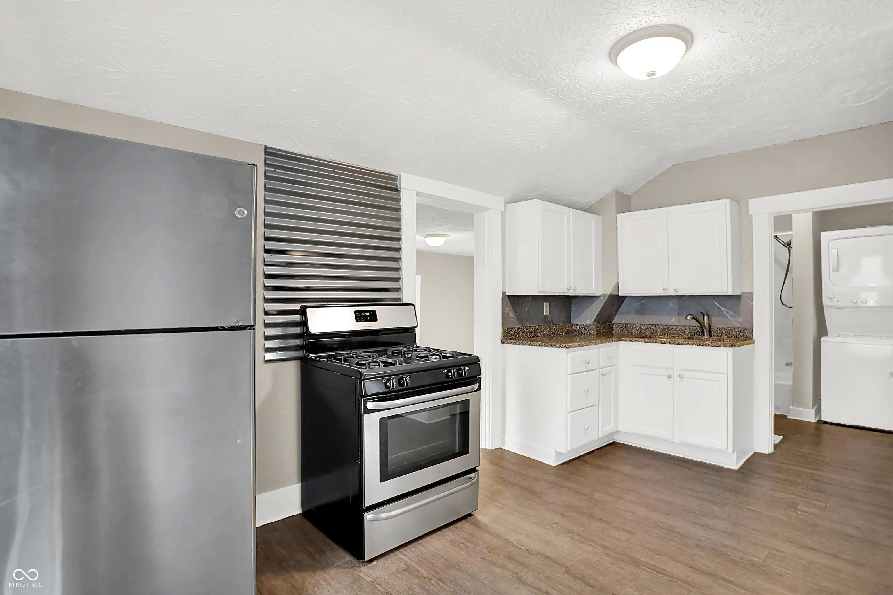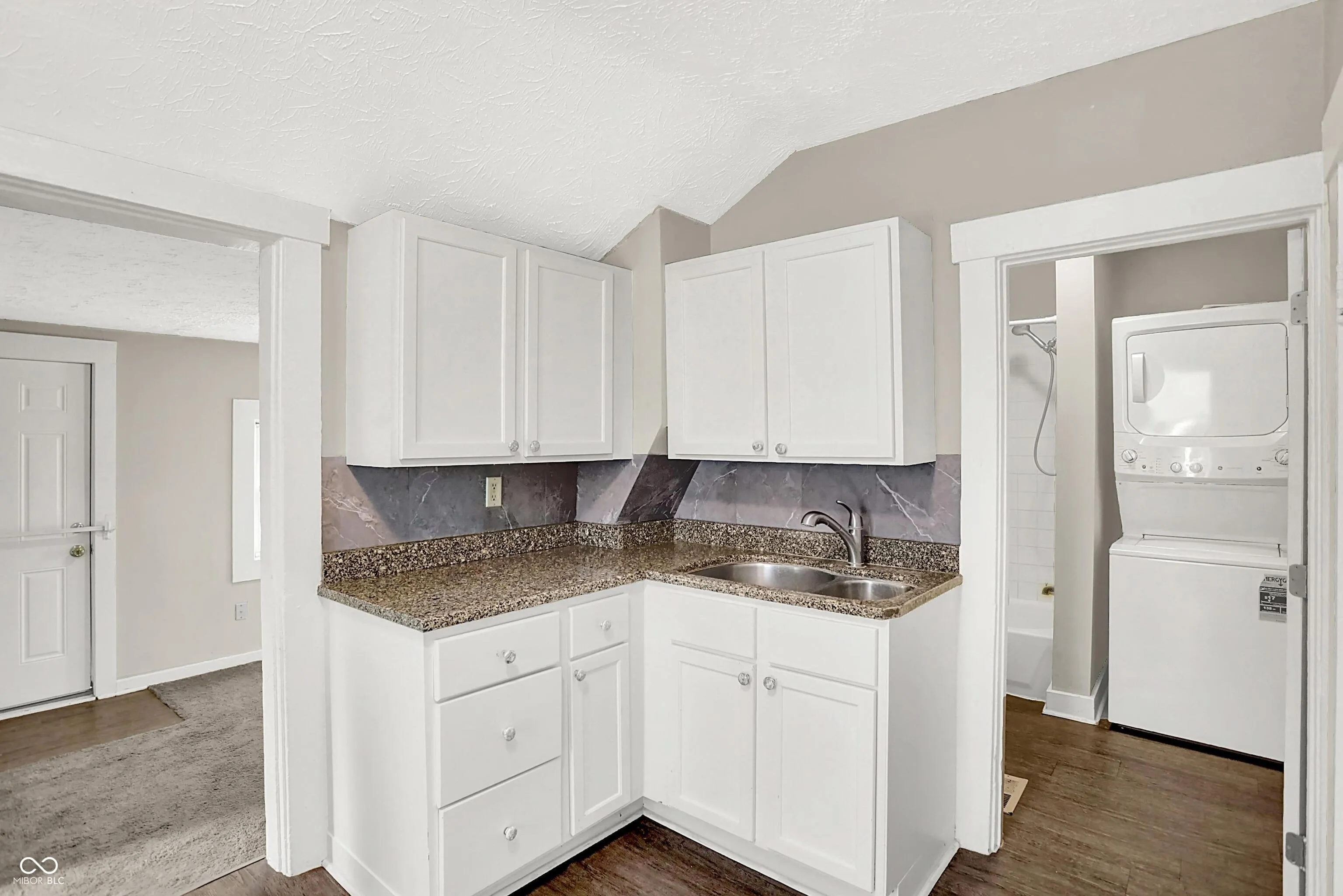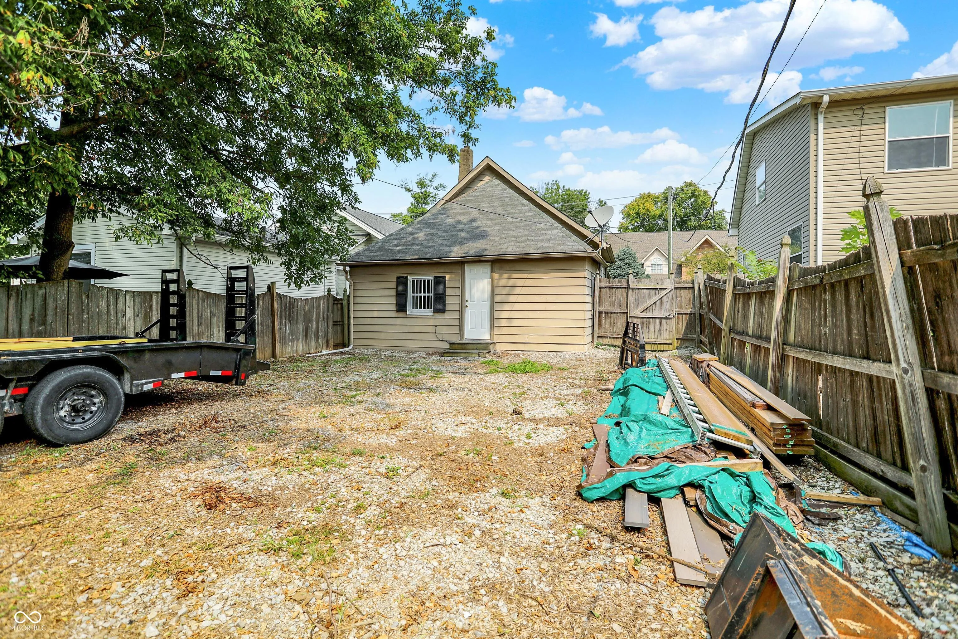 Quaint bungalow in the heart of downtown Greenwood- minutes to parks, Amphitheater for concerts and Restaurants. Great rental potential, first home buyer or for anyone needing storage space with a drive through garage with doors on both sides and large fenced/gated yard. Nice updates and move in ready. Tall ceilings greet you in the living room area and primary bedroom. Newer carpet ,flooring and updated eat in kitchen. Nice white cabinetry , counter tops and appliances. The full bathroom has been updated and laundry area adjoins with stackable washer/dryer. The rear bedroom has 2 closets ( does not currently have a door between the kitchen and bedroom). Quaint office or storage area just off the kitchen. Newer HVAC and Water Heater. The garage is accessible in the road behind the house and has a door on both front/back and the large rear yard is fenced/gated. Great space for anyone with equipment to store . City of Greenwood is expanding the sidewalks & street lights in this area in the near future. Possible commercial potential. Will not last long!