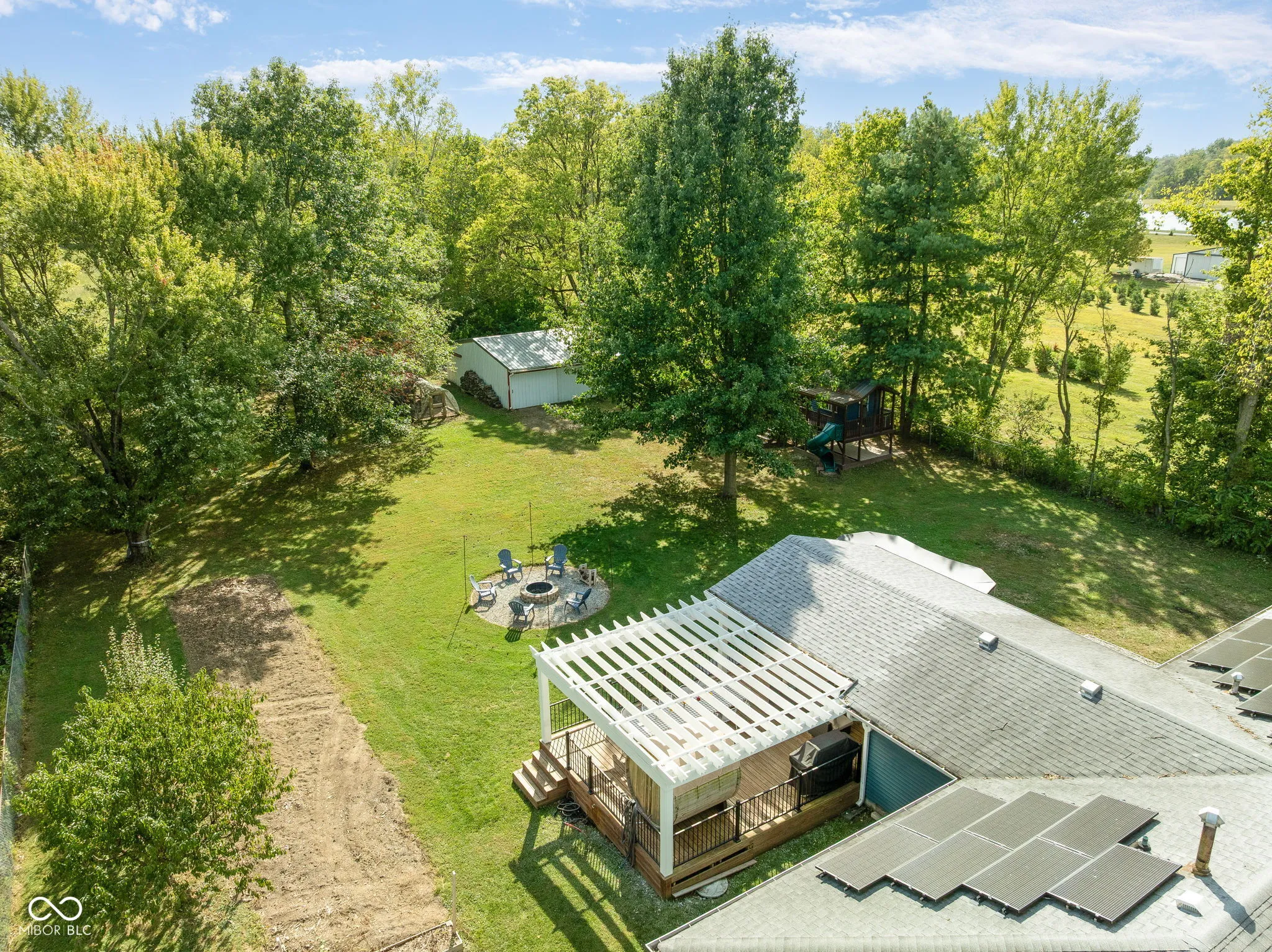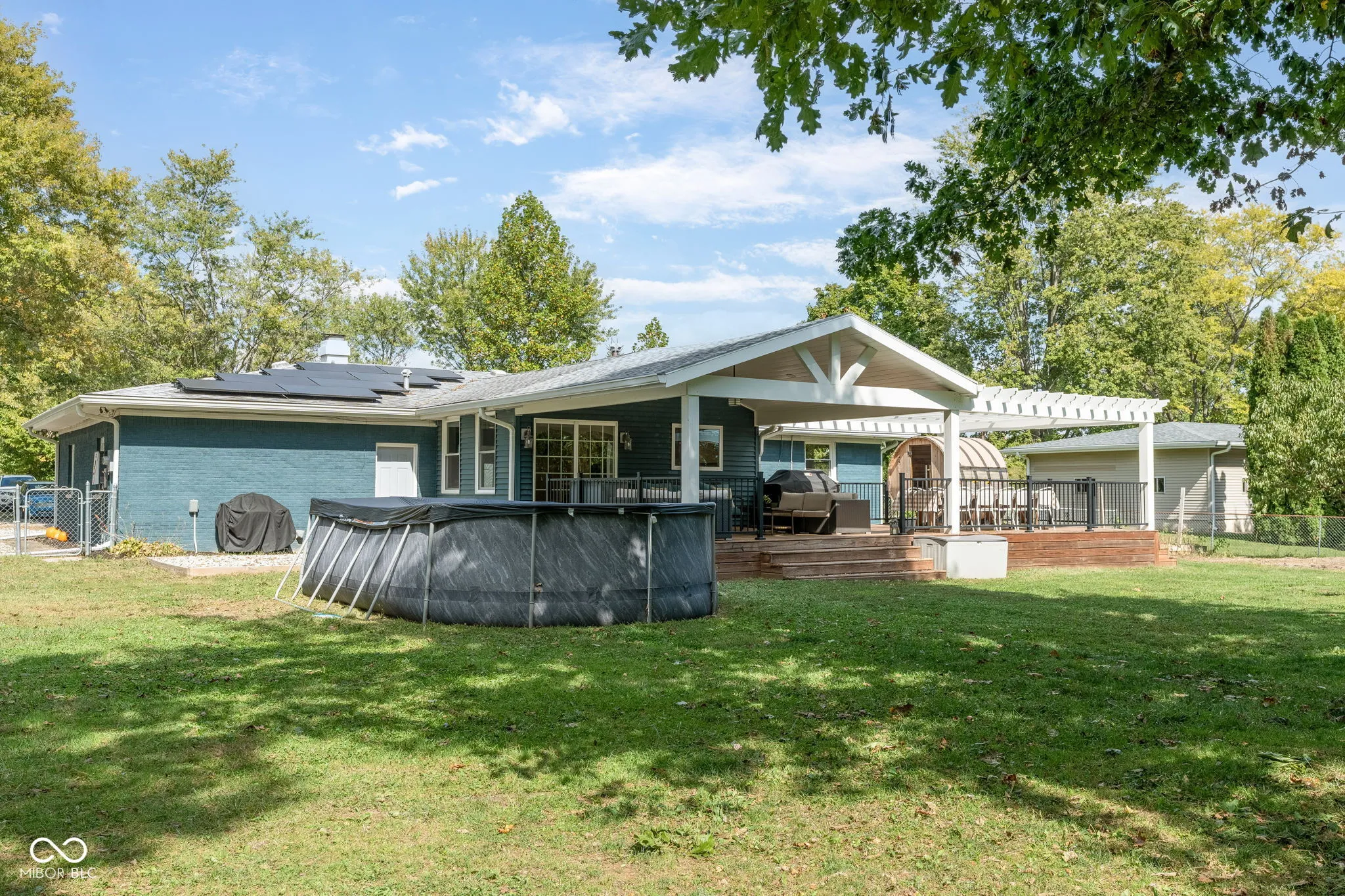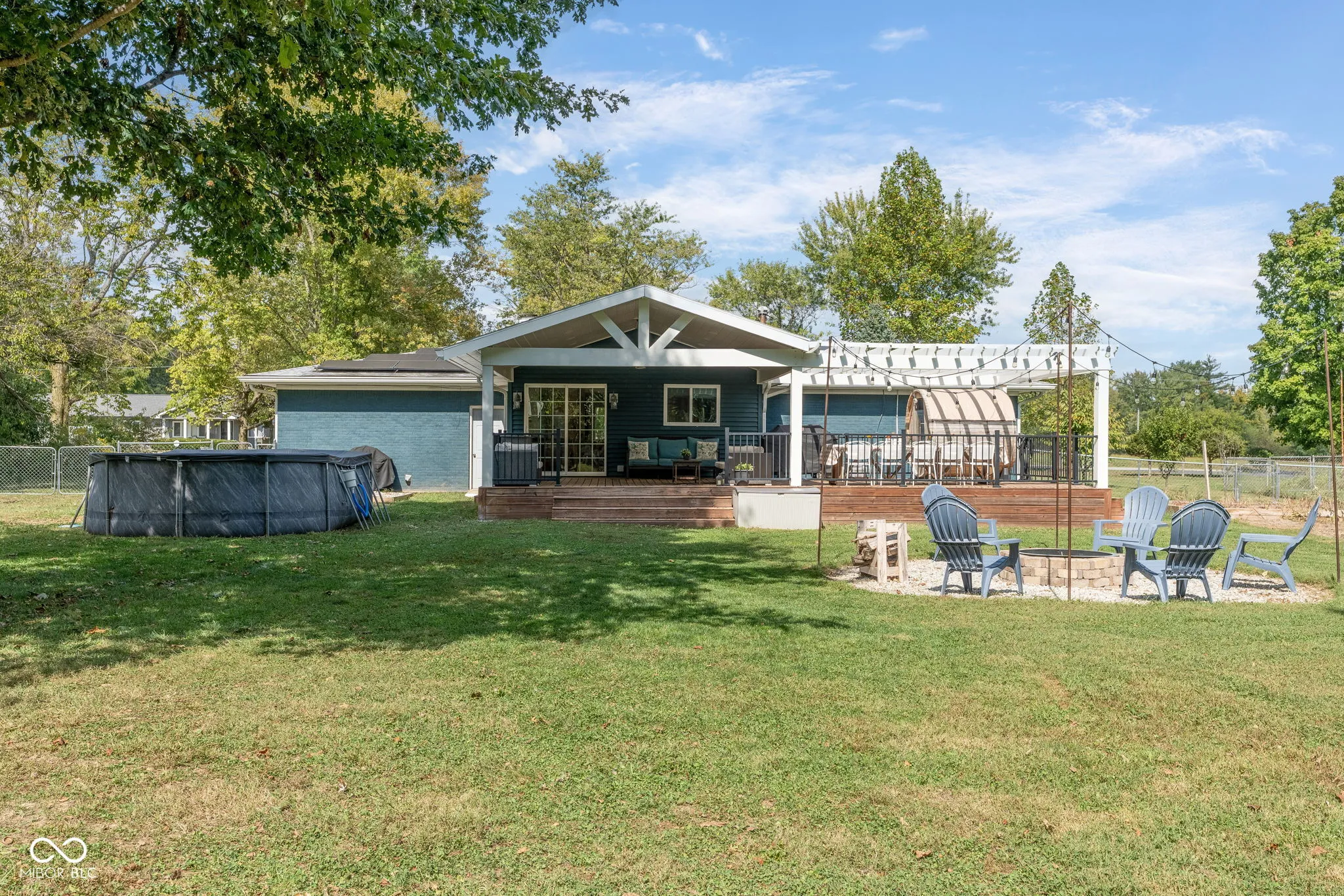 If you’ve been dreaming of peaceful country living without giving up convenience, welcome home to 7749 W 1000 S in Fortville. Nestled on nearly an acre, this well-maintained 3-bedroom, 2-bath ranch offers a tree-lined lot and plenty of extras, including a brand-new above-ground pool, 27′ x 30′ pole barn, chicken coop, custom playset, and more. Inside, the kitchen, dining room, and great room flow together in an open-concept design that extends to the covered back patio-perfect for relaxing mornings and evenings outdoors. Over the past few years, this all-brick home has been refreshed with updated flooring, a redesigned kitchen, and newer bathrooms. The property also features solar panels with a battery backup system to add energy efficiency and security during outages, plus a recently installed water heater and softener. Enjoy a touch of homestead living with fruit-bearing trees, including peach, sour cherry, apple, and pear. Located just north of downtown Fortville, property is within the South Madison Schools with easy access to I-69, downtown Fortville, and downtown Pendleton.