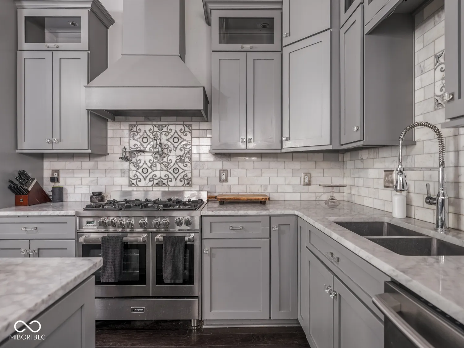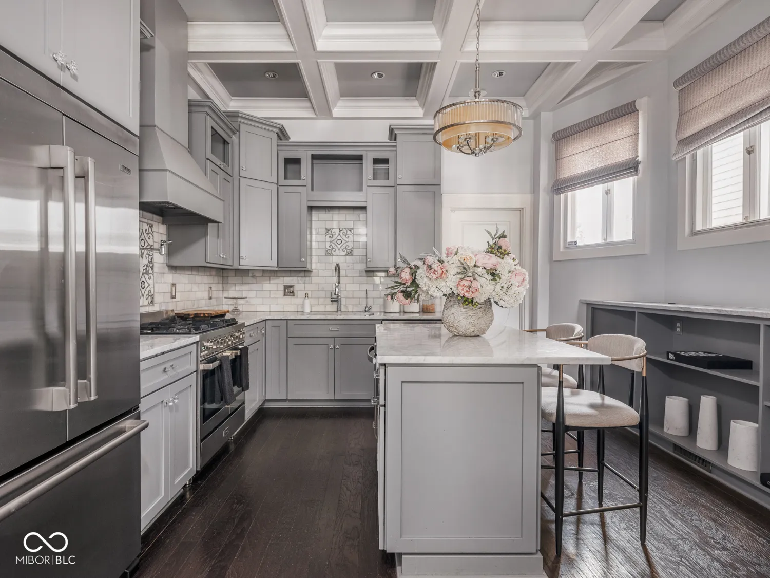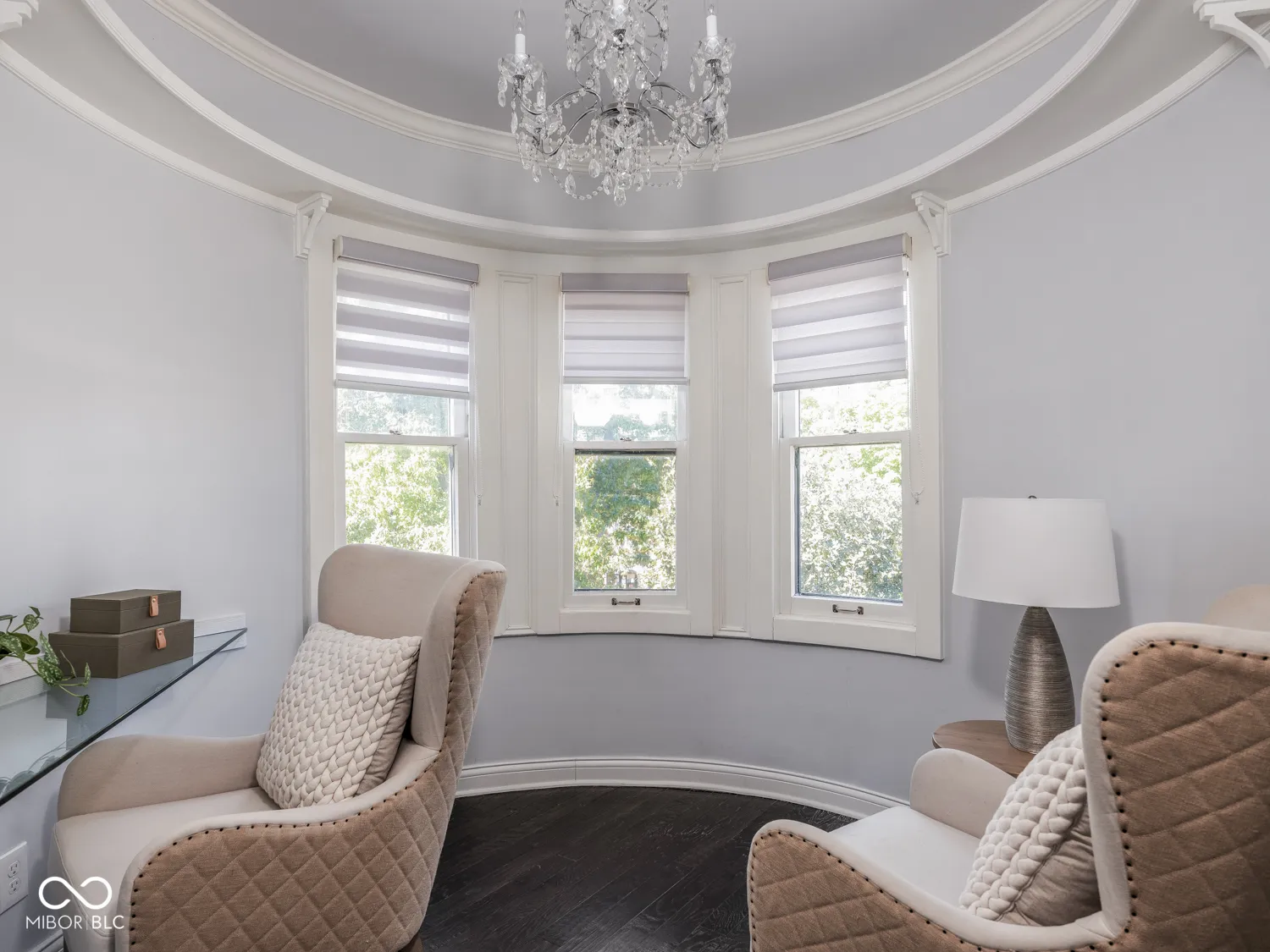 Minimal exterior maintenance and no HOA fees! In the heart of the historic Old Northside awaits this showstopping townhome, meticulously restored and thoughtfully upgraded to the highest standard. Brimming with curb appeal, the home greets you with a large covered front porch (complete with porch swing) and its signature Victorian turret. Inside, timeless craftsmanship meets modern elegance: coffered ceilings, inlaid doors, warm hardwoods and designer lighting set the tone. The open-concept main level is designed for entertaining, with a dreamy chef’s kitchen featuring high-end appliances, slow-close custom cabinetry, marble counters, wall mounted pot filler and a generous center island for effortless gathering. A rare main-level laundry/mudroom and an even rarer ATTACHED private garage complete this floor. Upstairs, two inviting bedrooms share a beautifully appointed bath with double vanity and a dual-head walk-in shower. The primary suite offers a charming turret reading nook and a private staircase leading to the third floor. This versatile bonus level includes a minibar, a full bath, a custom-designed walk-in closet, two built-in workspaces and rounded windows with city views-perfect as a guest retreat, home office, fitness room or all three! Steps from acclaimed restaurants, shops, parks and nightlife, this one-of-a-kind residence has even been featured in the IndyStar and Urban Times. Don’t miss the chance to own a magazine-worthy home that blends historic character with modern function in one of Indy’s most treasured neighborhoods.