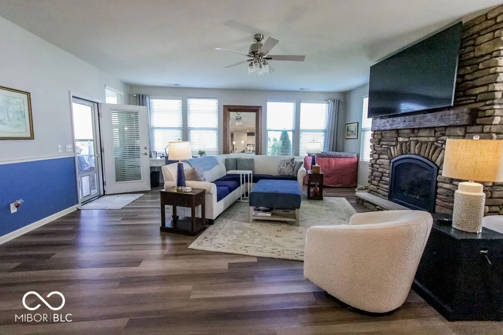 Enjoy the awesome Del Webb Lifestyle in this fabulous home on a premium lot, LOADED with luxury upgrades for the discriminating buyer. You are welcomed to this lovely home with a covered front porch and beautiful leaded glass entry door. The amazing open concept plan is an entertainer’s dream, perfect for gatherings of family and friends. The focal point of the great room is a dramatic floor to ceiling gas fireplace, custom designed by the owners. The cheerful kitchen features white cabinets, quartz counters, tile backsplash and gas range. The outdoor space is an amazing oasis! You might find yourself enjoying morning coffee, a good book or glass of wine on the wonderful screened porch with a durable and beautiful epoxy finish floor. You’ll appreciate the additional shade added with remote control blinds. Step out onto the huge decorative concrete patio with pergola, where you can relax, cook out and entertain, plus enjoy easy access to the community walking trail. And there’s more… You will marvel at all that the garage offers: it is insulated and fully finished, has a 4′ front extension, durable quality epoxy finish on the floor, and a ceiling hanging storage rack. Your lawn maintenance and snow removal are taken care of, so you’ll have plenty of time to enjoy the array of amenities, activities, clubs and special events that Britton Falls offers its residents.