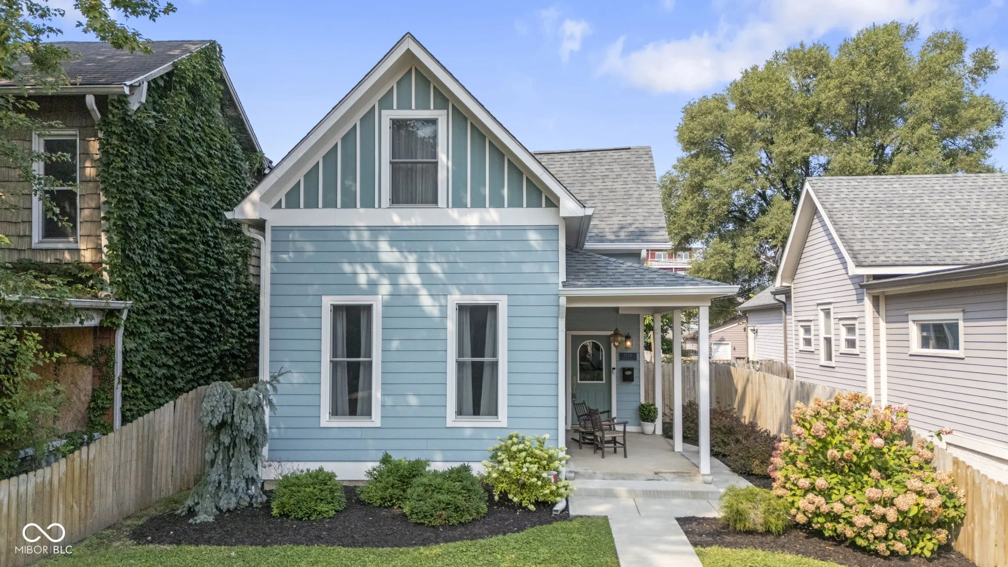 REIMAGINED FOUNTAIN SQUARE BEAUTY. Originally built in 1910 and thoughtfully reimagined in 2017 By HGTV’s Good Bones, this two-story home blends historic charm with modern design and convenience. A welcoming front porch, charming picket fence, and private side patio sets the tone for the warmth of this home. Inside, you’ll find laminated hardwood floors, tall windows, classic trim work, and stylish finishes. The open-concept main level is designed for entertaining and family, featuring a spacious living room, large dining area, and a chef’s kitchen with bar seating-perfectly balancing function and beauty. The main-level primary suite offers a walk-in closet and private ensuite bath for everyday comfort and convenience. The upper level contains a loft, three (3) generously sized bedrooms and a large hall bath, offering plenty of room for family and guests. With 4 bedrooms, 2.5 bathrooms, and a detached 2-car garage, this home delivers the ideal combination of historic character, modern updates, and urban living in one of Indianapolis’ most vibrant neighborhoods.