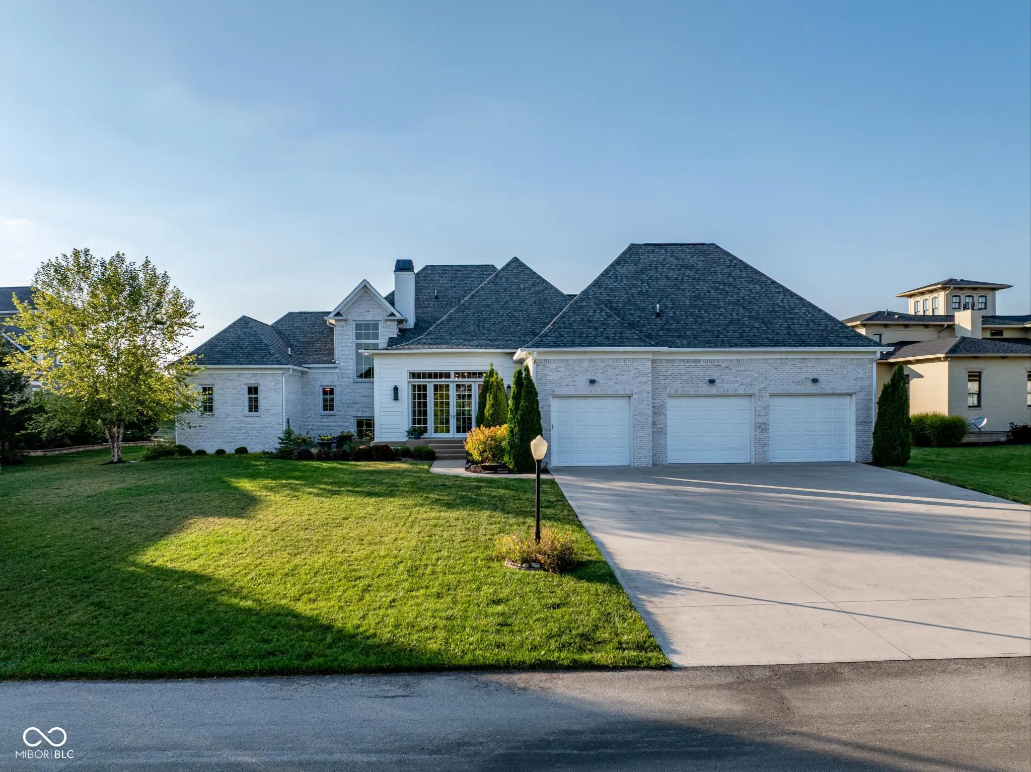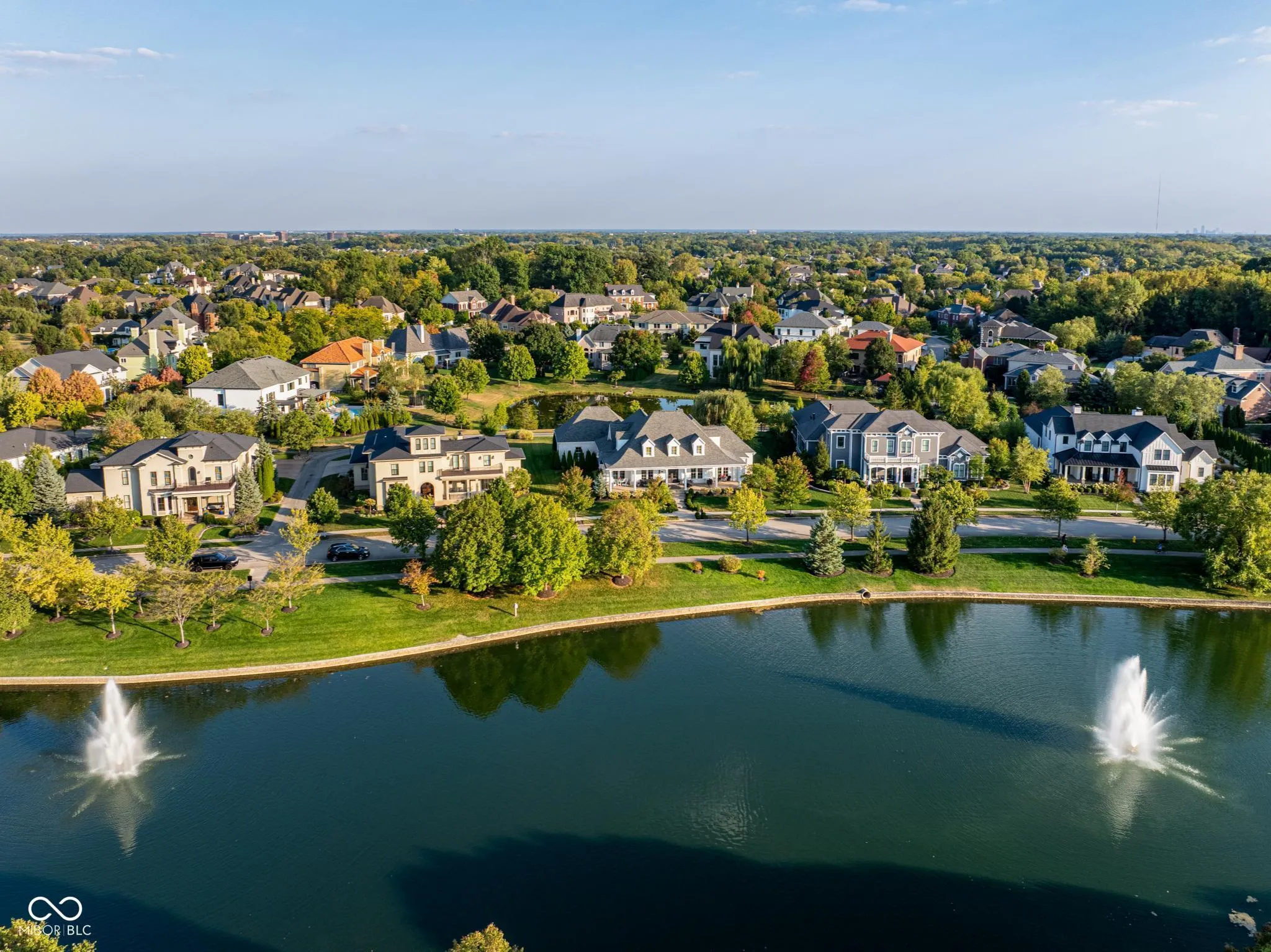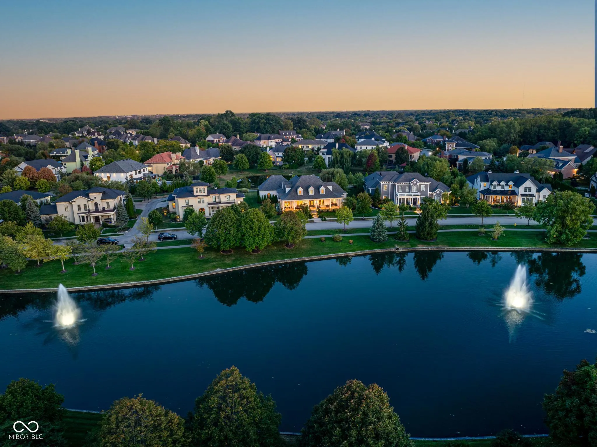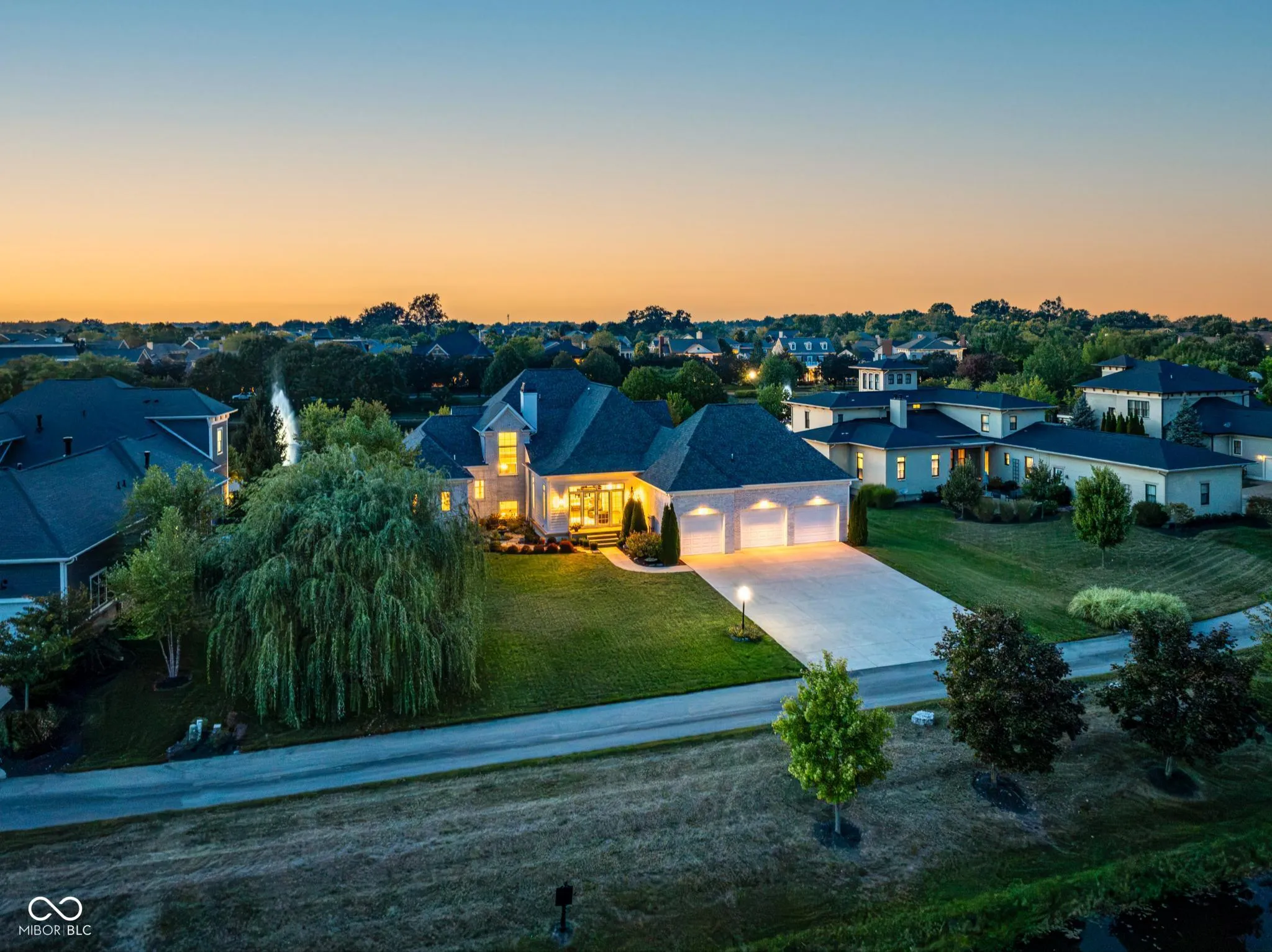 Welcome to 1887 Hourglass Drive. Built in 2016 by Williams Custom Art Builders, this gorgeous-one owner home in the desirable Village of WestClay offers 8,000+ sqft of thoughtfully designed living space, with 6 bedrooms & 4.5 bathrooms. The home sits on a prime .54-acre lot with rare north & south water views, creating a truly serene setting. The wide covered front porch provides multiple seating areas & space to relax while enjoying the views of Kew Pond & the sound of the fountains. Step through mahogany double doors into the foyer, where high ceilings, custom finishes, & designer lighting set the tone for the rest of the home. Cozy up to one of the 2 fireplaces found in both the formal living room or sun room. The main level primary suite offers water views & a luxurious bathroom with Carerra marble counters, jetted tub, oversized shower, & a dedicated vanity area. The gourmet kitchen impresses with a large, white veined Carerra marble center island, custom steel range hood, wet bar with wine refrigerator, breakfast nook, & adjoining formal dining room with water views-perfect for gatherings. Upstairs, 3 spacious bedrooms & 2 full baths provide comfort for family & guests, while a large attic offers excellent storage or the option to finish for additional living space.The finished lower level embraces an industrial-chic aesthetic with exposed brick, open ceilings, & a loft style atmosphere, ideal for recreation, a theater, or creative studio. 2 additional bedrooms, full bath, & a storage/utility room with private stair access to the garage complete this level. The oversized 3+ car, rear-load garage includes epoxy flooring & a utility sink. Additional highlights throughout the home include a Generac whole home generator, Hunter Douglas motorized shades, custom railings, luxury finishes, draperies, wall coverings, & stylish wall sconces. Enjoy front to back water views, peaceful fountain sounds, & all the wonderful amenities the Village of WestClay has to offer.