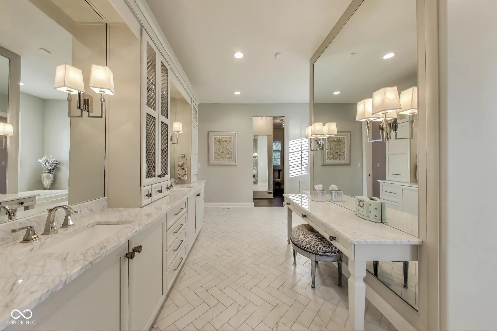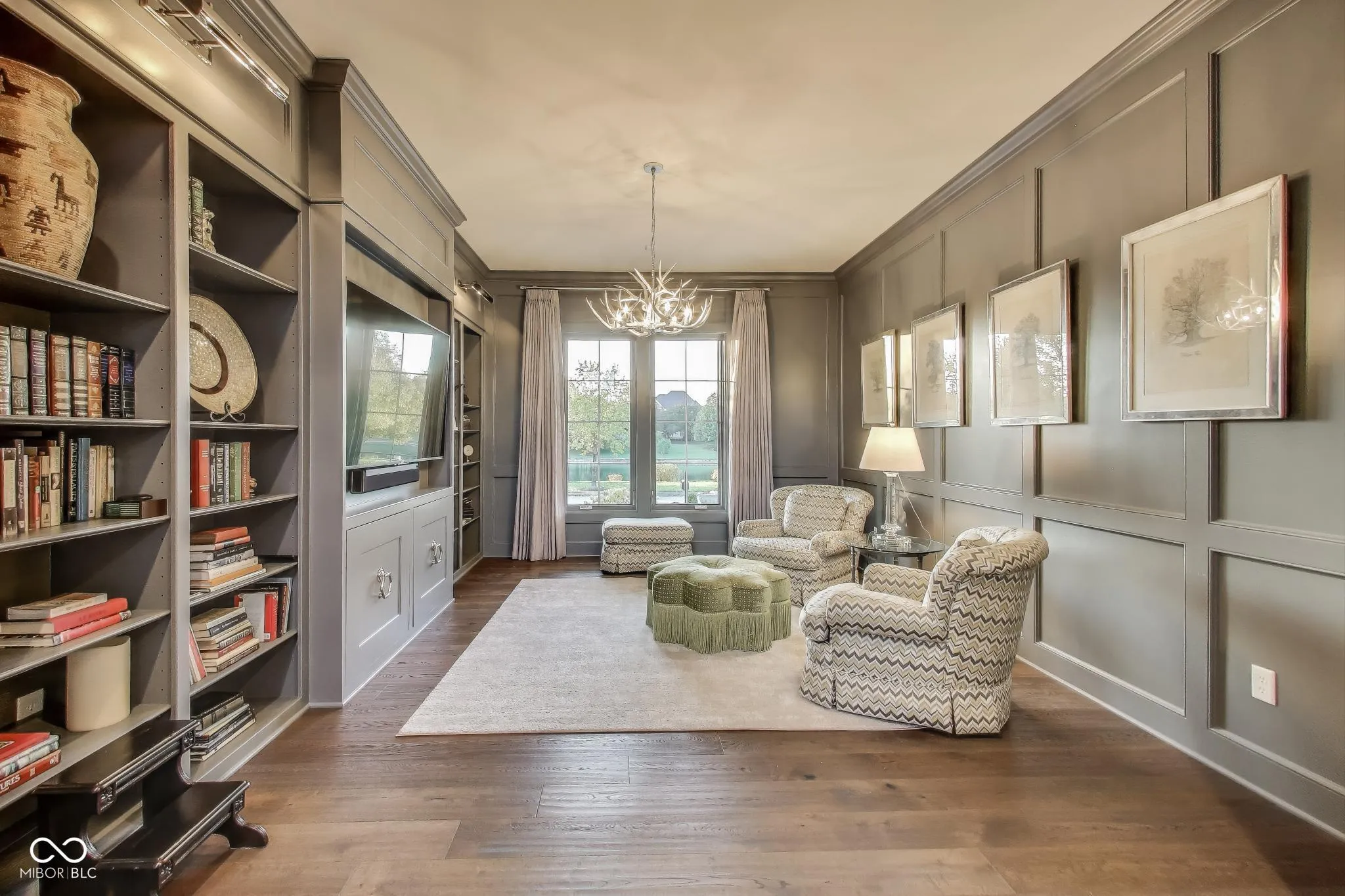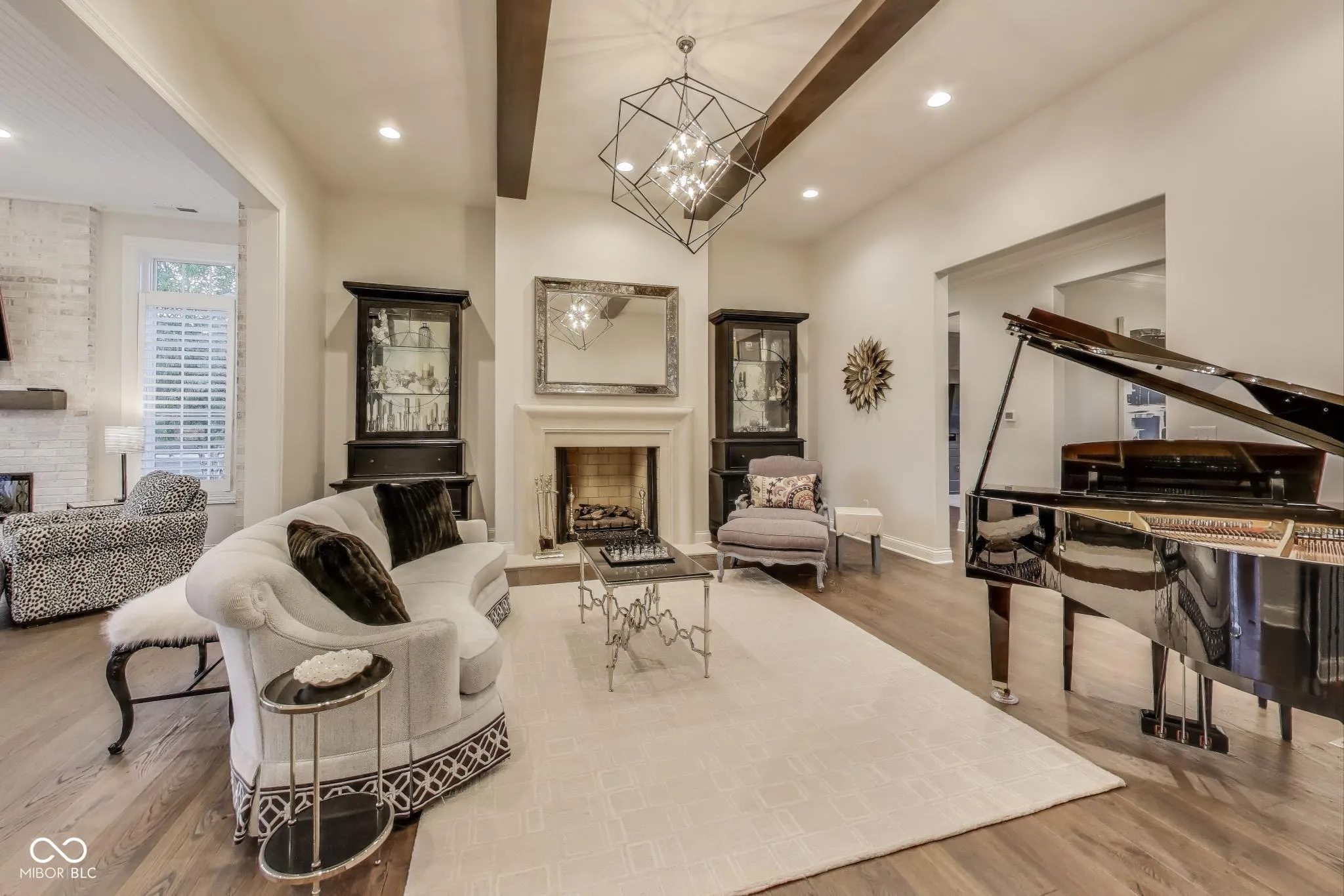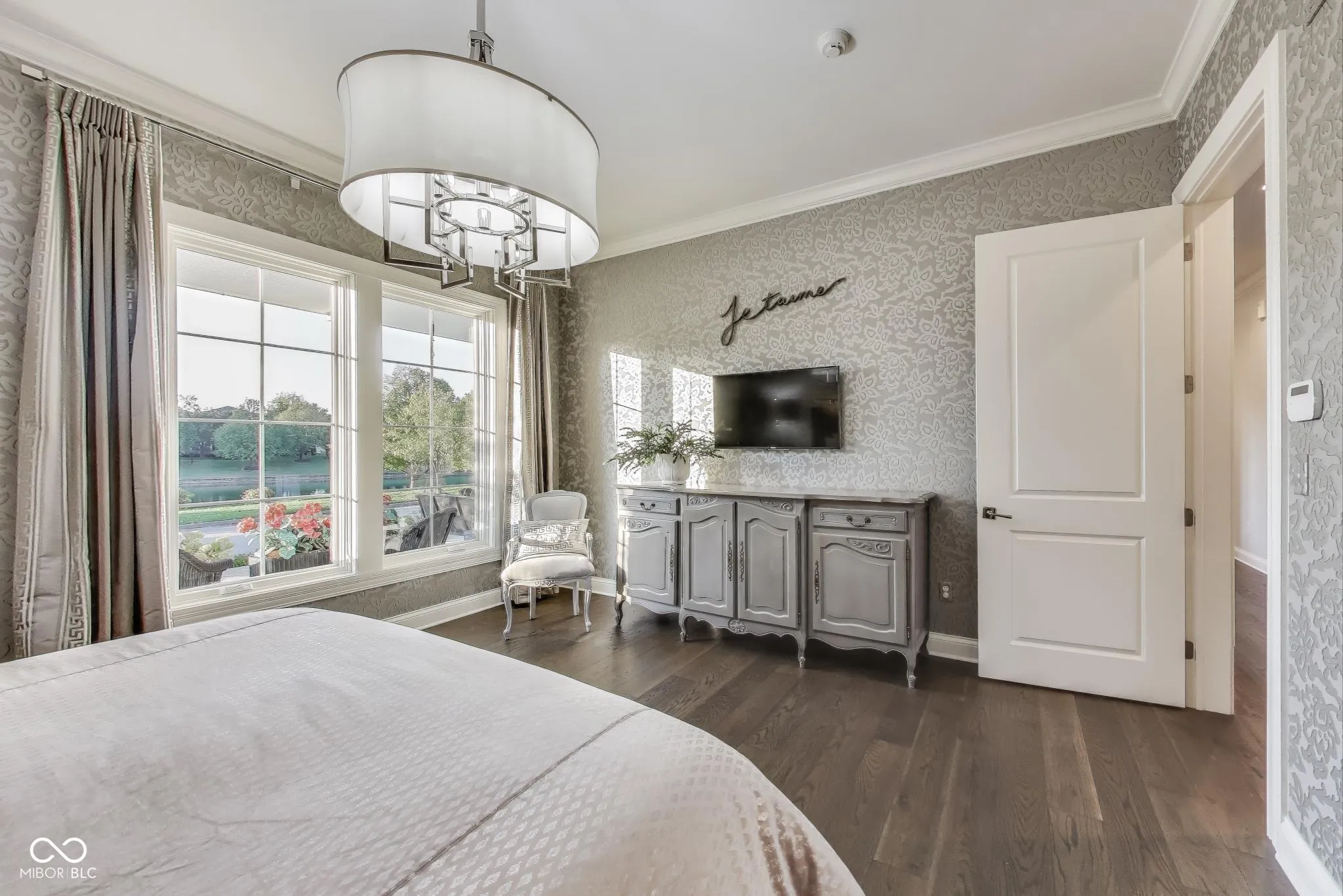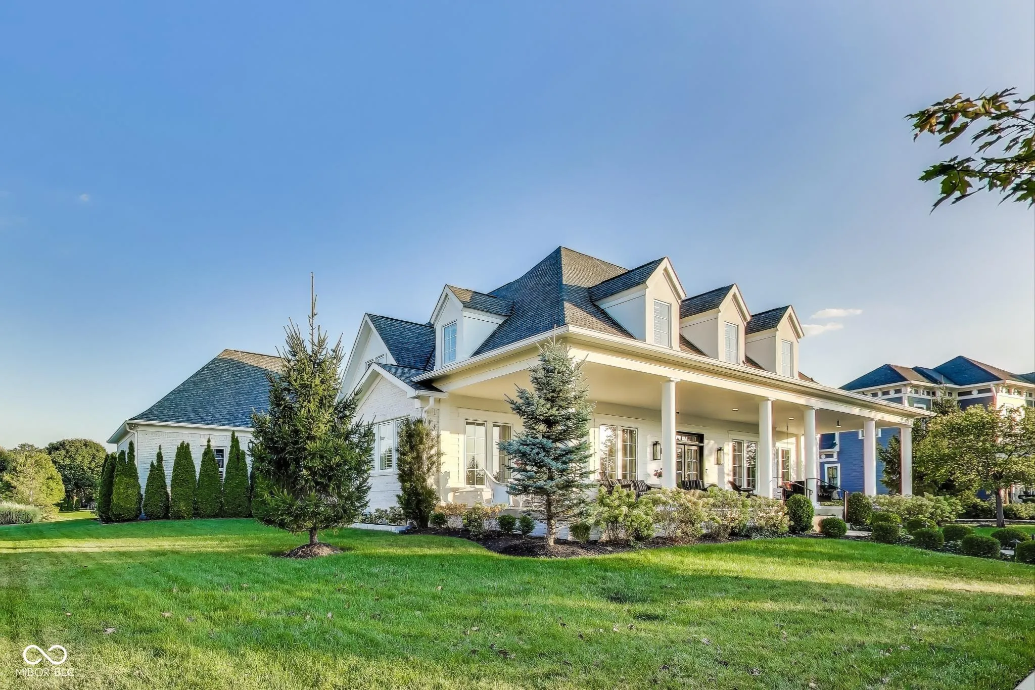 Welcome to 1887 Hourglass Drive. Built in 2016 by Williams Custom Art Builders, this gorgeous-one owner home in the desirable Village of WestClay offers 8,000+ sqft of thoughtfully designed living space, with 6 bedrooms & 4.5 bathrooms. The home sits on a prime .54-acre lot with rare north & south water views, creating a truly serene setting. The wide covered front porch provides multiple seating areas & space to relax while enjoying the views of Kew Pond & the sound of the fountains. Step through mahogany double doors into the foyer, where high ceilings, custom finishes, & designer lighting set the tone for the rest of the home. Cozy up to one of the 2 fireplaces found in both the formal living room or sun room. The main level primary suite offers water views & a luxurious bathroom with Carerra marble counters, jetted tub, oversized shower, & a dedicated vanity area. The gourmet kitchen impresses with a large, white veined Carerra marble center island, custom steel range hood, wet bar with wine refrigerator, breakfast nook, & adjoining formal dining room with water views-perfect for gatherings. Upstairs, 3 spacious bedrooms & 2 full baths provide comfort for family & guests, while a large attic offers excellent storage or the option to finish for additional living space.The finished lower level embraces an industrial-chic aesthetic with exposed brick, open ceilings, & a loft style atmosphere, ideal for recreation, a theater, or creative studio. 2 additional bedrooms, full bath, & a storage/utility room with private stair access to the garage complete this level. The oversized 3+ car, rear-load garage includes epoxy flooring & a utility sink. Additional highlights throughout the home include a Generac whole home generator, Hunter Douglas motorized shades, custom railings, luxury finishes, draperies, wall coverings, & stylish wall sconces. Enjoy front to back water views, peaceful fountain sounds, & all the wonderful amenities the Village of WestClay has to offer.