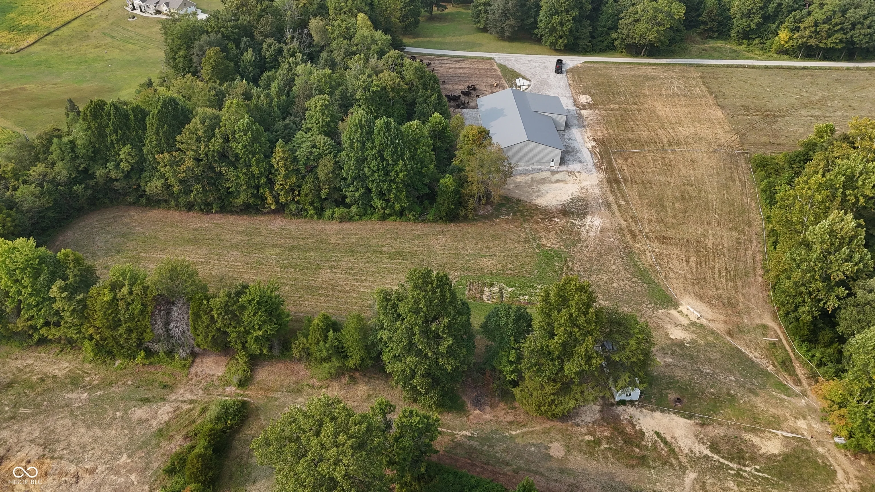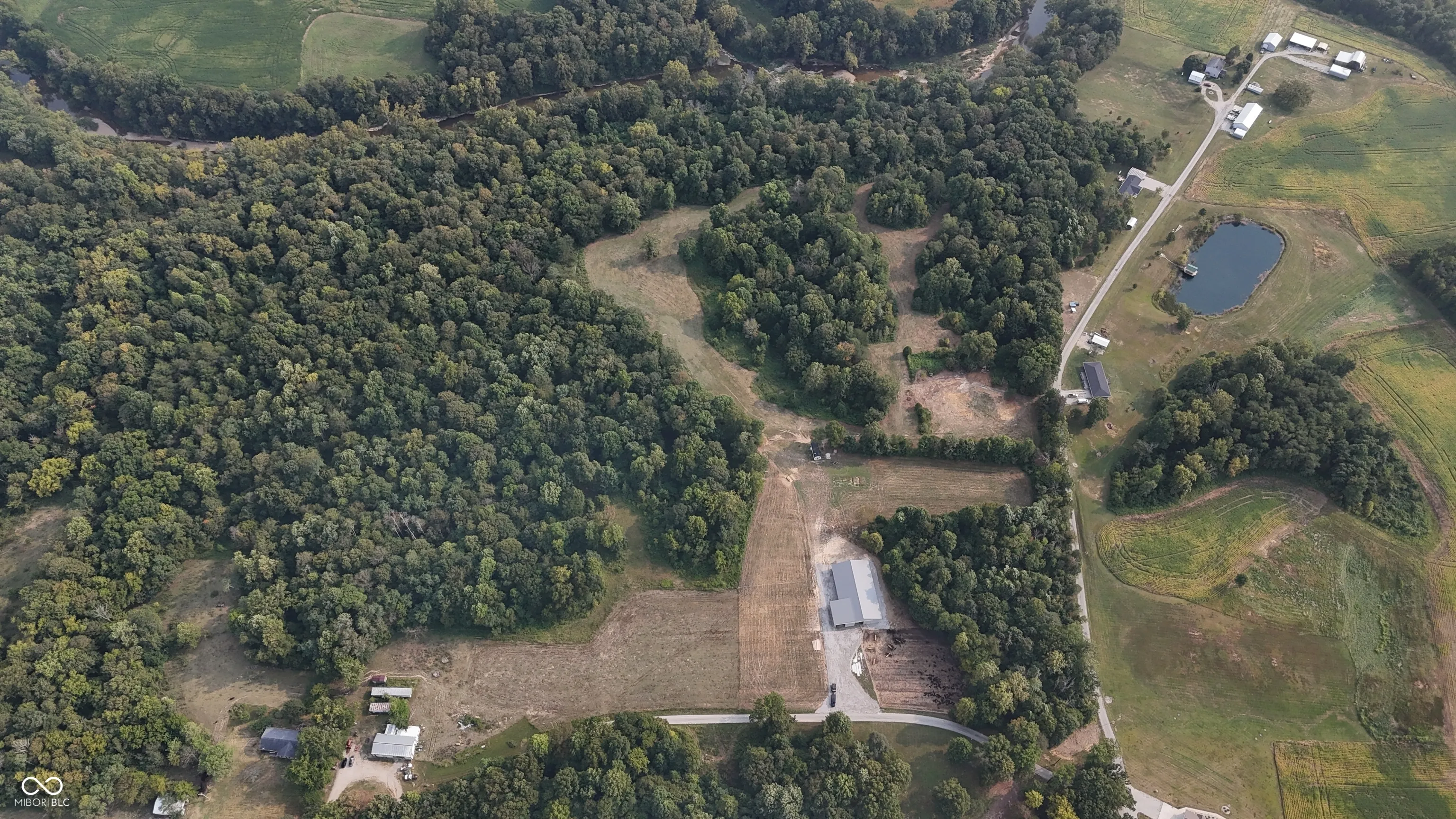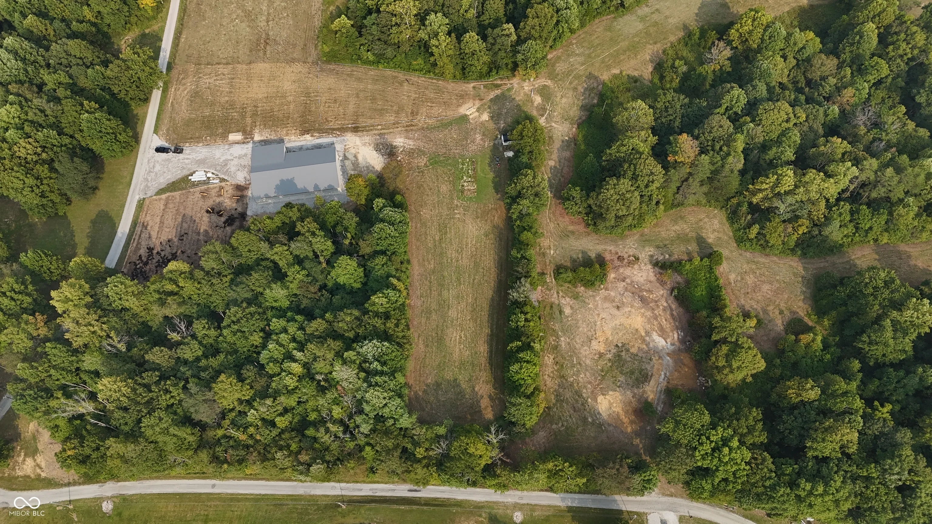 This 30 acre property in Jefferson County, Indiana, offers a versatile mix of open ground, wooded acreage, and creek frontage, with features that make it suitable for multiple uses. Located near Deputy and positioned between Madison and Interstate 65, the land combines convenience with a rural setting. The tract includes approximately 1,000 feet of road frontage with public water already on site and electric available at the road. A newly constructed pole barn measuring 100 by 60 feet anchors the property and is surrounded by a large gravel pad, creating an excellent foundation for agricultural or storage purposes. Approximately 4 acres of open pasture are currently maintained and mowed, while the balance of the acreage is wooded. This combination supports both agricultural activity and recreational opportunities, including hunting. The south boundary includes roughly 930 feet of Big Creek, a year-round waterway that adds both natural beauty and a water source for wildlife or livestock. The land is currently operated as a cattle farm but is adaptable to other livestock or could be transitioned into a rural homesite. Multiple buildable sites are available across the property, providing flexibility for residential construction. The property will be offered as a whole (30.001 acres) or in two divisions. Tract 1 consists of approximately 6 acres and includes the barn and associated improvements. Tract 2 consists of approximately 24 acres and has its own frontage and access along the west side of the property. Nearby amenities are easily accessible, with Madison located approximately 15 miles southeast and offering dining, groceries, and shopping. Hardy Lake, about 12 miles north, provides boating, fishing, and additional recreation opportunities. The property’s location also allows efficient travel north or south via Interstate 65, situated roughly 12 miles west.