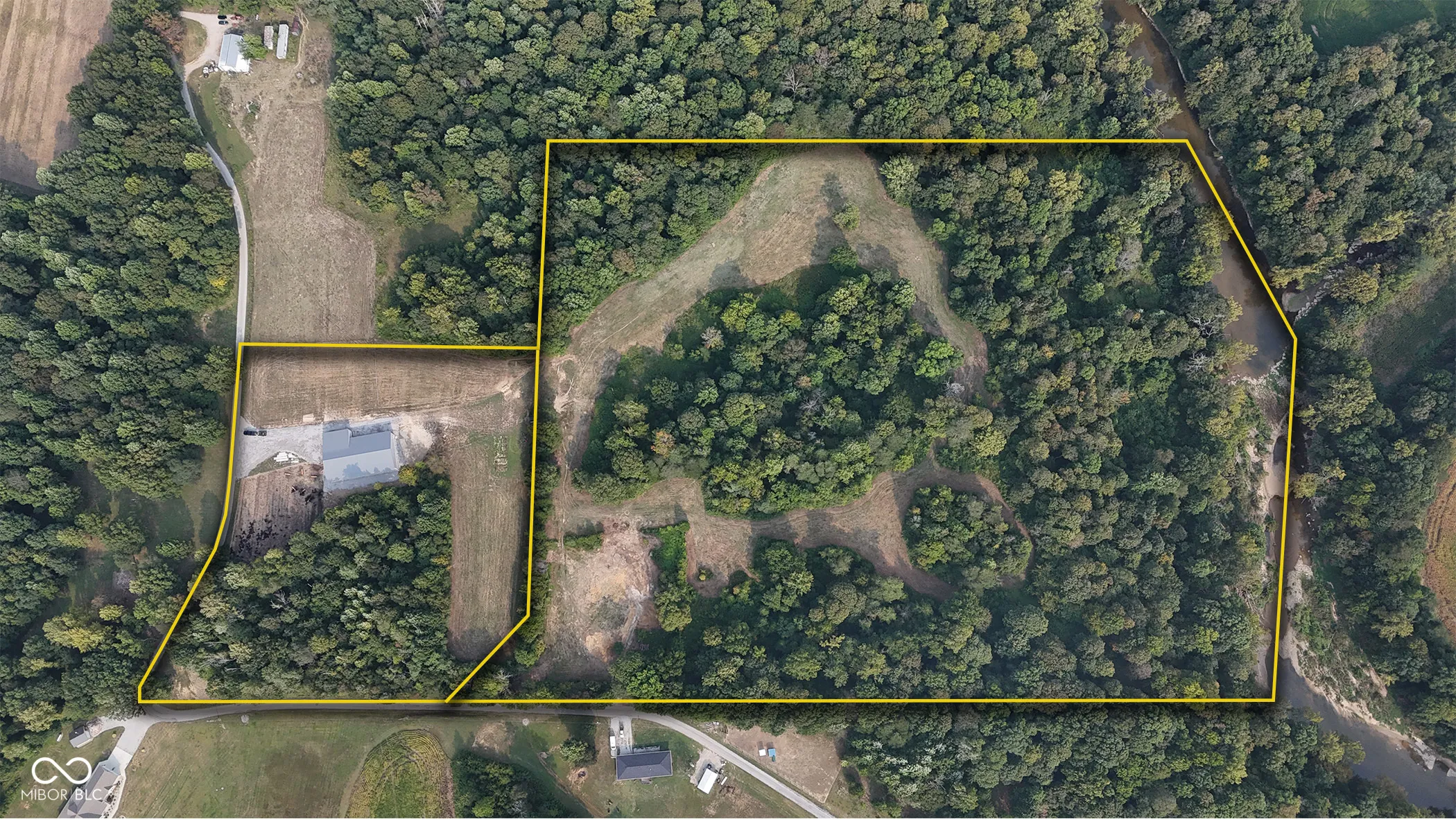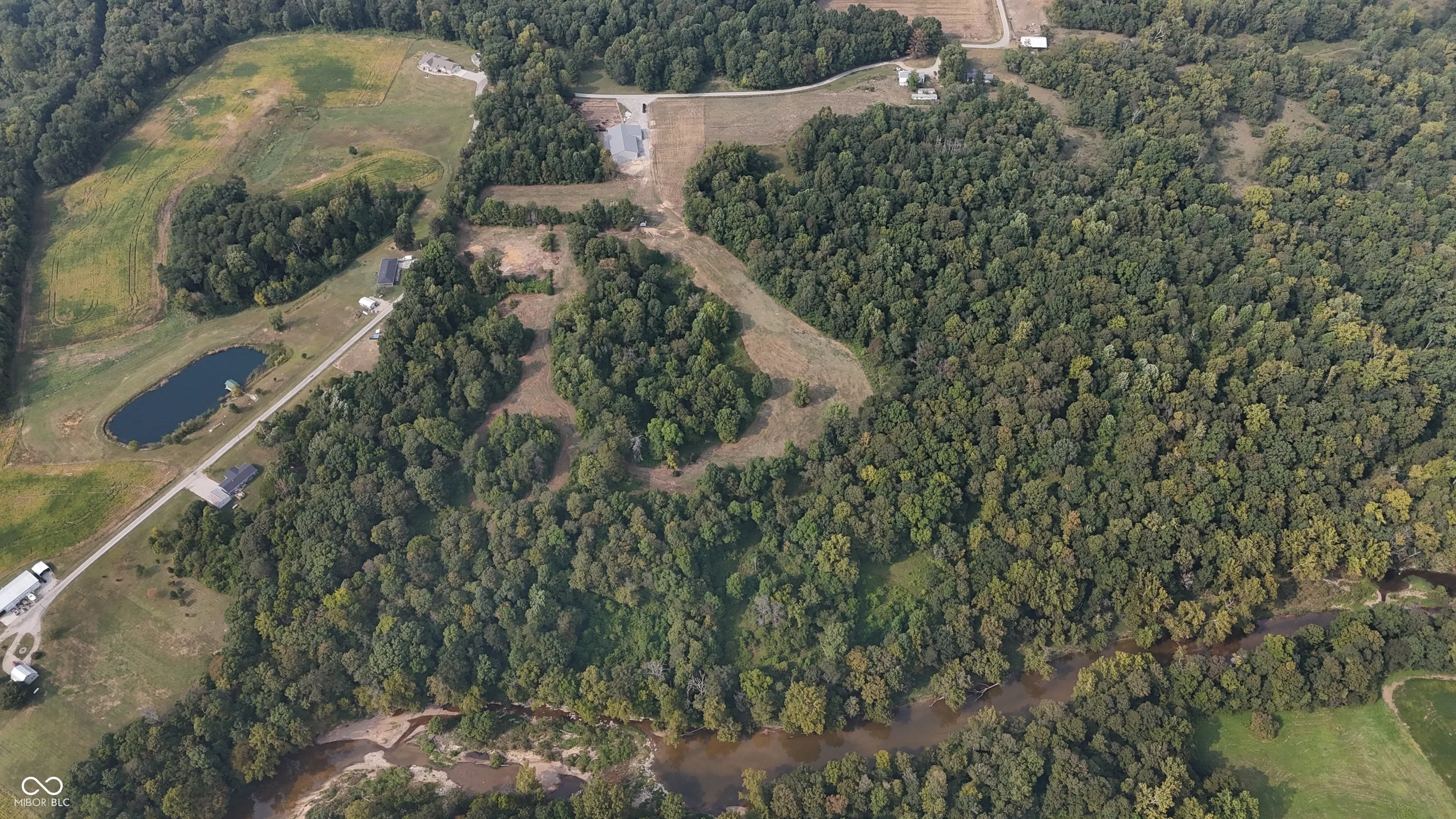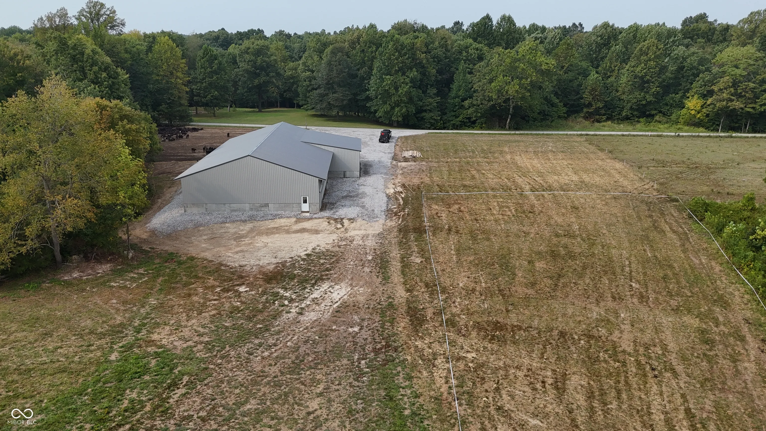 This 30 acre property in Jefferson County, Indiana, offers a versatile mix of open ground, wooded acreage, and creek frontage, with features that make it suitable for multiple uses. Located near Deputy and positioned between Madison and Interstate 65, the land combines convenience with a rural setting. The tract includes approximately 1,000 feet of road frontage with public water already on site and electric available at the road. A newly constructed pole barn measuring 100 by 60 feet anchors the property and is surrounded by a large gravel pad, creating an excellent foundation for agricultural or storage purposes. Approximately 4 acres of open pasture are currently maintained and mowed, while the balance of the acreage is wooded. This combination supports both agricultural activity and recreational opportunities, including hunting. The south boundary includes roughly 930 feet of Big Creek, a year-round waterway that adds both natural beauty and a water source for wildlife or livestock. The land is currently operated as a cattle farm but is adaptable to other livestock or could be transitioned into a rural homesite. Multiple buildable sites are available across the property, providing flexibility for residential construction. The property will be offered as a whole (30.001 acres) or in two divisions. Tract 1 consists of approximately 6 acres and includes the barn and associated improvements. Tract 2 consists of approximately 24 acres and has its own frontage and access along the west side of the property. Nearby amenities are easily accessible, with Madison located approximately 15 miles southeast and offering dining, groceries, and shopping. Hardy Lake, about 12 miles north, provides boating, fishing, and additional recreation opportunities. The property’s location also allows efficient travel north or south via Interstate 65, situated roughly 12 miles west.
