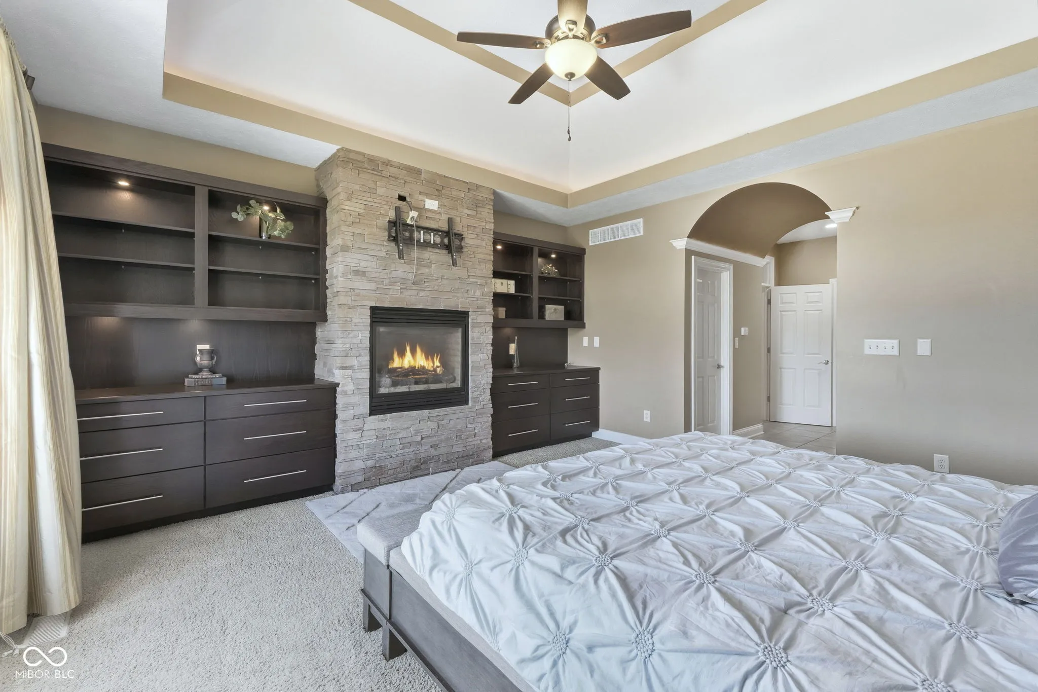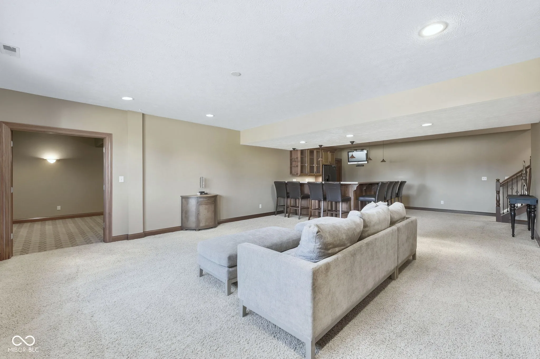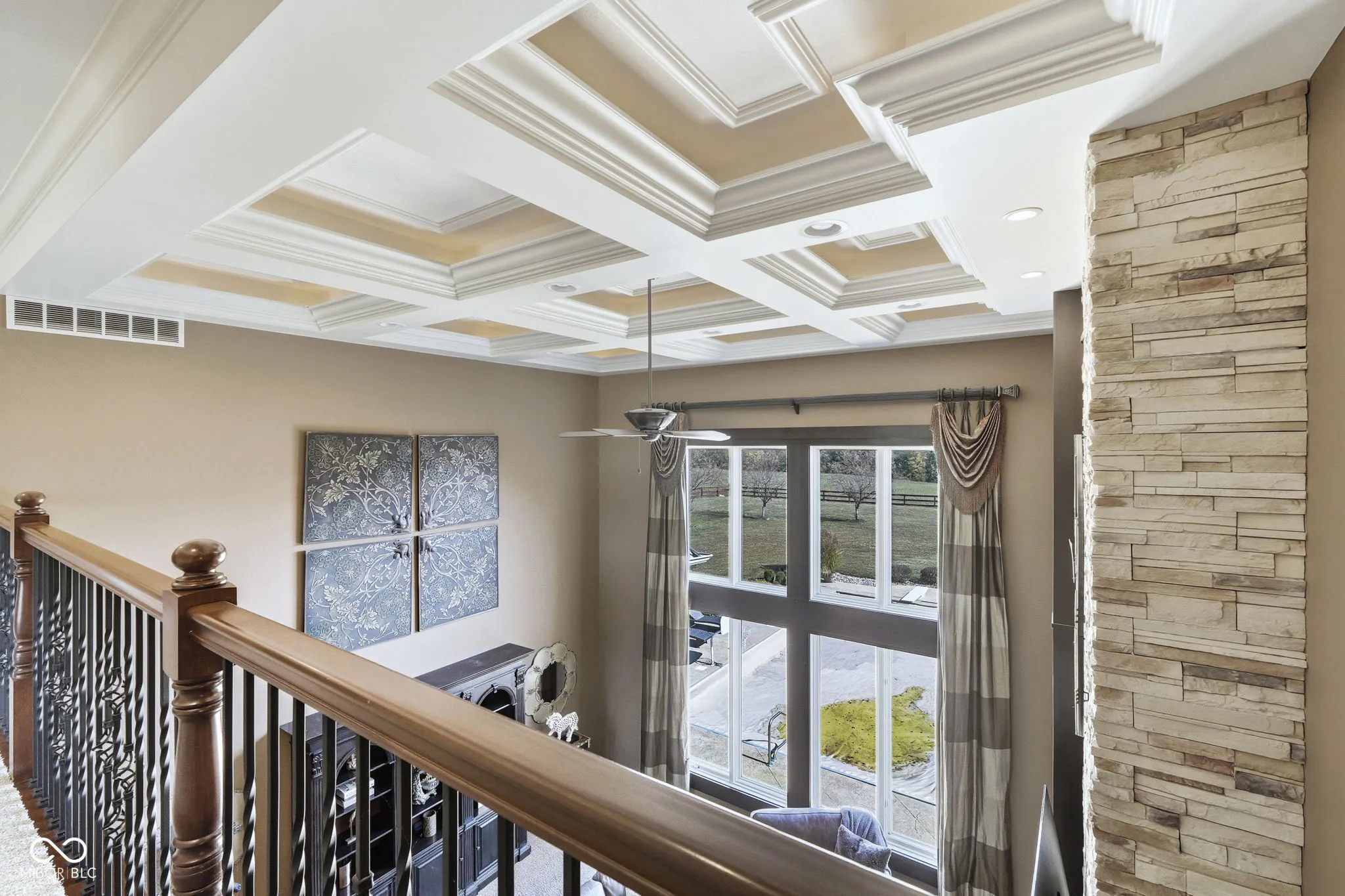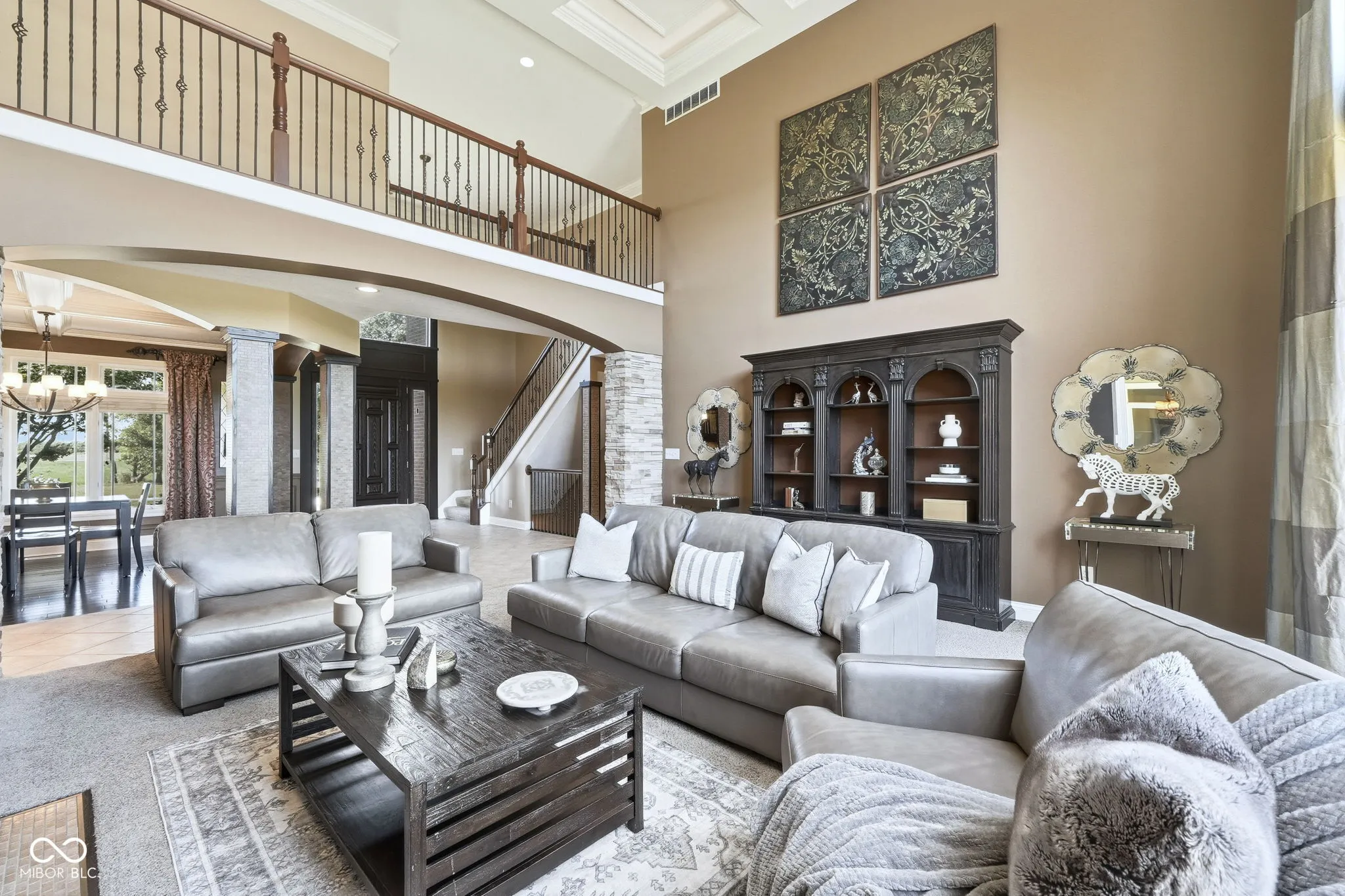 Welcome to 7590 S 25 E, a stunning executive estate offering over 10,000 square feet of luxury living on more than 10 acres in the peaceful Pendleton countryside. Built in 2002, this custom home was designed with both elegance and comfort in mind, featuring exceptional craftsmanship and an array of resort-style amenities. The grand two-story foyer sets the tone, leading into the great room with cathedral ceilings, a wall of windows overlooking the property, and a dramatic double-sided stone fireplace. The gourmet kitchen is a chef’s dream with granite counters, a center island, breakfast bar, walk-in pantry, and custom finishes, opening to a hearth room with its own fireplace. Formal dining and gathering areas provide the perfect setting for entertaining. The main-level owner’s retreat is a true sanctuary, highlighted by tray ceilings, a stone fireplace, a huge custom walk-in closet with center island, and a spa-inspired bath with dual vanities, soaking tub, and walk-in shower. Upstairs offers three spacious bedrooms, each with walk-in closets and private baths, plus a large bonus room. The fully finished lower level is designed for fun and entertainment with a second kitchen and bar, home theater, family spaces, guest bedroom, and full bath. One of the best features is the indoor basketball court. Step outside to enjoy your private outdoor oasis featuring a covered patio with entertainment, full outdoor kitchen with tiled bar, and a heated in-ground pool with an electric cover and basketball goal. Partial area of the 10+ acreage is fenced for convenience, while the expansive garages provide space for up to seven vehicles and abundant storage. This property offers the rare combination of privacy, luxury, and recreation, all while being conveniently located near schools, services, and the charm of Pendleton. Truly a one-of-a-kind country estate built for living and entertaining at the highest level.