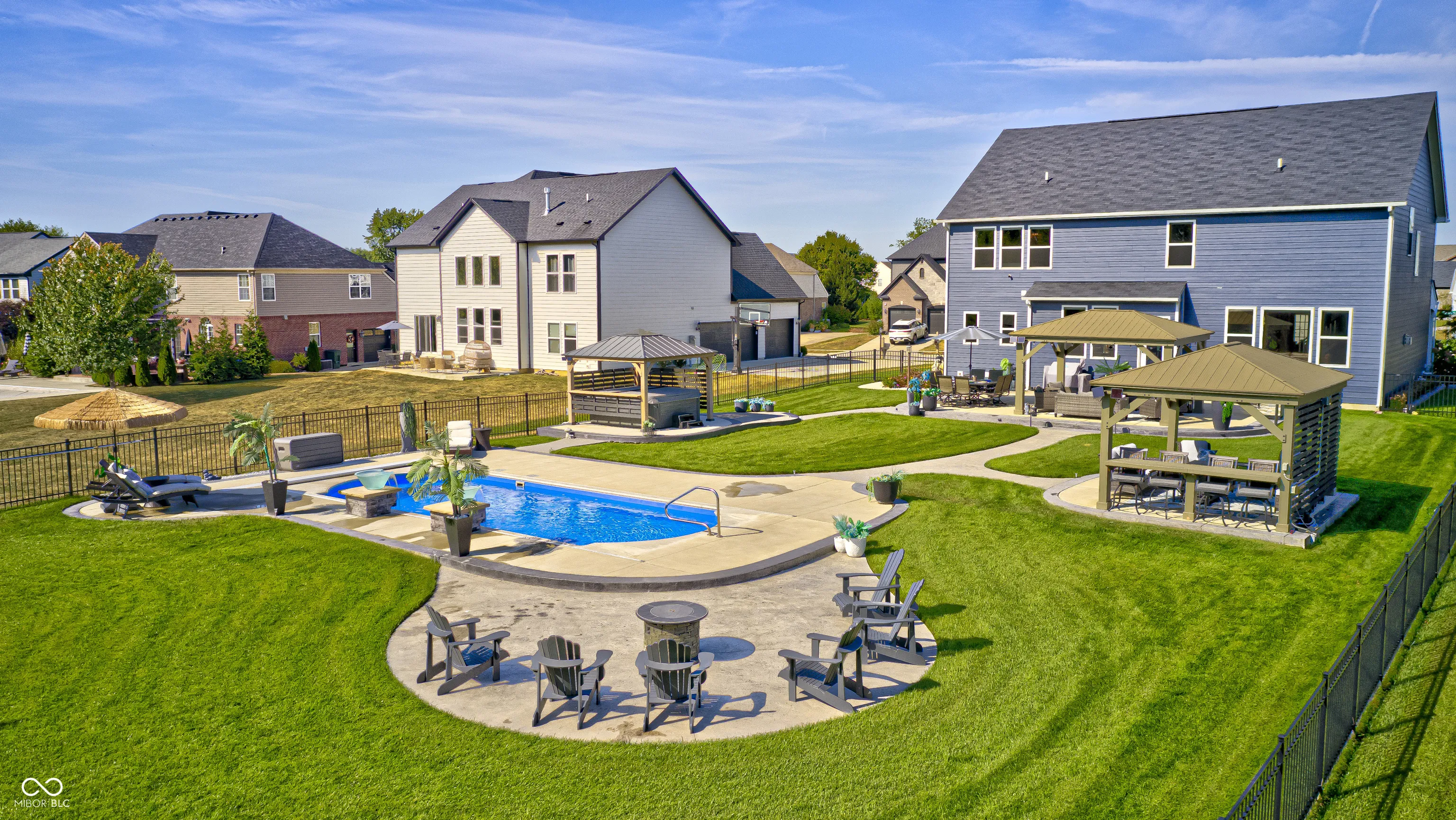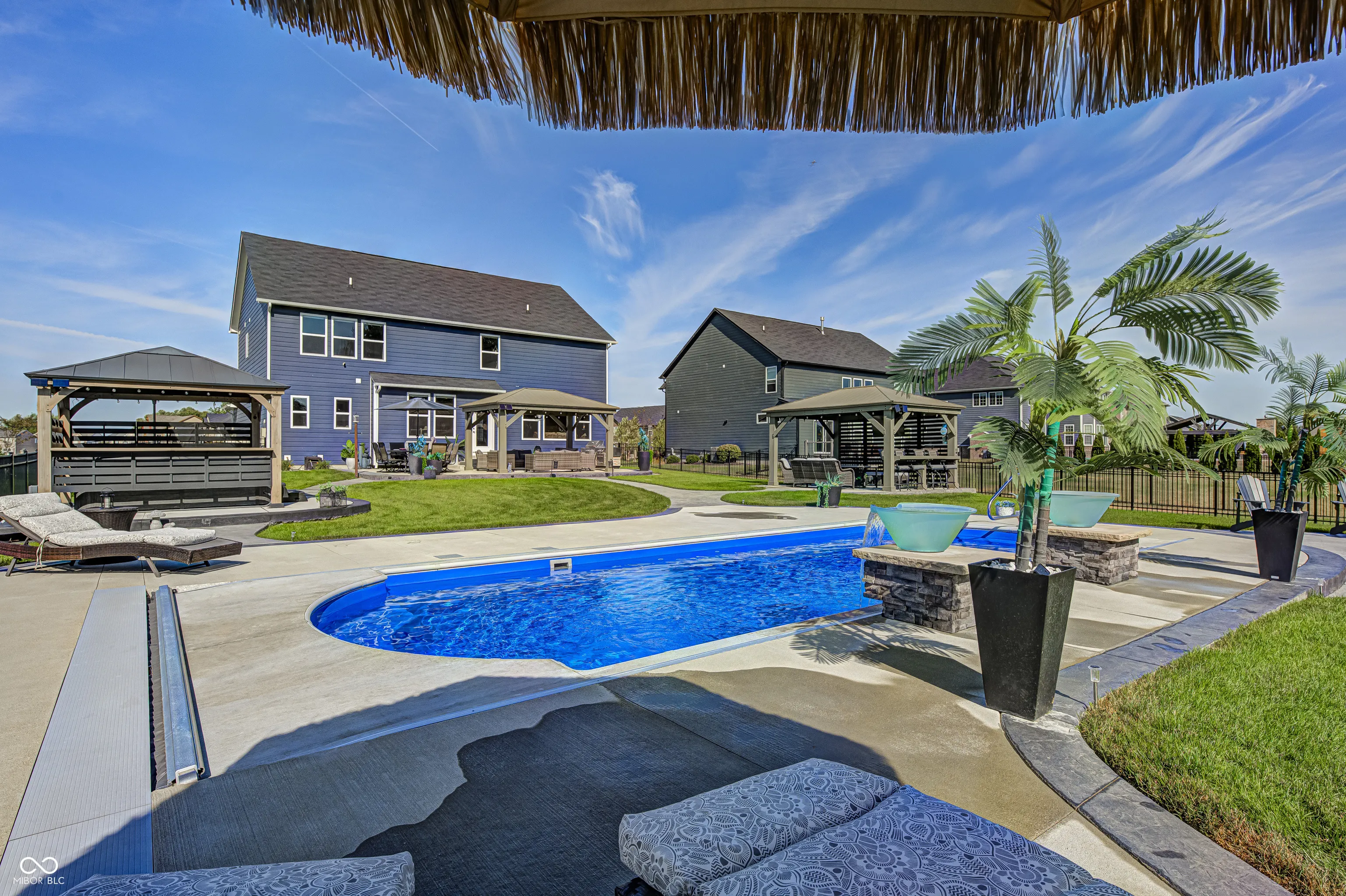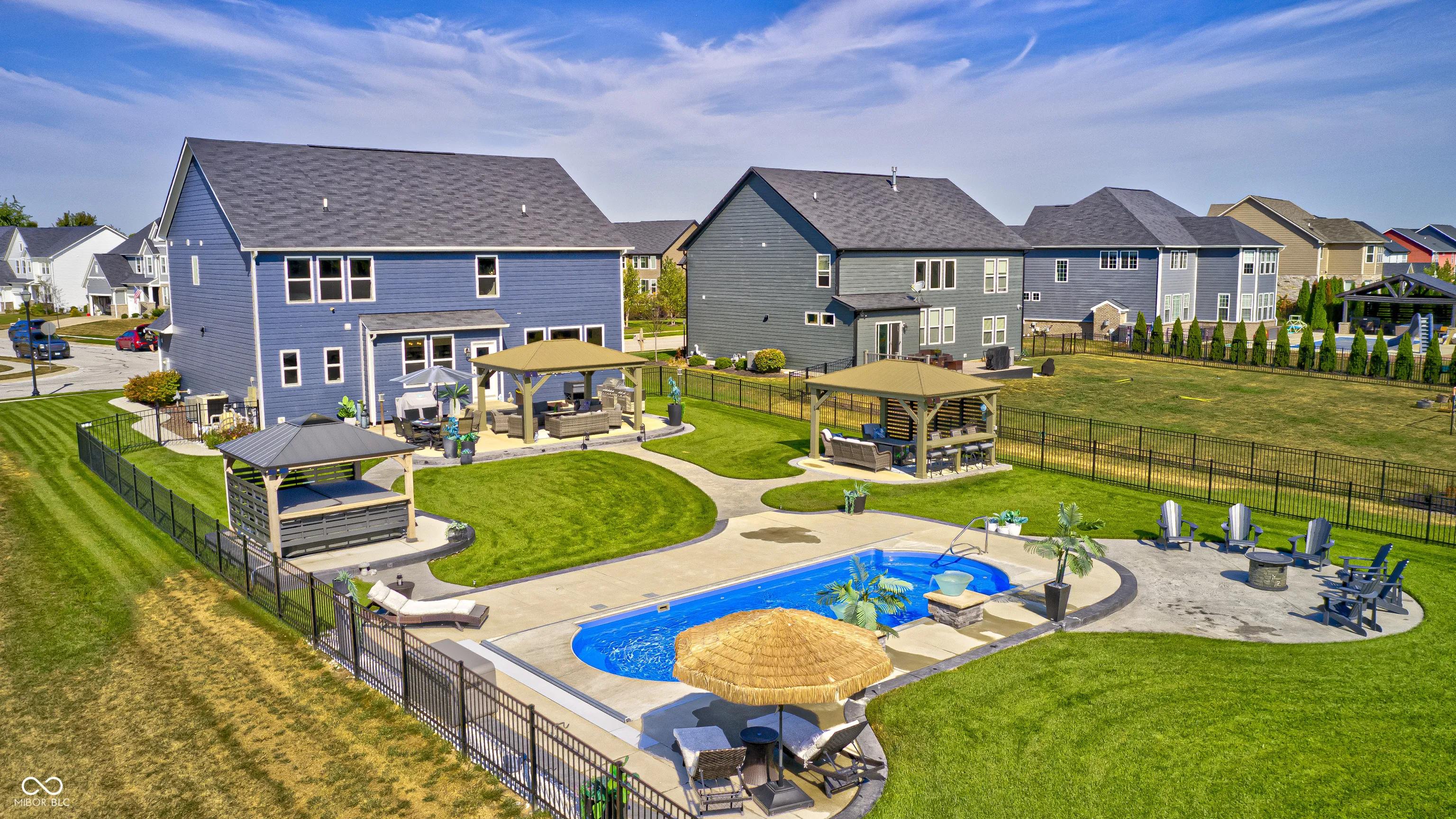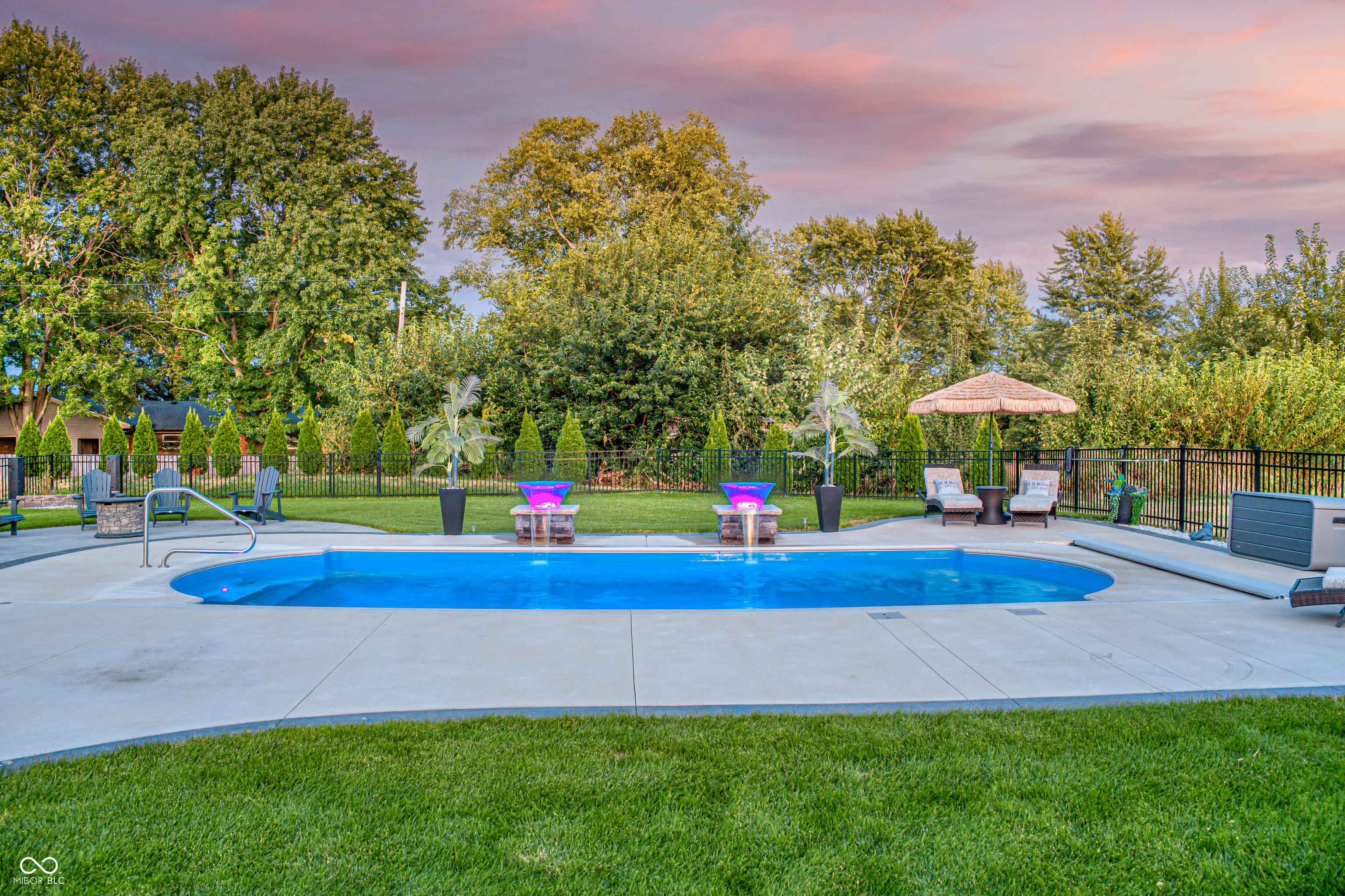 Picture this; 2245 Meadow Creek, Avon, IN – not just an address, but a launchpad to the lifestyle you’ve been dreaming of, nestled in a beautifully designed home, that’s grinning with good looks, modern upgrades all in perfect condition! The heart of the home is a spacious gourmet kitchen featuring stone countertops, white shaker cabinets, and long inviting wood-wrapped island. All premium stainless steel appliances. Seamless flow into the open dining and living areas is perfect for entertaining or everyday living. The primary suite offers a true spa-like bath showcasing dual sinks with a makeup vanity, a perfect size walk-in shower, and a generous walk-in closet. All bedrooms enjoy walk-in closts! This full basement is a perfect game day retreat, a custom wet bar, pool table and generous TV viewing area boasts endless possibilities for hosting or relaxation. A possible 5th bedroom is currently being used as a private poker room! A shower can be added to the roomy half bath. Step outside and it will take your breathe away! The spacious backyard is complete with three pergolas, including one with full electricity & mounted TV. The resort-style pool is equipped with both heating and cooling features!!! Turn the pool lights & fountain bowls on & off or select lighting colors all with wireless app control from your phone! Seller installed the automatic pool cover & premium pool equipment. Wireless control is also included with the irrigation system to keep your yard lush and green. Ideally located in a sought-after community, this home offers both privacy and convenience, with nearby shopping, dining, and top-rated schools just minutes away.