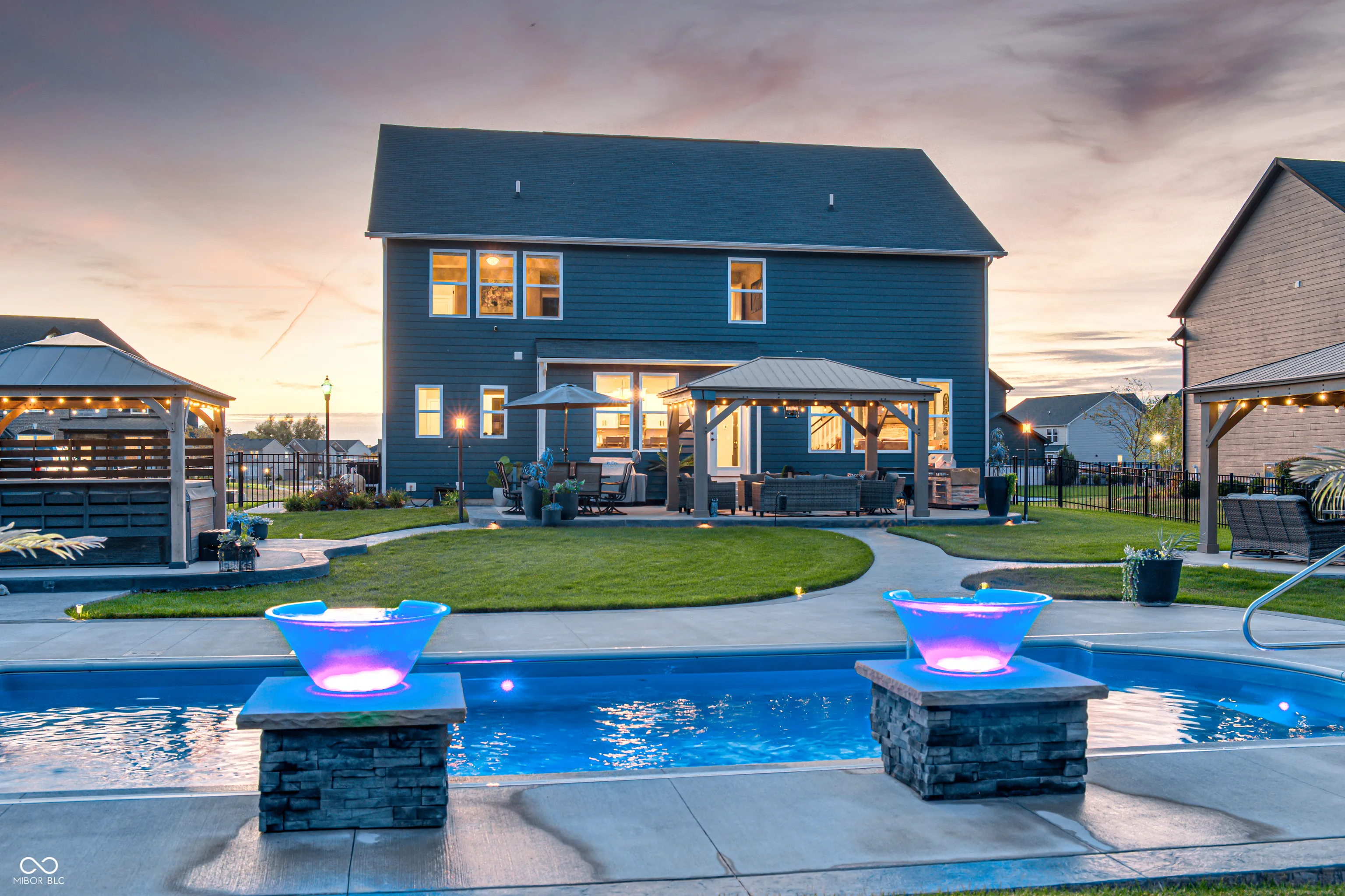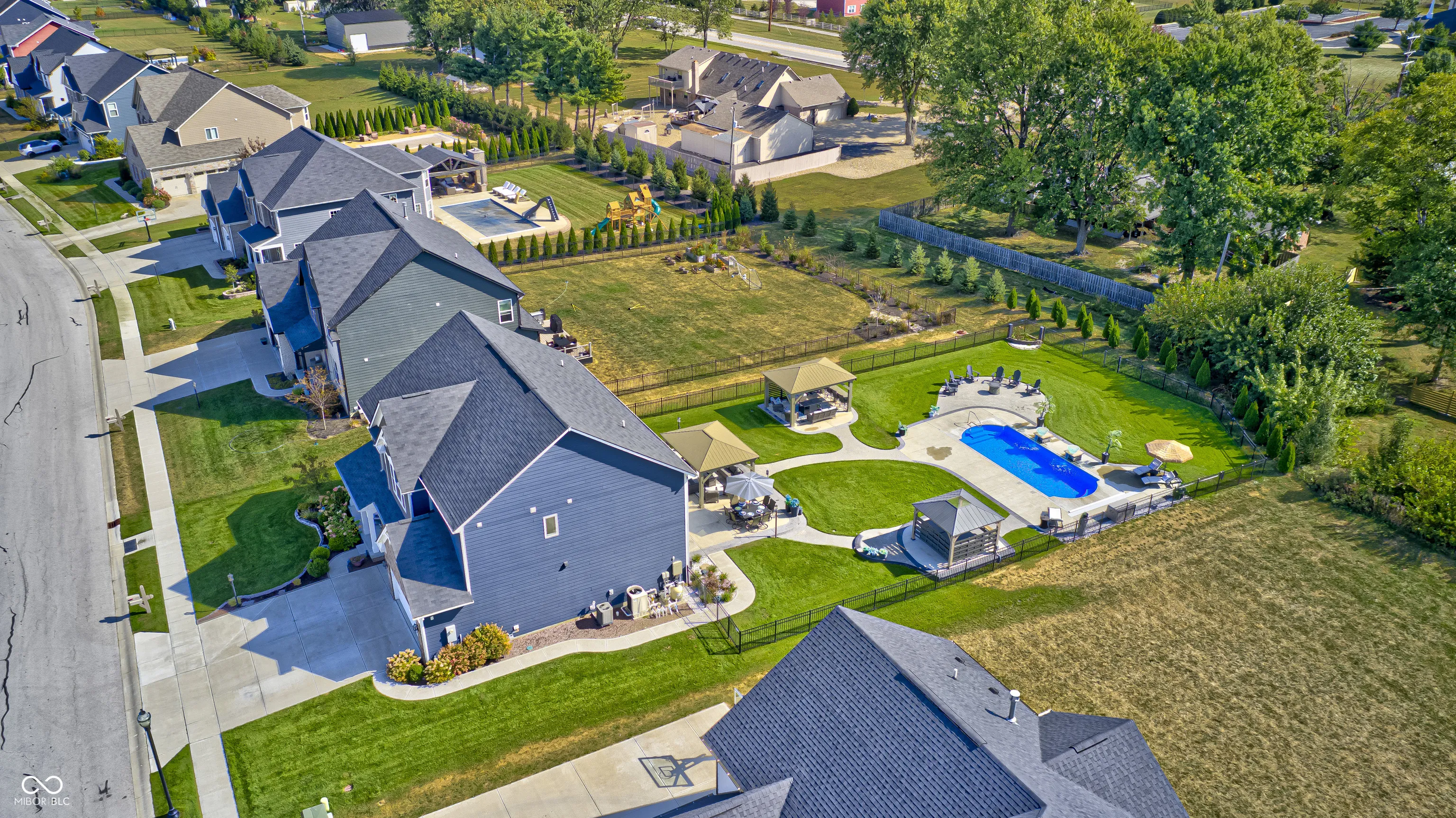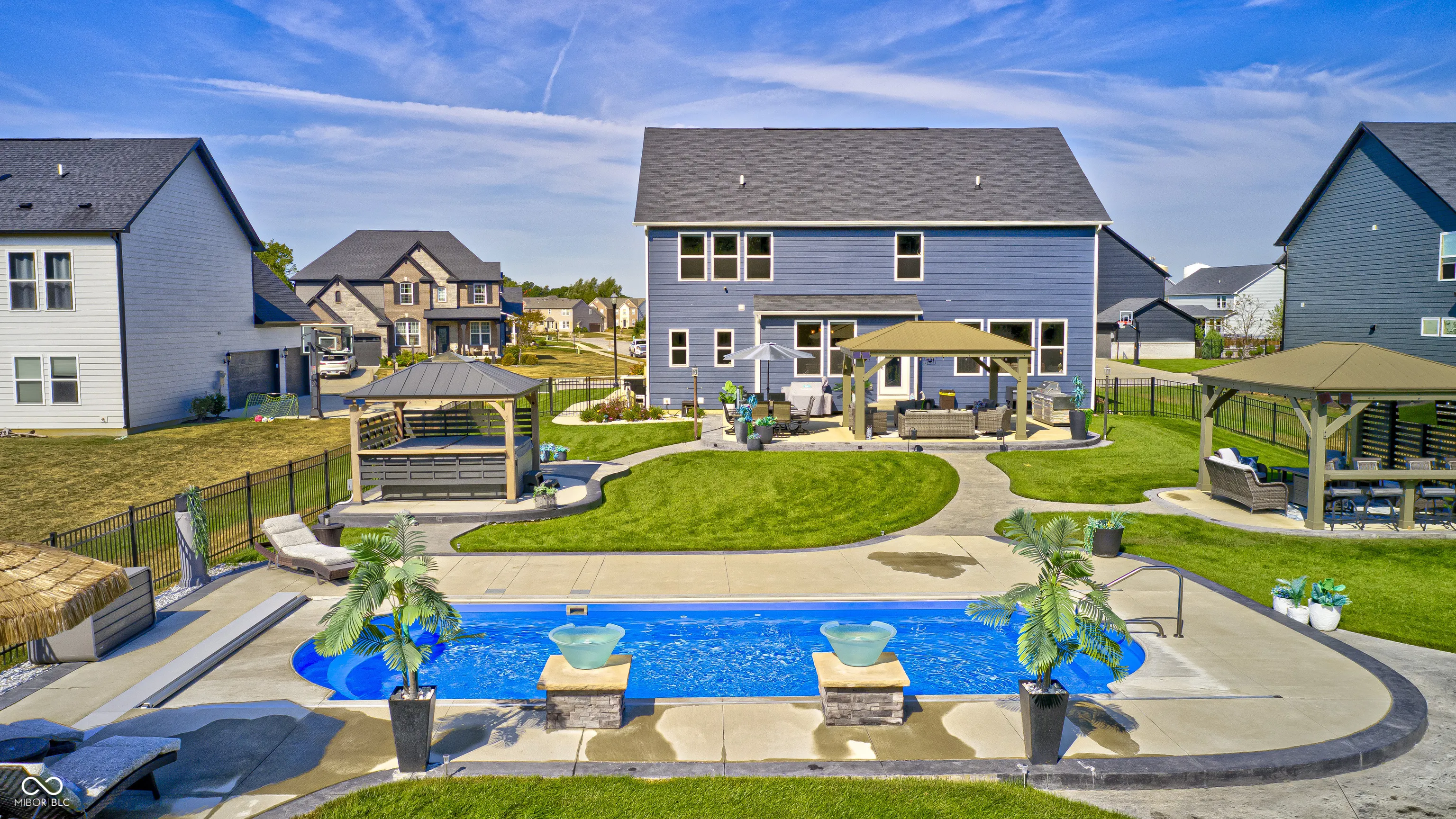 Picture this; 2245 Meadow Creek, Avon, IN – not just an address, but a launchpad to the lifestyle you’ve been dreaming of, nestled in a beautifully designed home, that’s grinning with good looks, modern upgrades all in perfect condition! The heart of the home is a spacious gourmet kitchen featuring stone countertops, white shaker cabinets, and long inviting wood-wrapped island. All premium stainless steel appliances. Seamless flow into the open dining and living areas is perfect for entertaining or everyday living. The primary suite offers a true spa-like bath showcasing dual sinks with a makeup vanity, a perfect size walk-in shower, and a generous walk-in closet. All bedrooms enjoy walk-in closts! This full basement is a perfect game day retreat, a custom wet bar, pool table and generous TV viewing area boasts endless possibilities for hosting or relaxation. A possible 5th bedroom is currently being used as a private poker room! A shower can be added to the roomy half bath. Step outside and it will take your breathe away! The spacious backyard is complete with three pergolas, including one with full electricity & mounted TV. The resort-style pool is equipped with both heating and cooling features!!! Turn the pool lights & fountain bowls on & off or select lighting colors all with wireless app control from your phone! Seller installed the automatic pool cover & premium pool equipment. Wireless control is also included with the irrigation system to keep your yard lush and green. Ideally located in a sought-after community, this home offers both privacy and convenience, with nearby shopping, dining, and top-rated schools just minutes away.