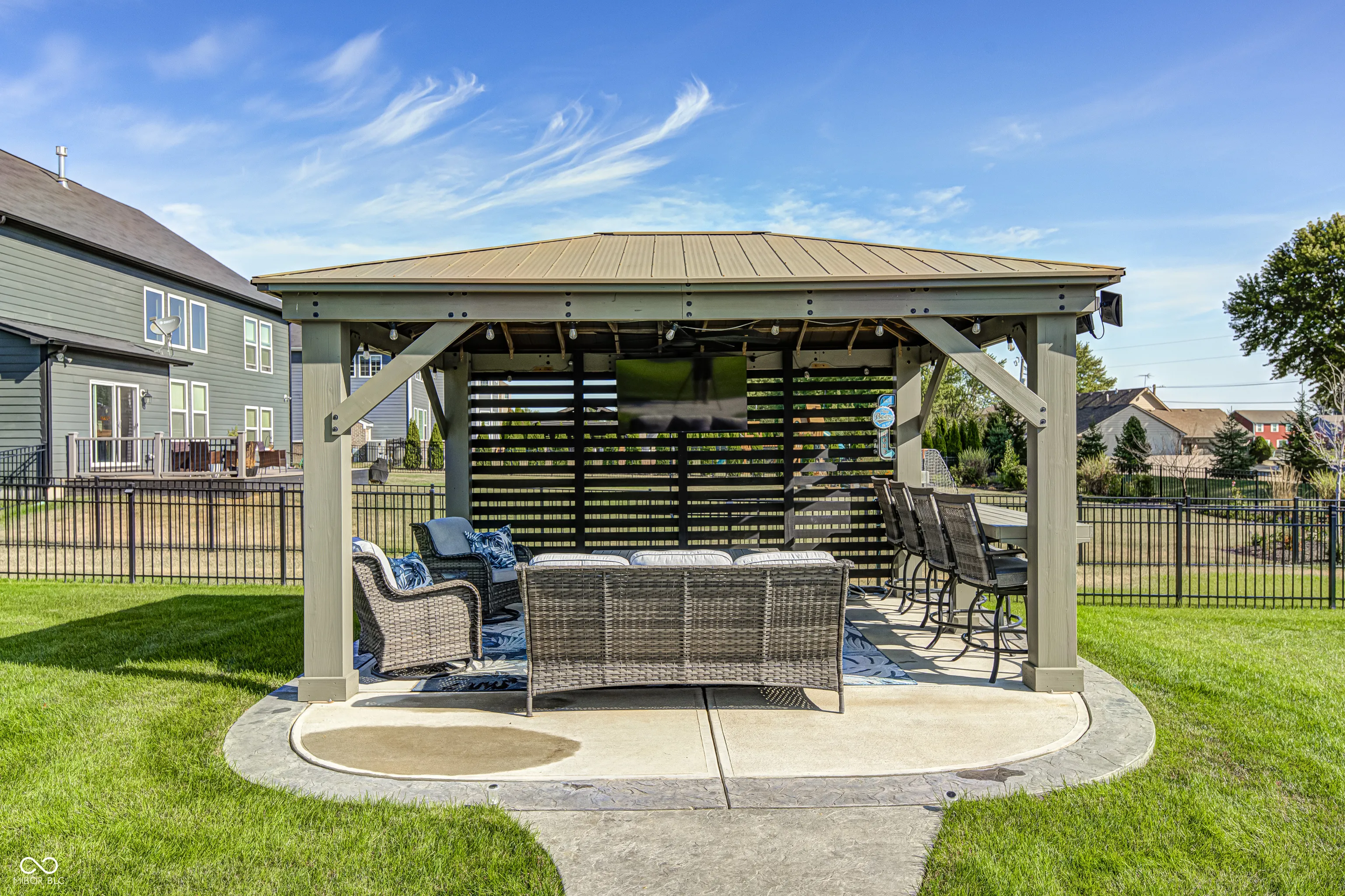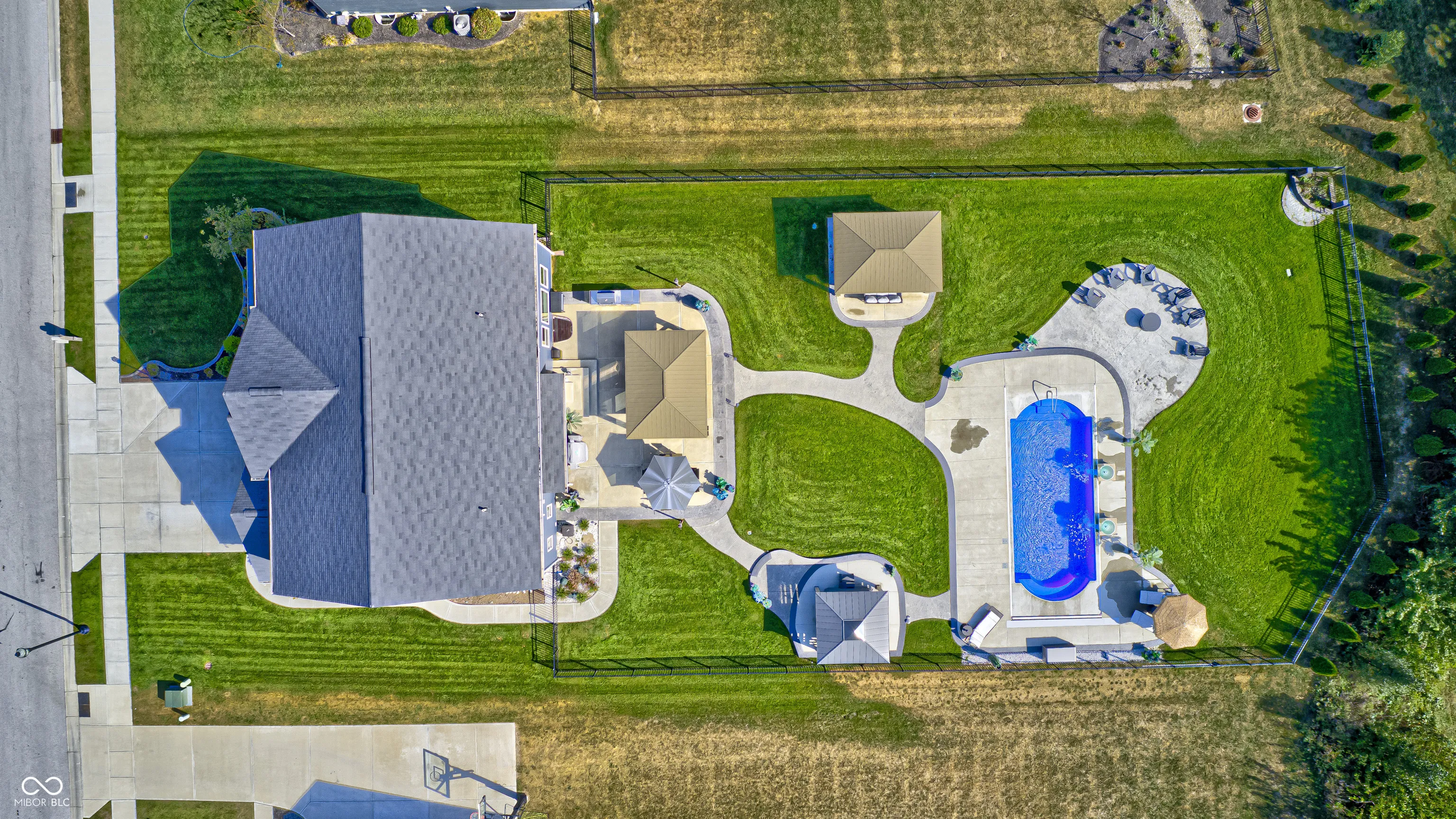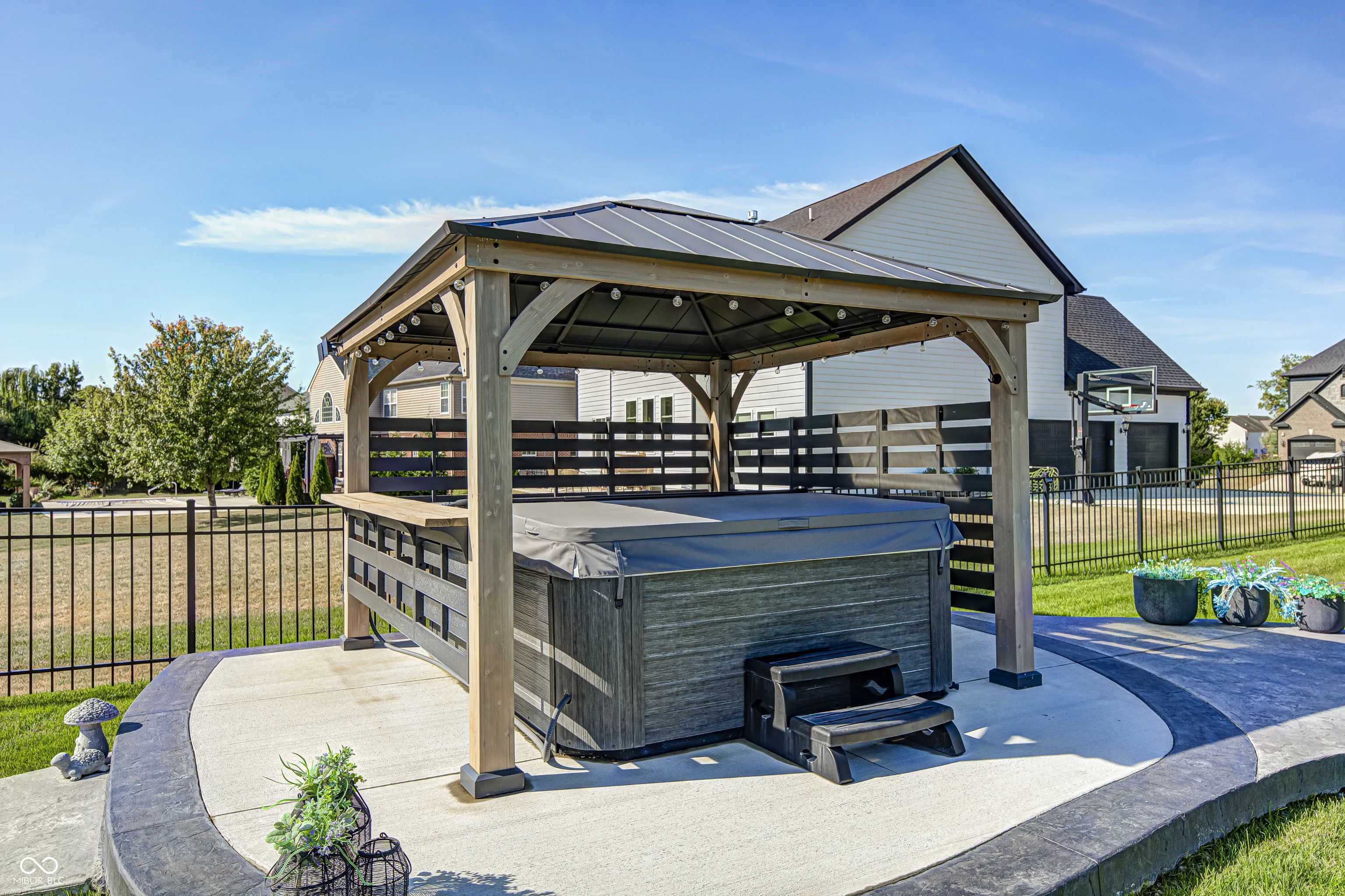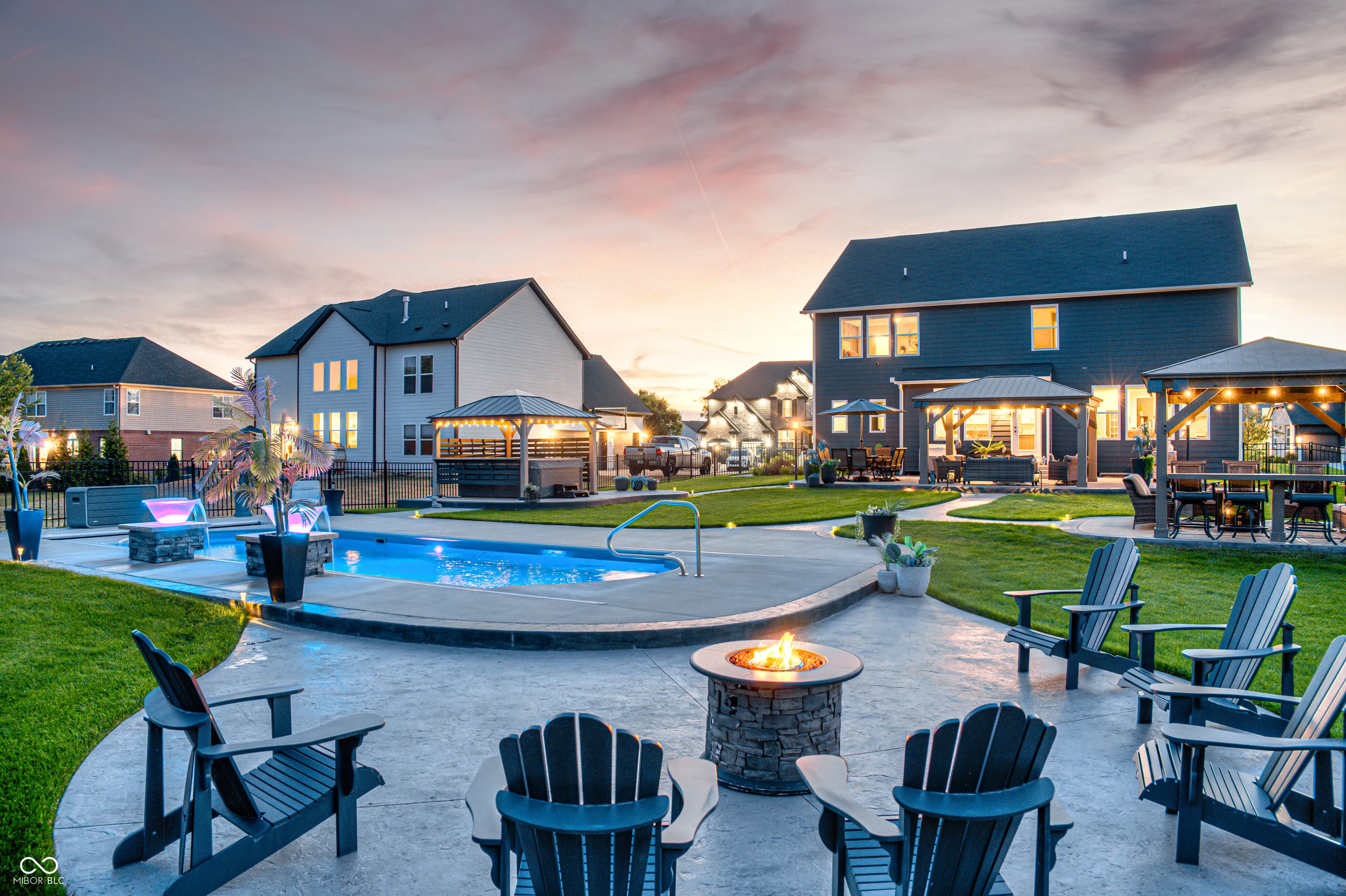 Picture this; 2245 Meadow Creek, Avon, IN – not just an address, but a launchpad to the lifestyle you’ve been dreaming of, nestled in a beautifully designed home, that’s grinning with good looks, modern upgrades all in perfect condition! The heart of the home is a spacious gourmet kitchen featuring stone countertops, white shaker cabinets, and long inviting wood-wrapped island. All premium stainless steel appliances. Seamless flow into the open dining and living areas is perfect for entertaining or everyday living. The primary suite offers a true spa-like bath showcasing dual sinks with a makeup vanity, a perfect size walk-in shower, and a generous walk-in closet. All bedrooms enjoy walk-in closts! This full basement is a perfect game day retreat, a custom wet bar, pool table and generous TV viewing area boasts endless possibilities for hosting or relaxation. A possible 5th bedroom is currently being used as a private poker room! A shower can be added to the roomy half bath. Step outside and it will take your breathe away! The spacious backyard is complete with three pergolas, including one with full electricity & mounted TV. The resort-style pool is equipped with both heating and cooling features!!! Turn the pool lights & fountain bowls on & off or select lighting colors all with wireless app control from your phone! Seller installed the automatic pool cover & premium pool equipment. Wireless control is also included with the irrigation system to keep your yard lush and green. Ideally located in a sought-after community, this home offers both privacy and convenience, with nearby shopping, dining, and top-rated schools just minutes away.