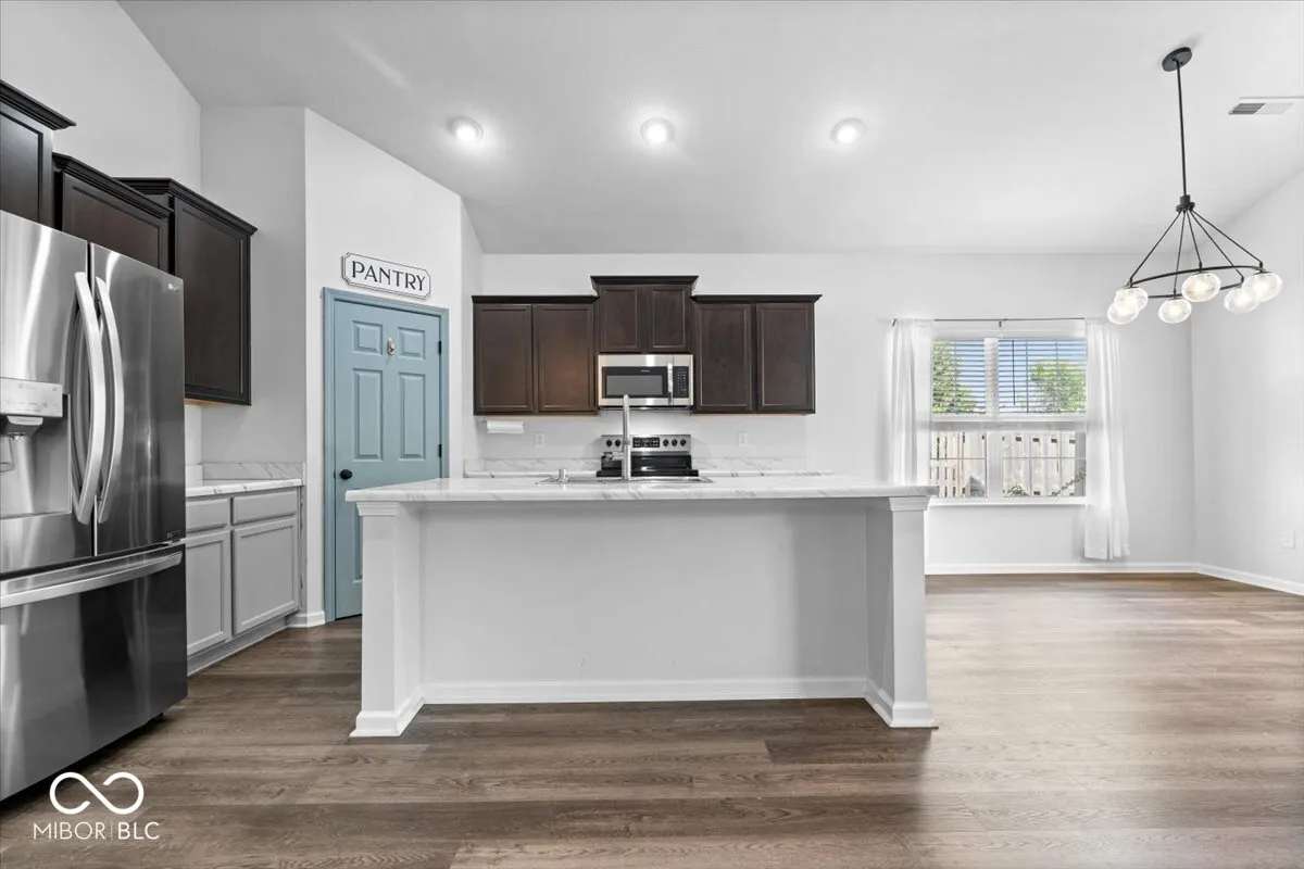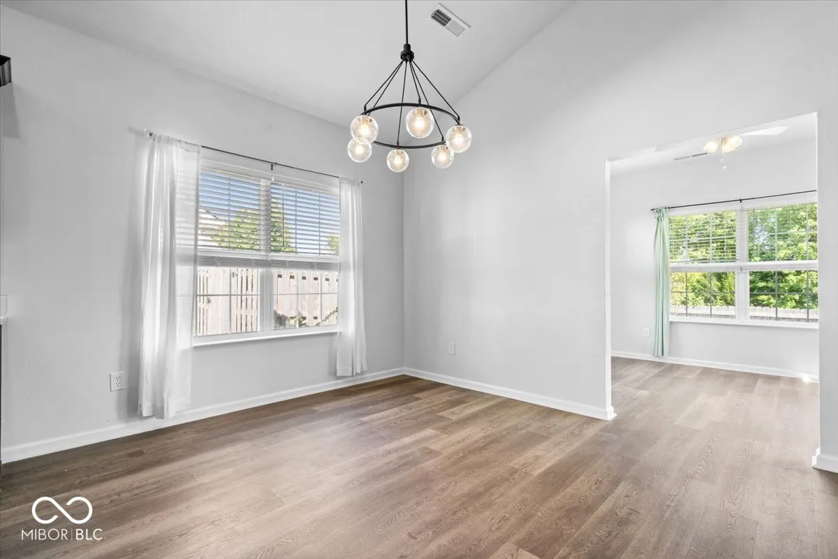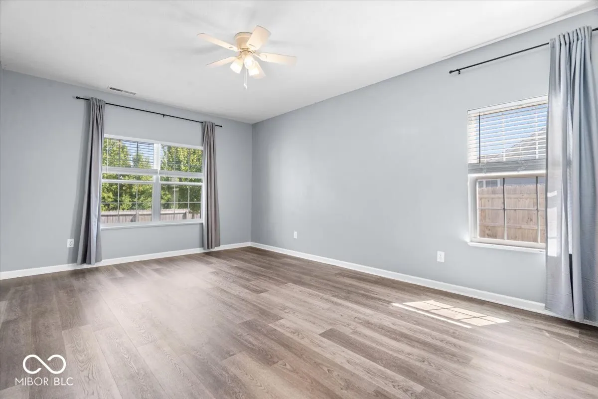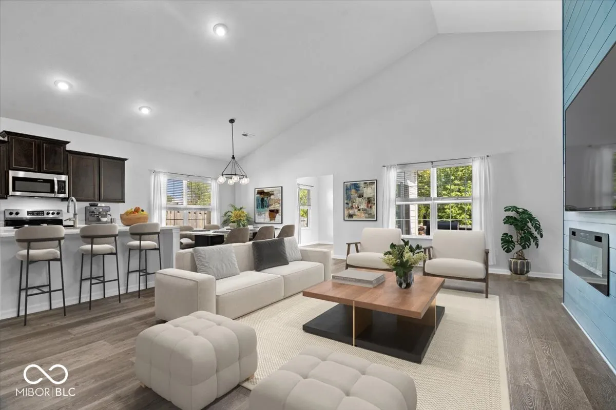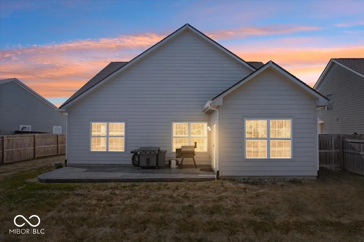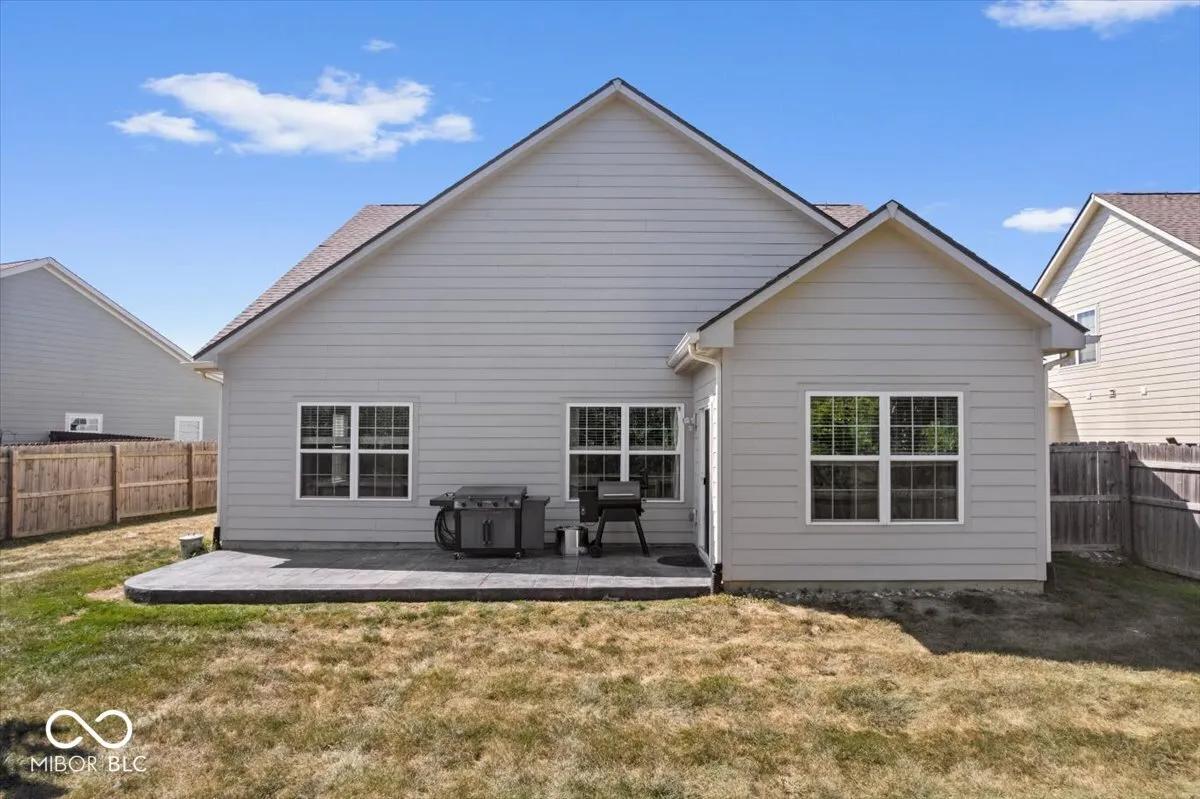 Life here feels easy in all the right ways. Built in 2020 and connected to Pebble Brook with access to the golf course, this Noblesville home sits within the well-loved Noblesville Schools and just a short drive to Westfield or Carmel. The main floor offers everything on one level, with an electric fireplace added in 2023 as the centerpiece of the living room and new vinyl plank flooring from 2024 bringing a fresh look throughout. The morning room off the kitchen serves as a flexible space that works beautifully as a dining area, playroom, or sunny sitting spot. Step outside to the stamped concrete patio completed in 2021 and a fenced backyard from 2020, creating a private setting to enjoy quiet mornings with coffee or evenings grilling out with family and friends. The primary suite features a custom closet added in 2024 and a bathroom with a water closet for extra privacy. The second bedroom was given its own built-in closet and accent wall in 2025. Even the hallway carries a touch of charm with board and batten detail from 2020, and the second full bathroom was refreshed in 2023 with a new vanity and wallpaper. Practical touches have were built too, including a garage bump-out for extra storage. Every detail has been chosen to make daily living a little more comfortable, a little more beautiful, and ready for someone new to call it home.