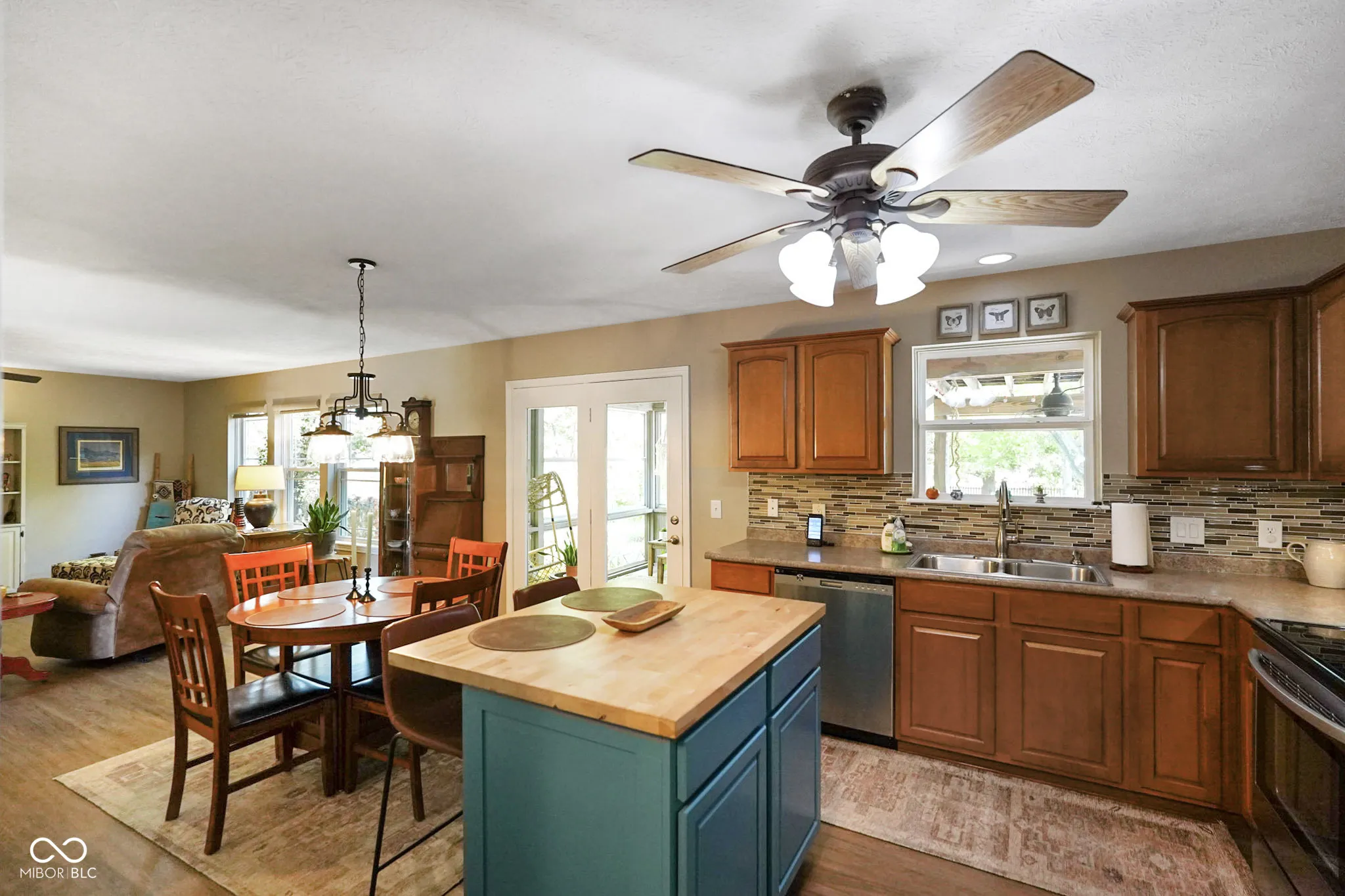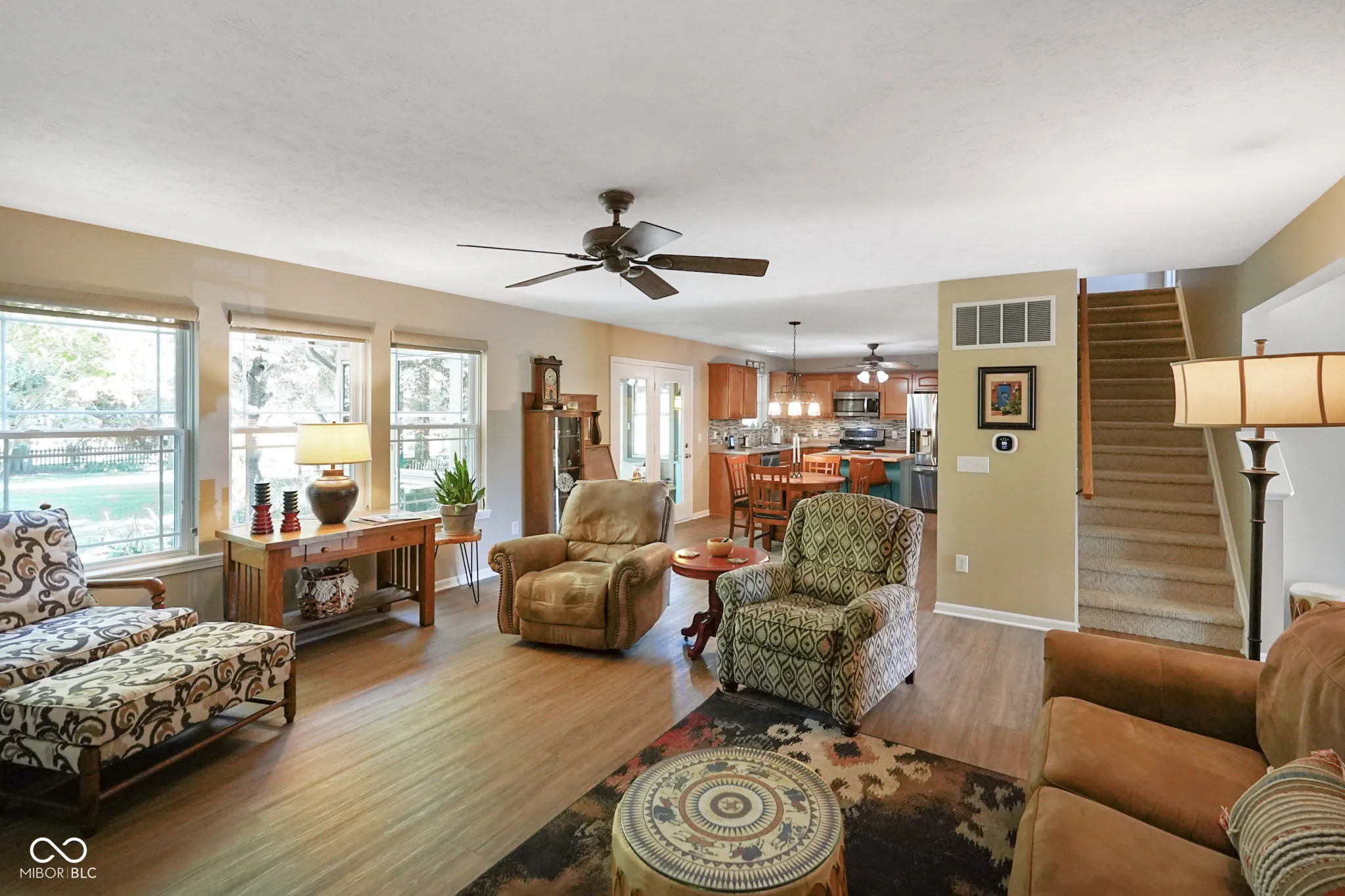 Prepare to be charmed! This home that blends comfort, style, and thoughtful updates. The open floor plan is ideal for everyday living and entertaining, featuring a spacious kitchen with back splash, large island, and bar seating, a den with custom built-ins, and a sun-filled three-season room leading to a covered deck, blue stone patio, and beautifully landscaped yard with privacy plantings, seasonal color, and mature trees. The primary suite offers a private retreat with an upgraded walk-in shower and built-in cabinets, while three additional bedrooms provide plenty of space for family or guests. The partially finished basement expands the living area with a large laundry room, built-in storage, and flexible space for recreation, fitness, or hobbies, plus there is a convenient main-level mudroom with an additional laundry hookup. Recent updates ensure peace of mind, including a new HVAC system in 2025, fresh interior and exterior paint in 2024, main-level LVP flooring in 2020, upgraded vinyl windows, an insulated and finished garage with built-in storage and upgraded door, as well as enhanced outdoor living with mature landscaping and hardscaping. With its inviting spaces, modern upgrades, and versatile layout, this home is move-in ready and designed to offer both charm and convenience for years to come.