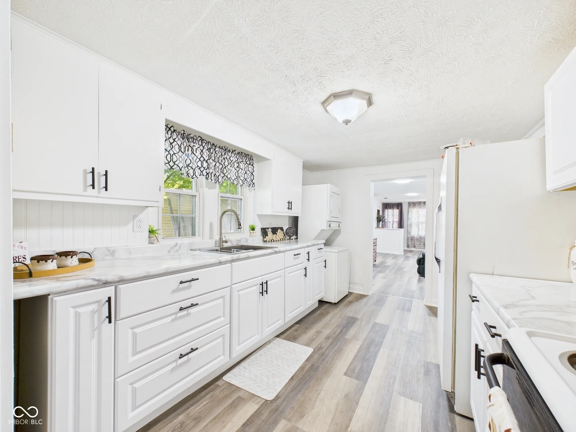 Welcome to this charming 2-bedroom, 1-bathroom ranch home offering 1015 sq. ft. of cozy living space. Situated close to restaurants and convenient shopping, this home has all new vinyl plank flooring throughout and is freshly painted inside! Enter through the spacious foyer featuring built-in shelves, providing a touch of character. The bright and airy Living Room is flooded with natural light, creating a warm and inviting atmosphere for relaxation and entertaining. Enjoy brand new cabinets and countertops in the galley Kitchen with a pantry and separate space for a stackable washer and dryer for added convenience! All appliances stay! Adjacent to the kitchen, you’ll find a formal Dining Room or a versatile space to suit your needs, whether it’s a home office, playroom, or additional living area. The layout is perfect for a variety of lifestyles, making this property a wonderful place to call home. Central air added and Roof 2 years old. 1 car detached Garage! Immediate possession! Don’t miss it!