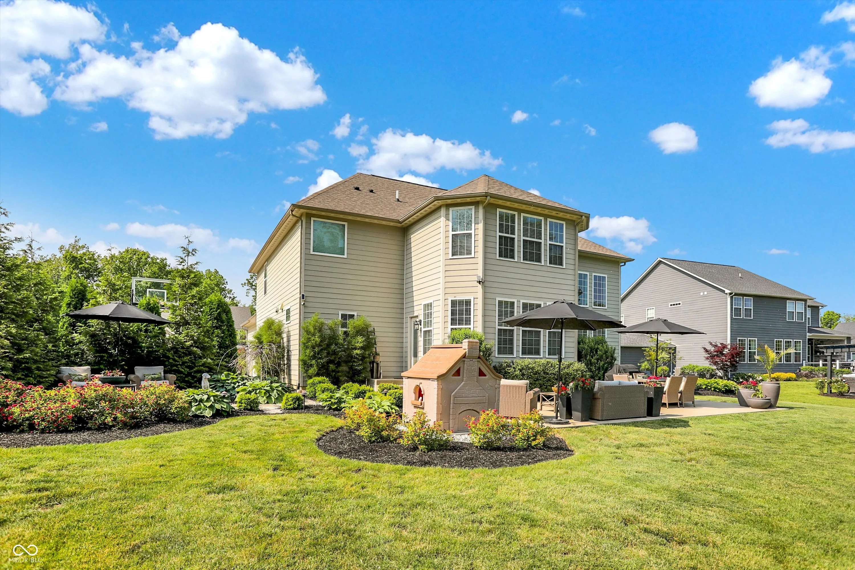 Location, location, location. Welcome to 1033 Windsor Estates Court, Westfield. Located just north of Grand Park and less than a mile to US-31, this home is nestled on nearly 1/2 acre on a quaint cut-de-sac lot. From the moment you pull up, you’ll notice the full brick/stone front and professionally designed and meticulously maintained landscaping. Once inside, you will be impressed with the amount of living space this home has to offer. The main floor highlights include a soaring two-story living room with trim ceiling and windows galore looking out to the large, private mature tree-lined backyard. The neutral and up to date kitchen includes built in double ovens, a wine/coffee bar area and ample countertop space, making it an entertainers dream! Off the kitchen is an additional morning room space that could be used in so many different ways. Upstairs you’ll find a primary bedroom which includes its own private living room and updated primary bathroom. Three additional generously sized bedrooms, a full bathroom and a 2nd floor laundry room. The unfinished basement offers an additional 1,600 square feet of space just waiting for a new owner to finish how they want it. Proximity to all the wonderful things Westfield has to offer – Grand Junction plaza, Park Street, Grand Park, schools and so much more. Chatham Hills is a neighborhood away and offers a social membership for those looking for all the amenities country club living has to offer! Don’t miss out on this one – so many opportunities to put your personal touches on this beautiful property!