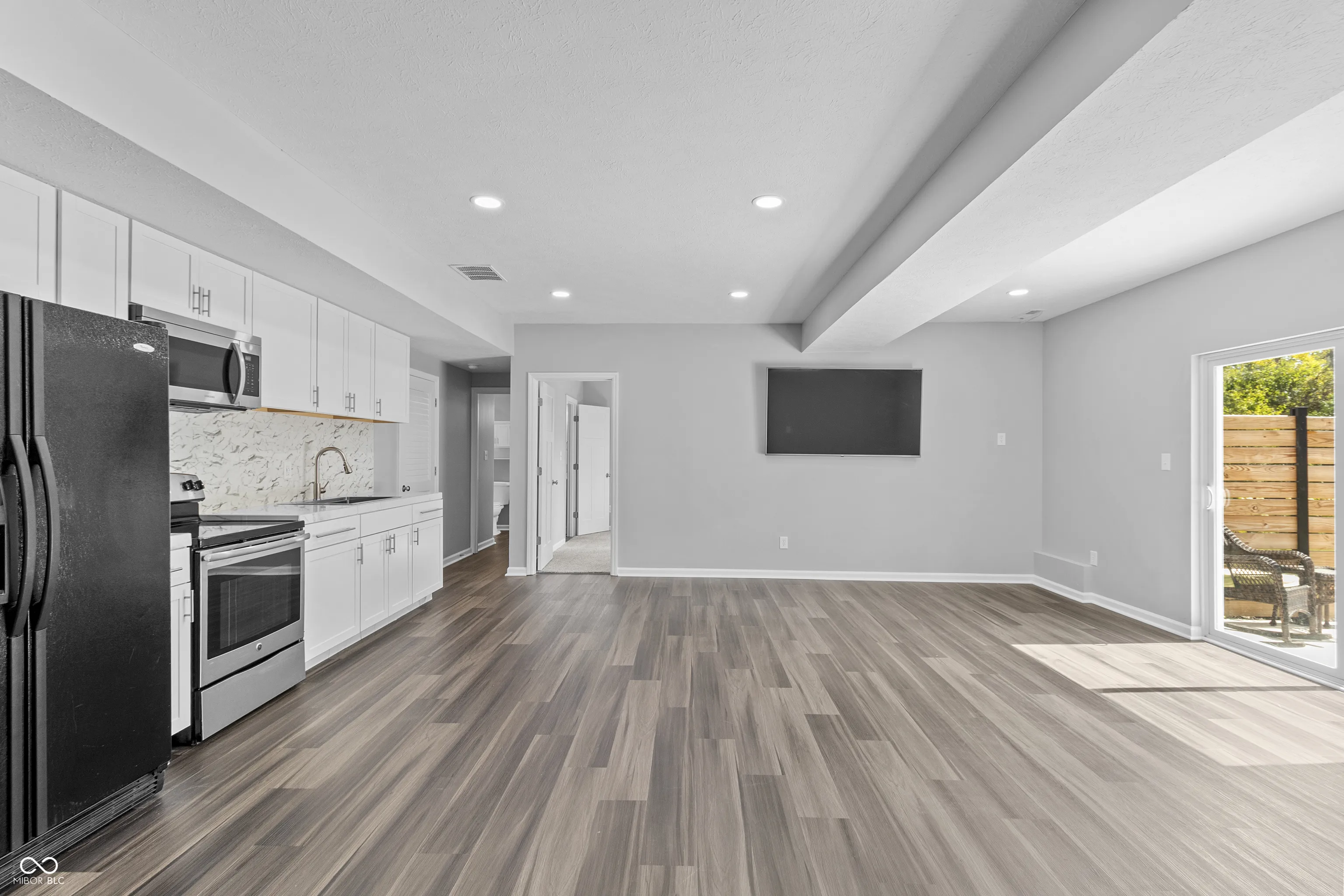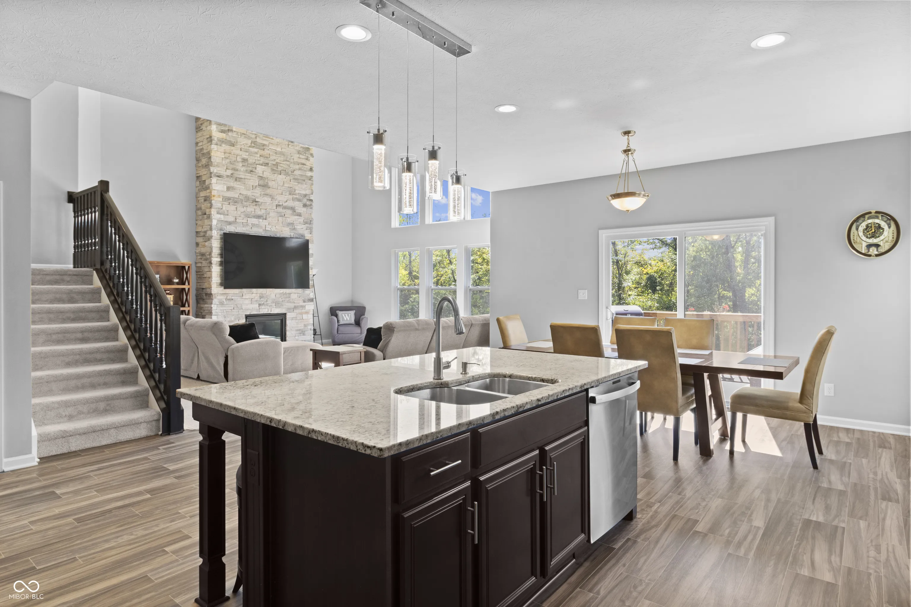 Welcome to this stunning 6-bedroom, 4.5-bath home in award winning Franklin Township Community School Corporation offering over 5,200 sq. ft. of thoughtfully designed living space. Built by M/I Homes (Ainsley II model), this property sits on nearly a full acre with mature trees providing privacy and a natural backdrop. The main level features a 4′ expanded gathering room with a soaring two-story stone fireplace, private office with French doors, and a full in-law suite with private bath. The gourmet kitchen is outfitted with top-of-the-line stainless appliances, upgraded lighting, and a seamless flow for entertaining. Upstairs, you’ll find 4 spacious bedrooms-all with walk-in closets-including a luxurious primary suite with quartz double vanity, custom shelving, and spa-like finishes. A convenient upper-level laundry includes added cabinetry and shelving. The finished walk-out basement adds incredible flexibility with a full kitchen, open living space with LVP flooring, 1 bedroom, 1 full bath, laundry/utility room, and additional unfinished flex space ready for your vision. Additional 100 amp sub-panel. Enjoy outdoor living with an expanded deck, concrete patio, under-deck storage, widened driveway, and professionally landscaped yard. Half the lot is wooded, creating the perfect balance of space and serenity. Additional highlights include a 3-car finished garage, separate thermostat with dual zone HVAC unit, whole-home water filtration, upgraded continuous hot water heater, two sump pumps with additional battery-powered backup sump pump, exterior stone surround, upgraded motion lights around exterior and a 15-year transferable structural warranty. This property truly combines space, style, and function-perfect for multi-generational living or those seeking room to grow.
