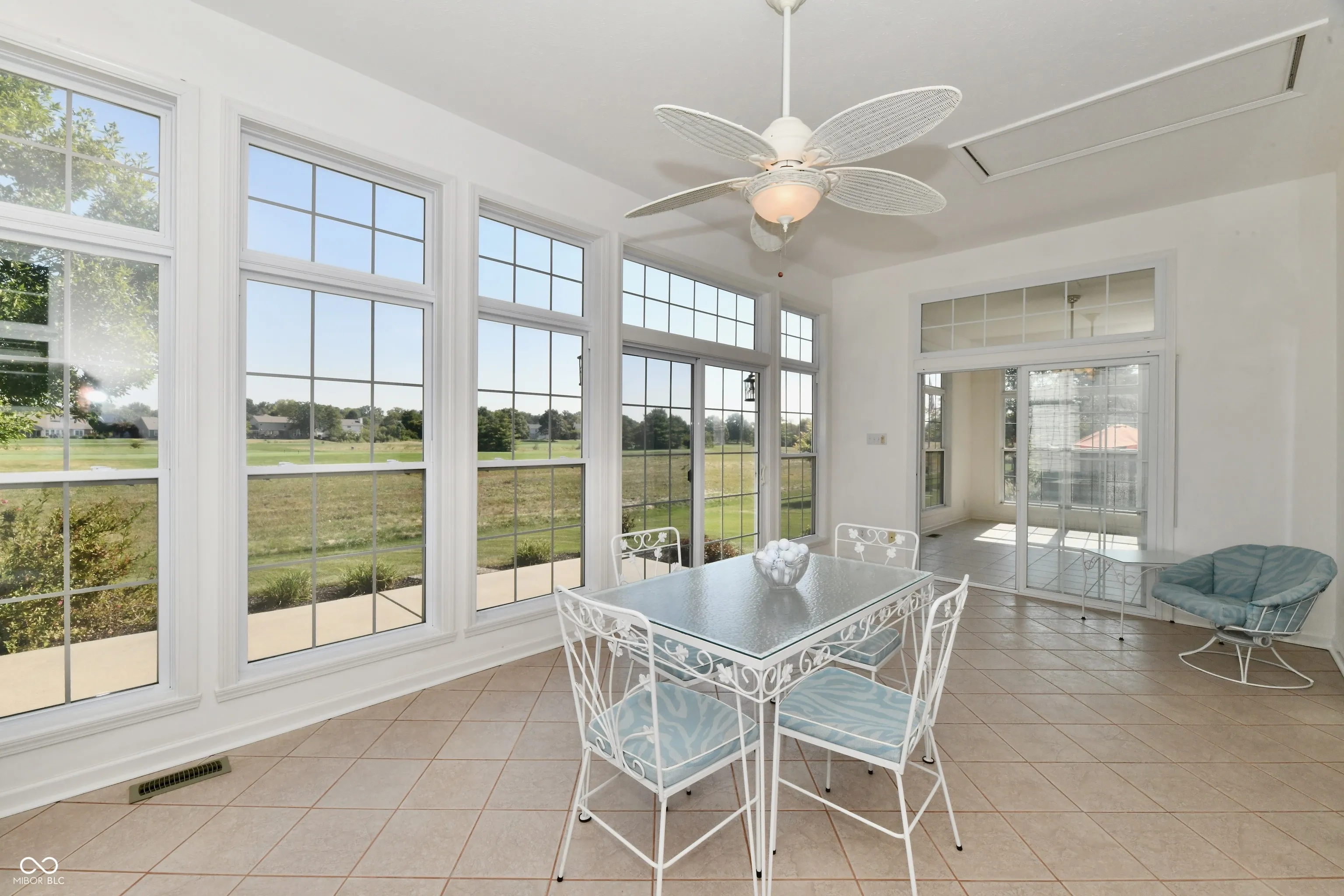 This lovely home enjoys a panoramic view of the Plum Creek Golf Course, sitting on the number 2 green. You can enjoy the view from either of your sunrooms, the living area, the breakfast room, or the master bedroom.The home is bright and open with 10-foot ceilings. The gas fireplace offers a cozy warm place to enjoy the winter views. The oversized garage is heated and fully insulated with storage and built-in cabinetry, as well as a utility sink. The roof was new in August, 2024, and the high efficiency HVAC is only 4-years old. All windows in the home have protective film which reduces UV by 50% and helps protect against breakage from errant golf balls. Additional insulation provides an R-50 in the ceiling, and R-19 in the garage walls. A wider 18 foot driveway and an 18 foot garage door maximize accessibility to the expanded garage. The large exterior patio overlooking the golf course is ready to host your next weekend of grilling, games, and golf. Fresh mulch and landscaping complete the home’s lovely setting.