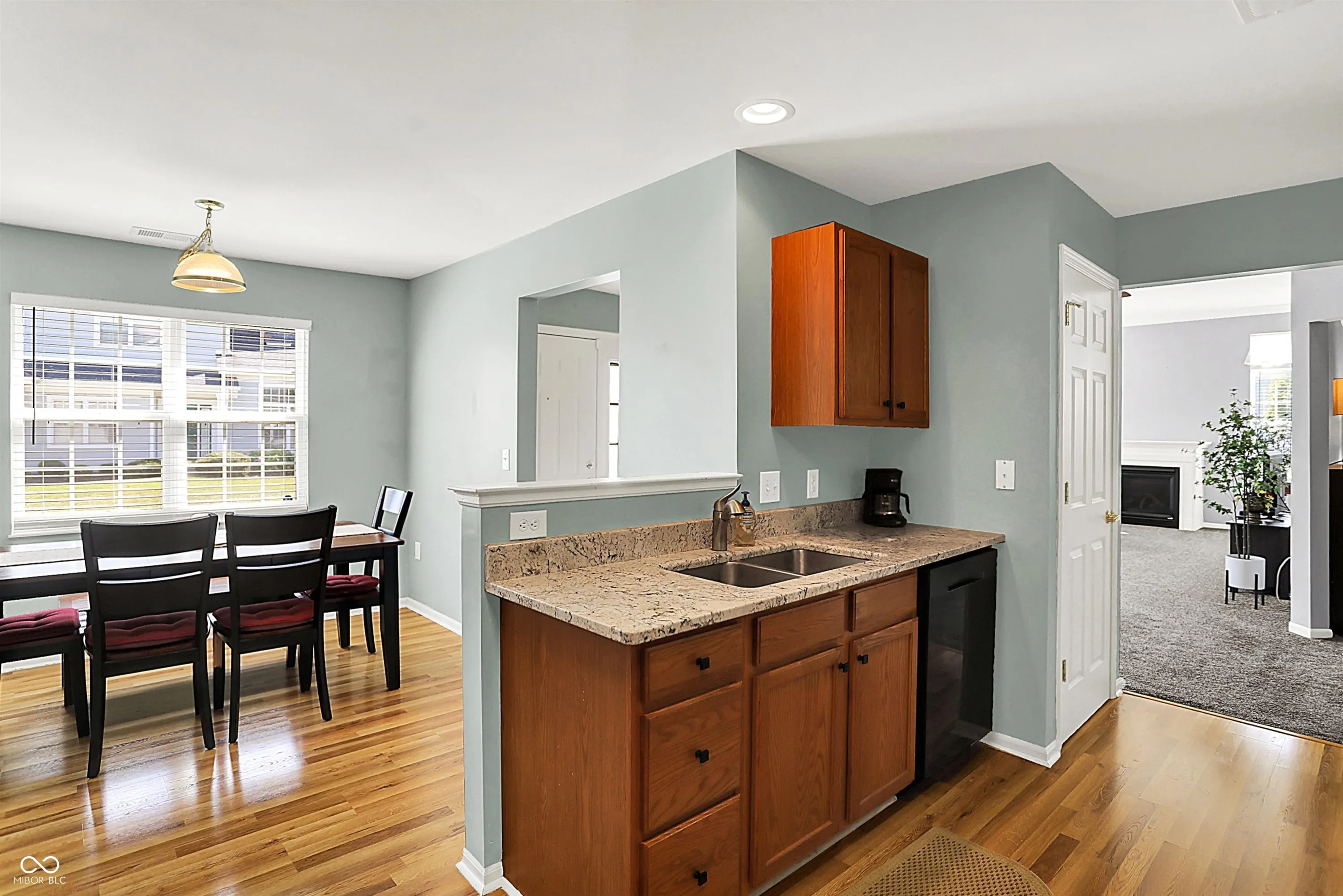 Charming One-Level Home with Gorgeous Features and Serene Views! Welcome to this light, bright, and fresh one-level home offering nearly 1,800 sq. ft. of inviting living space. This beautiful property has raised ceilings and lots of natural light pouring in through south and west-facing windows. With its spacious, open layout, you’ll enjoy the perfect blend of comfort and style. The welcoming entry leads to the spacious kitchen with a cozy breakfast nook, ample cabinetry, and granite countertops. You’ll love the beautiful laminate flooring, pantry, and range/oven with a microwave hood for cozy dinners at home or cooking for a crowd. The heart of the home is the large great room featuring a cozy gas-log fireplace, ideal relaxing evenings at home and also for entertaining. The separate den/study/office provides flexible space, while the two generously sized bedrooms both comfort and privacy. The primary suite is a true retreat with a massive walk-in closet, private commode, walk-in shower, and a convenient make-up/ready area plus a separate vanity. The second full bath offers a tub/shower combo. A separate laundry room with a washer and dryer for convenience. Step outside into the 3-season room, where you can unwind and enjoy peaceful views of the private yard and pond. The 2-car garage provides plenty of storage space, making this home as functional as it is beautiful. Enjoy a low-maintenance lifestyle with a reasonable monthly fee that includes access to the clubhouse, neighborhood pool, tennis courts, and more. Located in a quiet, open, and airy neighborhood, this home is just minutes from major roads, shopping, entertainment, and everything you need. Welcome home!