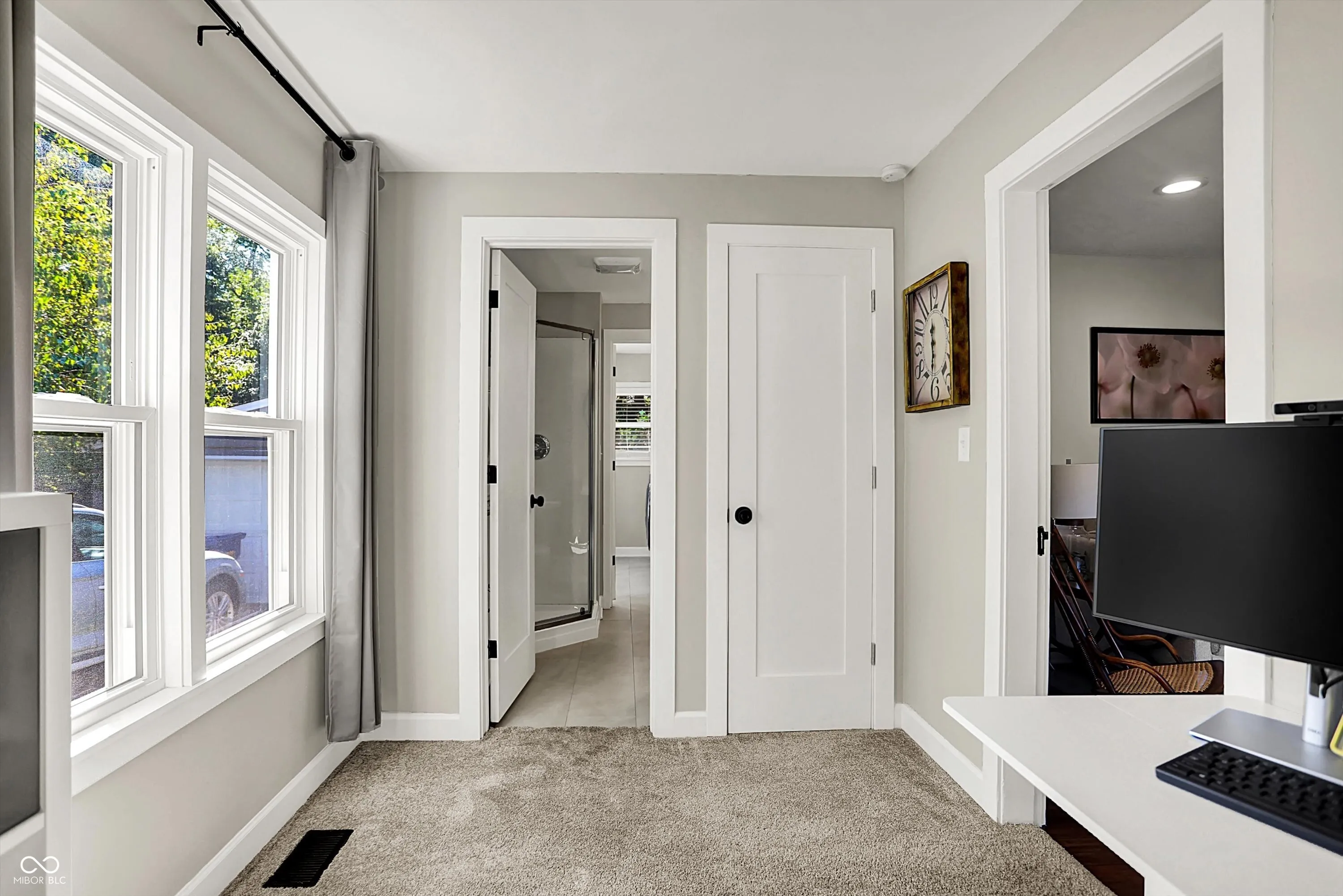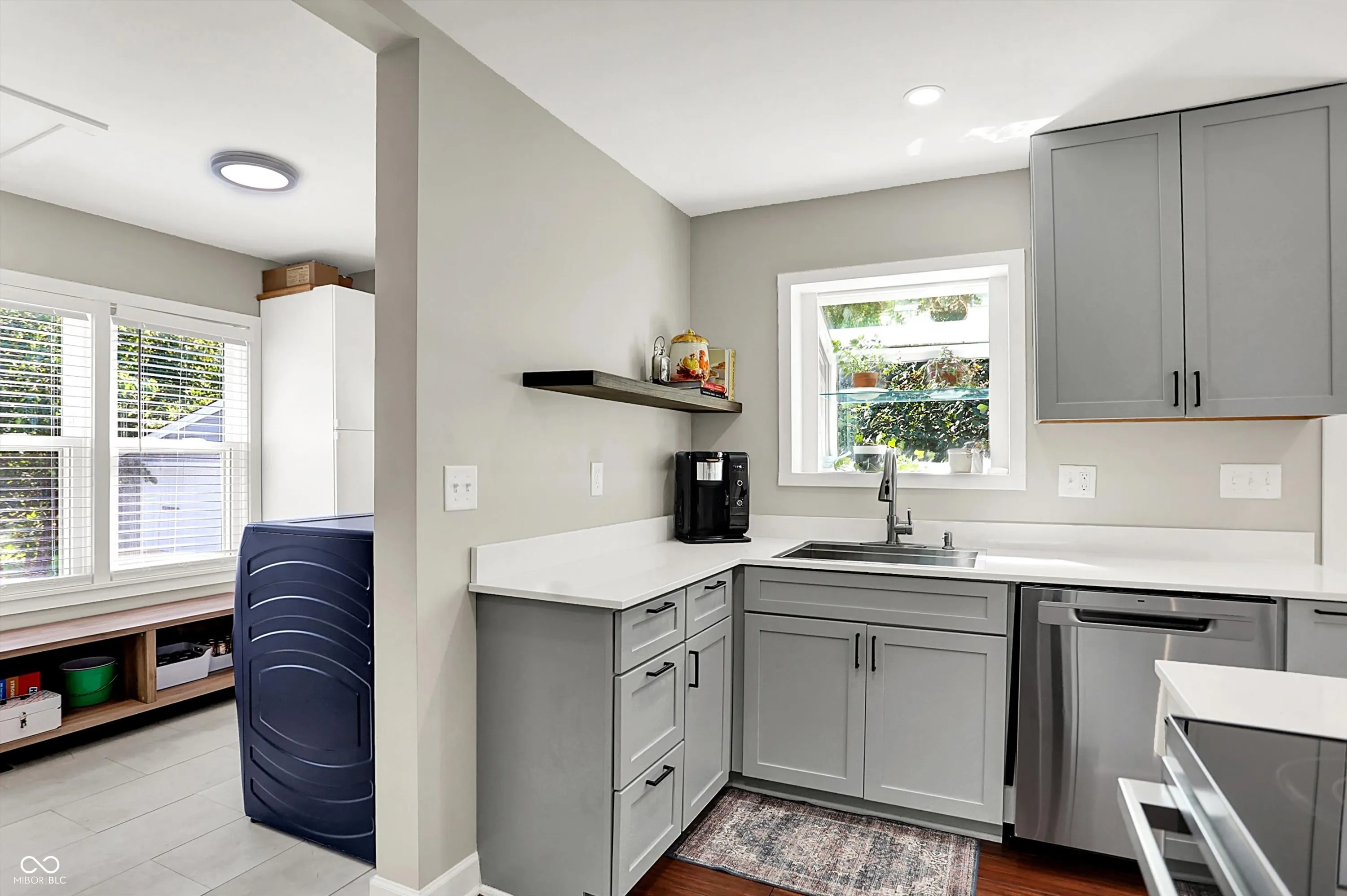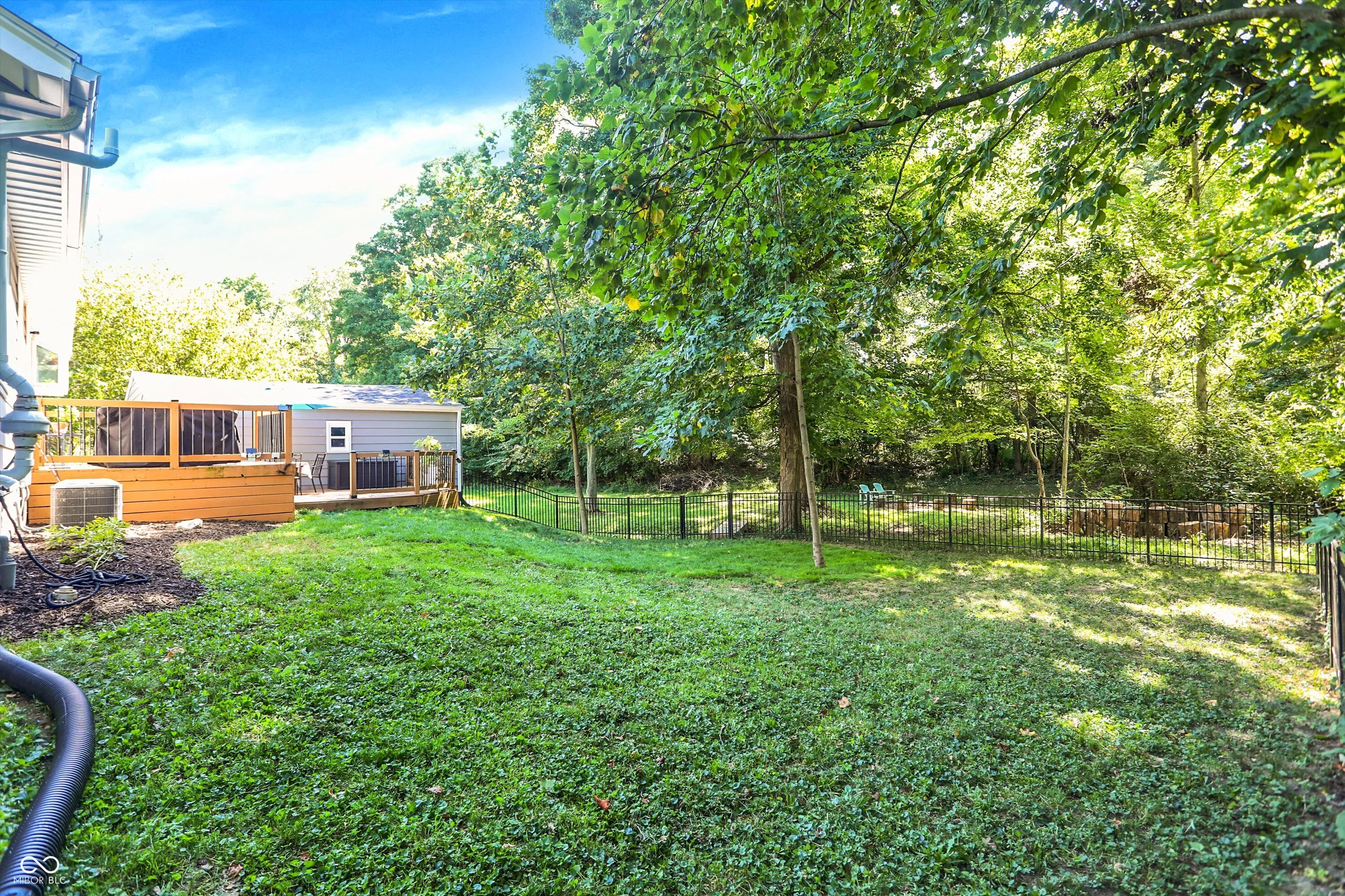 This charming 4-bedroom ranch with finished basement sits on nearly an acre wooded lot. Nestled in historic, charming Oaklandon, the home is just 2 miles from Fort Ben State Park and minutes from Geist. Step outside to your own peaceful retreat: a spacious deck overlooking a gently sloped, private backyard with a firepit surrounded by mature trees. Updates include: (new in 2024) windows , new bamboo flooring/baseboards, new carpet, freshly painted ceiling and trim, water softener and water heater, front-load washer/dryer, aluminum fence. New roof in 2023. All new bright kitchen with quartz countertops, tall cabinetry, new stainless-steel appliances, deep sink & greenhouse window. The mudroom/pantry with new front-load washer & dryer, pantry storage, and sunlit windows with new blinds. Beautiful and unique features like arched walls, dining room brick wall, built-in glass-front cabinet and living room bay window. Beautifully updated full bath with recessed niche, new double vanity, tiled floors & modern fixtures. The finished basement offers versatility too with a 4th bedroom, recreation room, craft room area, and storage areas. Note – no HOA or CCR.