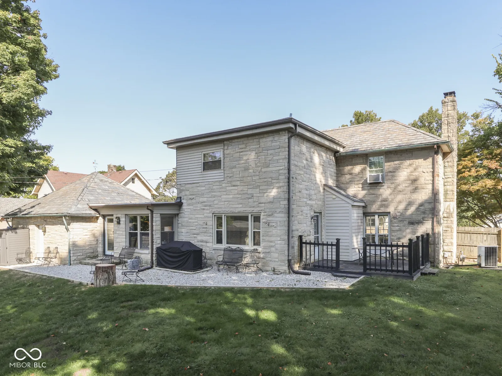 Beautiful Limestone Home on Over Half an Acre! This charming 4-bedroom limestone home offers timeless appeal and plenty of space, set on a generous half-acre lot. The inviting floor plan includes a formal living room with a cozy fireplace that opens to a back deck-perfect for entertaining or relaxing outdoors. A spacious family room, updated kitchen, and formal dining room provide multiple gathering areas for everyday living and special occasions. The main level features one bedroom and a full bath, while upstairs you’ll find three large bedrooms, including a private primary suite complete with a shower stall and relaxing garden tub. An unfinished basement with an additional bathroom offers great space or storage. Outside, enjoy a fenced yard with two storage sheds, mature trees, and plenty of room to play or garden. A 2-car attached garage completes this wonderful property, combining comfort, function, and charm.