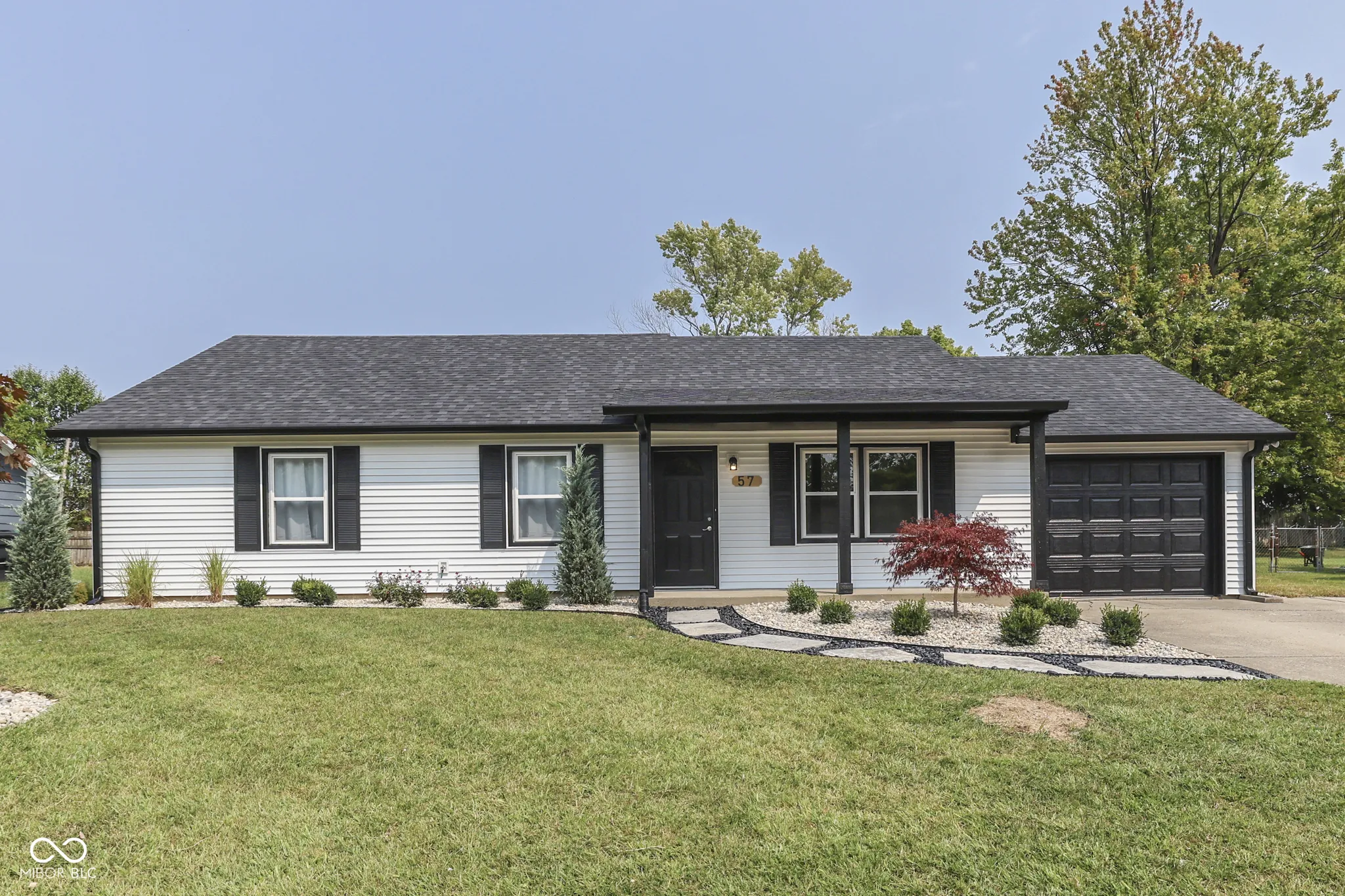 4 BEDROOM + 2 FULL BATH *Totally Renovated* Ranch ~ 1436 Sq. Ft. ~ Features: NEW Trim + NEW Paint + NEW Flooring Throughout; Remodeled Large Eat-In Kitchen; Breakfast Nook w/French Doors leading to Backyard; Huge Primary Bedroom w/ His & Her Closets & Bath w/Full Shower; 3 Additional Bedrooms; 2nd Full Bath w/Tub; Laundry Room; New Front Door; Partial Garage/Workshop used for Storage + Attic Access; Tree-Lined Backyard w/Nice-Size Concrete Patio + Full Rear Fence + Big Storage Barn (16×12) + Privacy w/No Neighbors Behind! Covered Front Porch to Enjoy + Paver Walkway & Oversized Driveway; Cul-De-Sac Lot on Quiet Street ~ Close to Shops + Restaurants + Schools + Highway & More – Great Location!