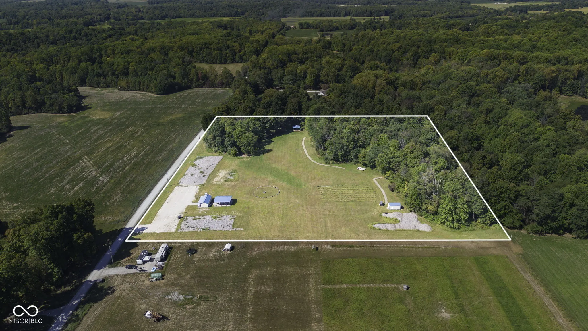 Peaceful 10-Acre Retreat – Ready for Your Dream Home. Nestled in Western Owen County, this 10-acre parcel offers the perfect mix of open fields and mature woods, setting the stage for your future home, private getaway, or hobby farm. Extensive improvements have already been made: a wide gravel driveway for easy access, a fresh well, and on-site electricity with RV and GFI outlets. The 20′ x 32′ building-wired with its own breaker box and fiber internet-adds flexibility, while two large pavilions and a storage shed provide space for gatherings and equipment. Nature lovers will appreciate the cleared walking trails and handcrafted bridge meandering through the woods. With wildlife, scenic views, and peaceful surroundings, this property is more than land-it’s a lifestyle waiting to be enjoyed.