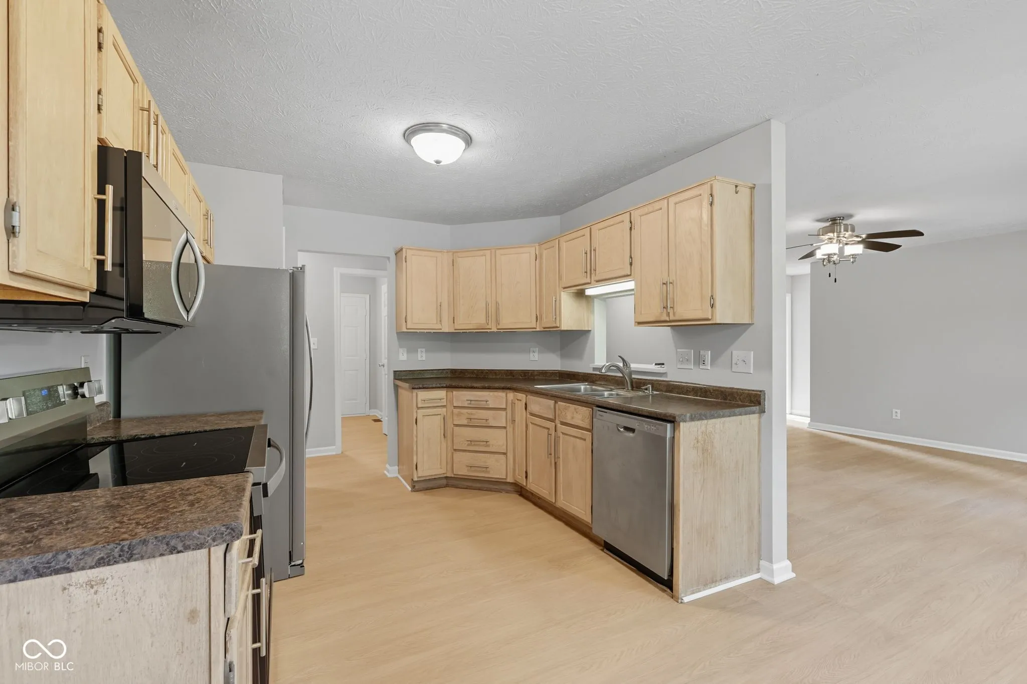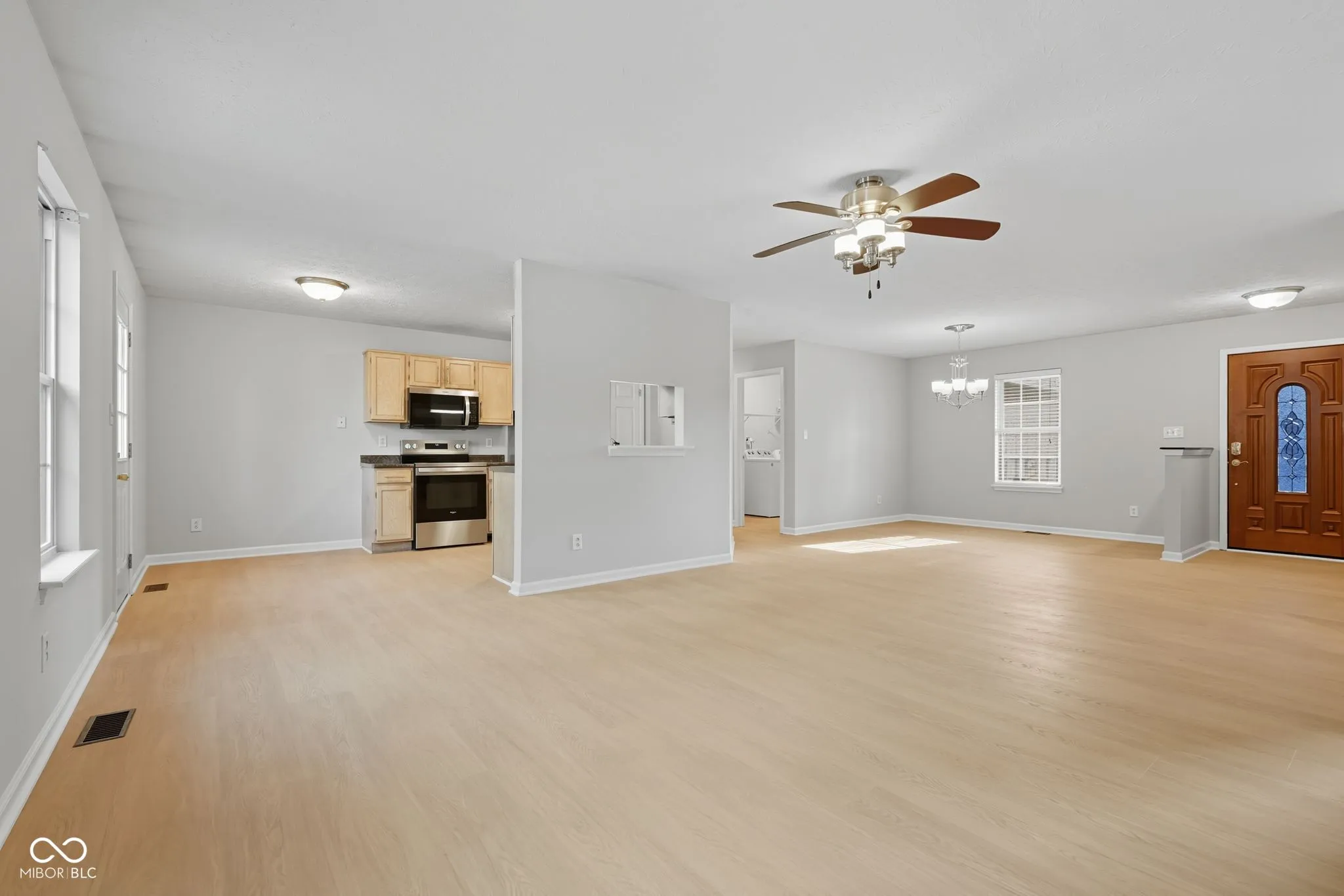 This charming single-level ranch offers approximately 1,470 sq. ft. of comfortable living space. Inside, you’ll find fresh interior paint, brand-new laminate wood flooring, and a modern kitchen with stainless steel appliances. The open layout connects the living room, dining area, and eat-in kitchen, creating a natural flow for daily living and entertaining. The private primary suite features a walk-in closet and full bath, while two additional bedrooms share a well-appointed hall bath. A dedicated laundry room, attached two-car garage, and crawl space foundation add convenience and functionality. Nestled in a low-traffic neighborhood within Greenwood Community Schools, this home is minutes from US-31, I-65, local parks, and shopping. Truly move-in ready and easy to show-schedule your tour today!