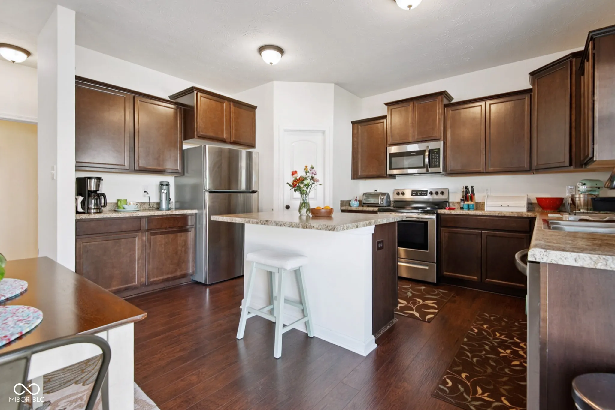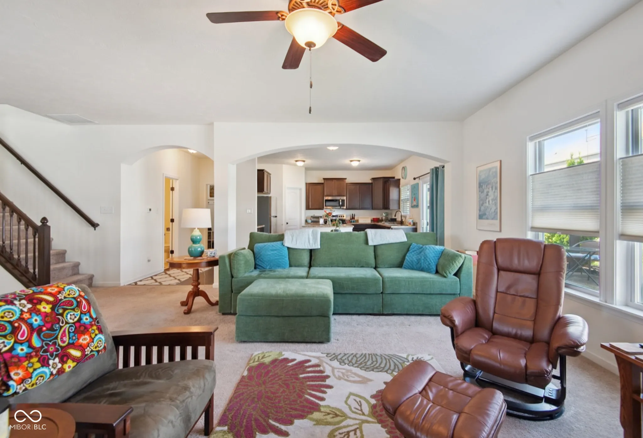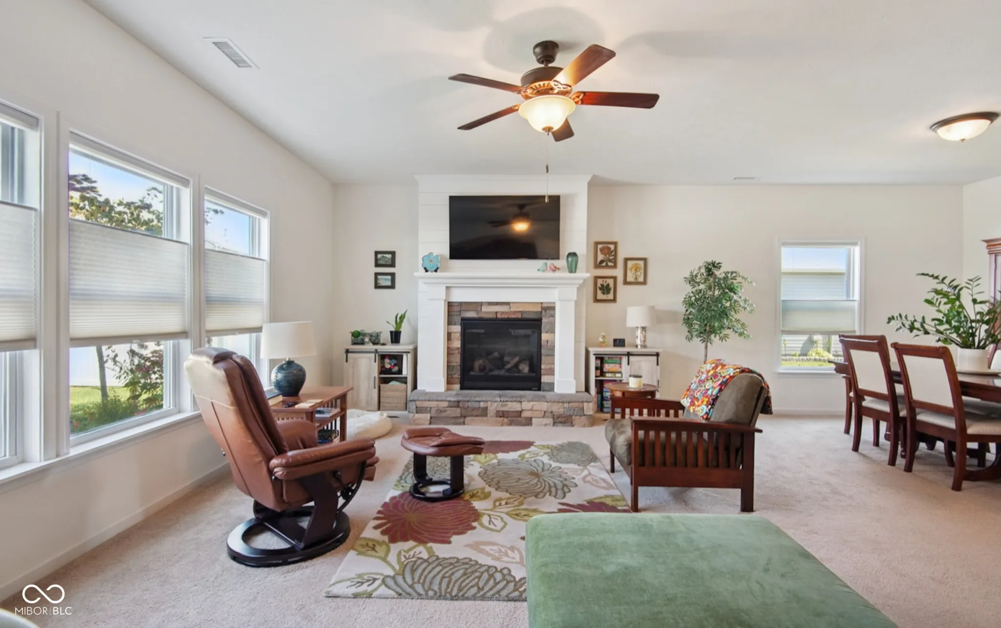 Sunny and spacious, you’ll know right away that this is the one. Big windows, tall ceilings, wide open rooms: with over 3000 sqft total, this home has room for everyone: 4 bedrooms, 2.5 bathrooms, and 2 large living spaces: a 20×12 main-floor family room and a 15×17 loft/rec room upstairs. The huge primary suite has a garden tub, separate shower, double sinks, and a walk-in closet. Enjoy the convenience of the laundry room upstairs and a mudroom located off of the attached garage. The main-floor guest room or office adds extra space and convenience. The 14×18 kitchen includes tall cabinets, ss appliances, a big panty, and a center island with barstool seating. This 7-year-old home has been meticulously well-maintained and still feels brand new but has many features new homes don’t include like the gas log fireplace with a custom stone and shiplap surround. Outside, the tastefully-designed, mature landscaping adds character and beauty to the home. In back, the large, 18×13 concrete patio and the pergola are surrounded by flower beds that make the private, partially-fenced yard feel like a garden getaway. In front, the covered porch faces the wide streets of Woodland Parks, a quiet neighborhood just north of Columbus with convenient access to 31 N and I65. Come see what makes this one-owner, move-in ready home truly special.