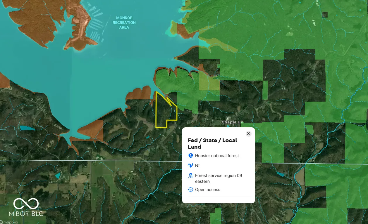 Very rare opportunity to own your own lakefront property/acreage on Lake Monroe and turn it into your dream residence or getaway place. This fantastic 46.44 A+/- property sits on the south end of lake Monroe just across the water from the Fourwinds Marina and the Fairfax State Rec Area. This property has some amazing views with plenty of lake frontage and sits peacefully on a secluded cove off the main lake body. This property not only provides for a great place to build your dream lakefront home/getaway cabin, but it also provides great opportunities for hunting, hiking, 4-wheeler/Atv adventures, fishing, camping and more. The property has road frontage on 2 sides from Prince Rd and Stewart Rd which are both paved county roads. Stewart road dead ends into the lake for an easy access point to launch a Jon boat, kayaks or other small watercraft. The land itself is a good mixture of mature hardwoods with varying terrain and provides good opportunities for deer, turkey, small game and morel mushroom hunting. The majority of the property is in the tax beneficial classified forest program. A big bonus, Hoosier National Forest and The Hardin Ridge Recreational area are your neighbors and provide additional acreage for enjoyment. There are several great building sites on the property, some which extend out on the property’s ridge to take advantage of the beautiful lake views. Water, electric and internet are on both county roads. Whether you are looking for your dream lakefront residence, a place to getaway and enjoy the lake life, good hunting/recreational opportunities or simply a good land investment, look no further. The pictures of the house is a potential style home that could be built on the property.” Opportunities like this rarely come around, don’t let your dream lakefront acreage slip away.