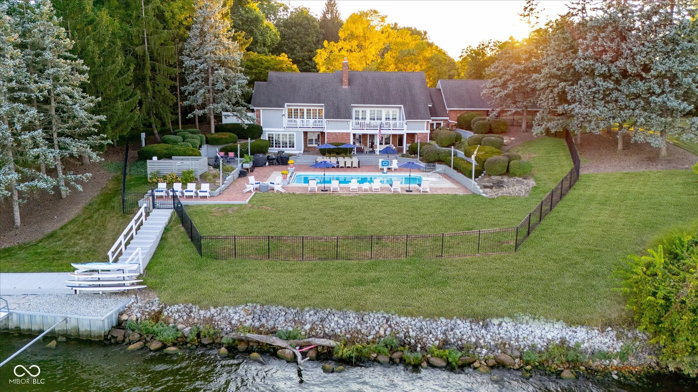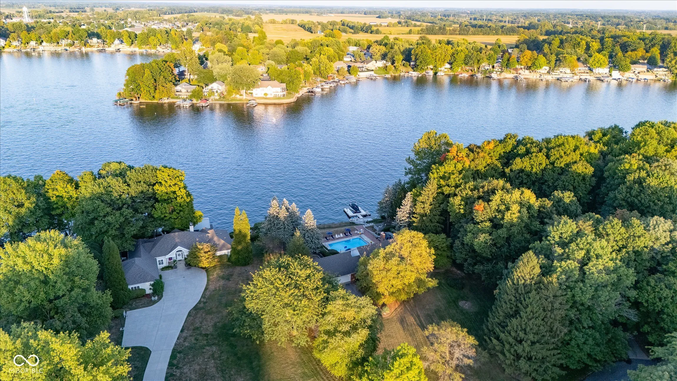 Big yard, big views, big fun – this one-acre Morse Lake home with 177 feet of frontage is where lake life comes to life. Tucked in the Forest Bay neighborhood, this property gives you the space, views, and freedom that are almost impossible to find on the lake. With so much to enjoy outside, the backyard is the heart of this home. A lakeside saltwater pool sits just steps from the water, surrounded by multiple decks, a covered porch, and a fully fenced yard with room for gatherings big or small. A brand-new dock and seawall with 6,600 lb boat lift plus kayak and paddleboard rack make it easy to slip out for a morning paddle, tie up friends’ boats, or head out for an evening cruise. From fireworks to fall bonfires, it’s all right here in your backyard. Inside, the great room is designed around the view. Vaulted wood-plank ceilings, a tall fireplace with Jotul high-efficiency wood stove insert, and French doors opening to the deck create a warm but dramatic setting. The layout flows easily with an updated kitchen (new appliances), a bar with wine fridge, and plenty of room to host. The main floor also offers two bedrooms and two full baths, including a lakeside primary suite with updated bathroom and large closet. The second bath has been completely redone with custom tile. Head downstairs and the walk-out basement adds even more living space – a big family/rec room with fireplace, two more bedrooms, full bath, and laundry. Walk right out to the pool, where all the mechanicals and plumbing were updated just five years ago, including a variable-speed programmable pump. A full acre, 177 feet of frontage, and a setup built for enjoying lake life every single day – this is a place where weekends stretch longer, gatherings feel bigger, and the water is always just steps away.